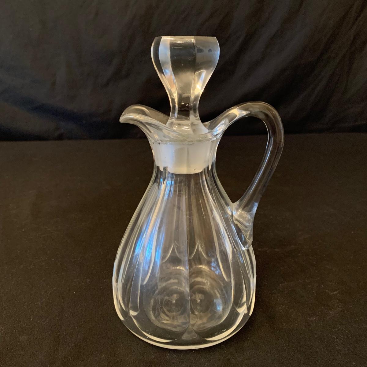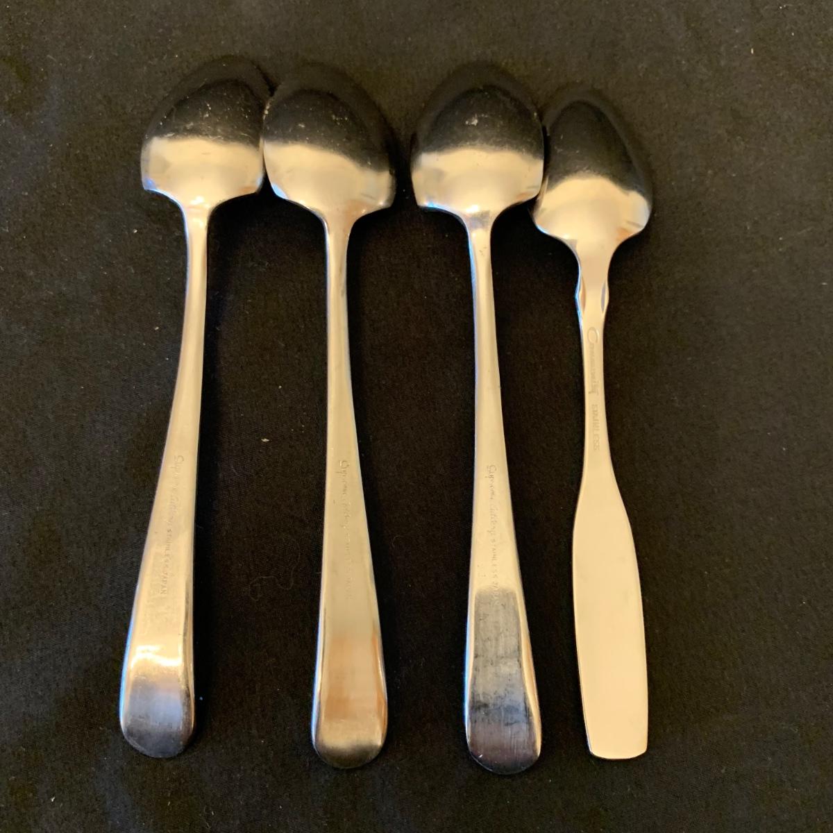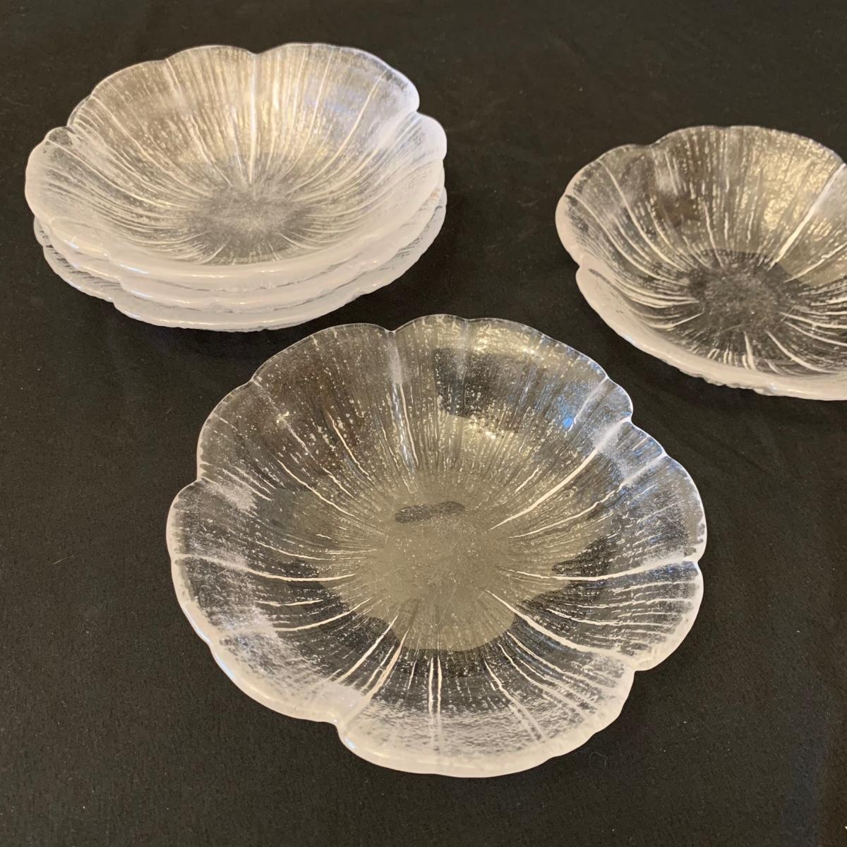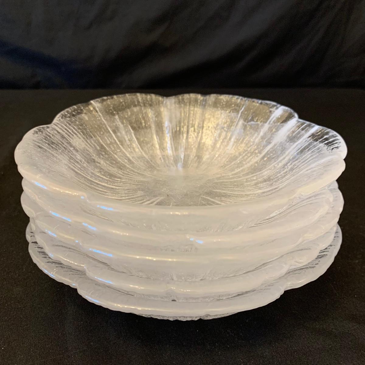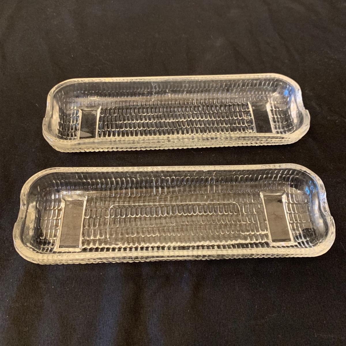 This collection of kitchenware includes: a lidded cruet, a set of five salad bowls, a deviled egg plate, two corncob dishes, a Pyrex butter dish, a 10 oz. Pyrex bowl, five 6 oz. Pyrex bowls, five Anchor Hocking juice glasses, and two glass juicer reamers, as well as four grapefruit spoons. The deviled egg dish is 10”D. Most items are in good condition. A few small chips are found on a corncob dish and a juicer reamer, and some areas of cloudiness and/or small scratches are seen on a few of the other items from being used.