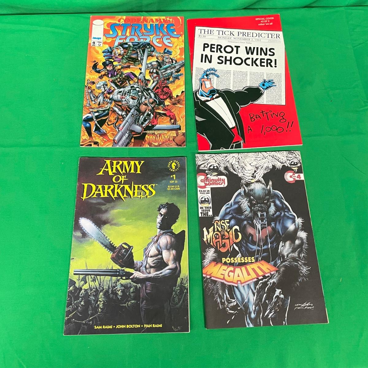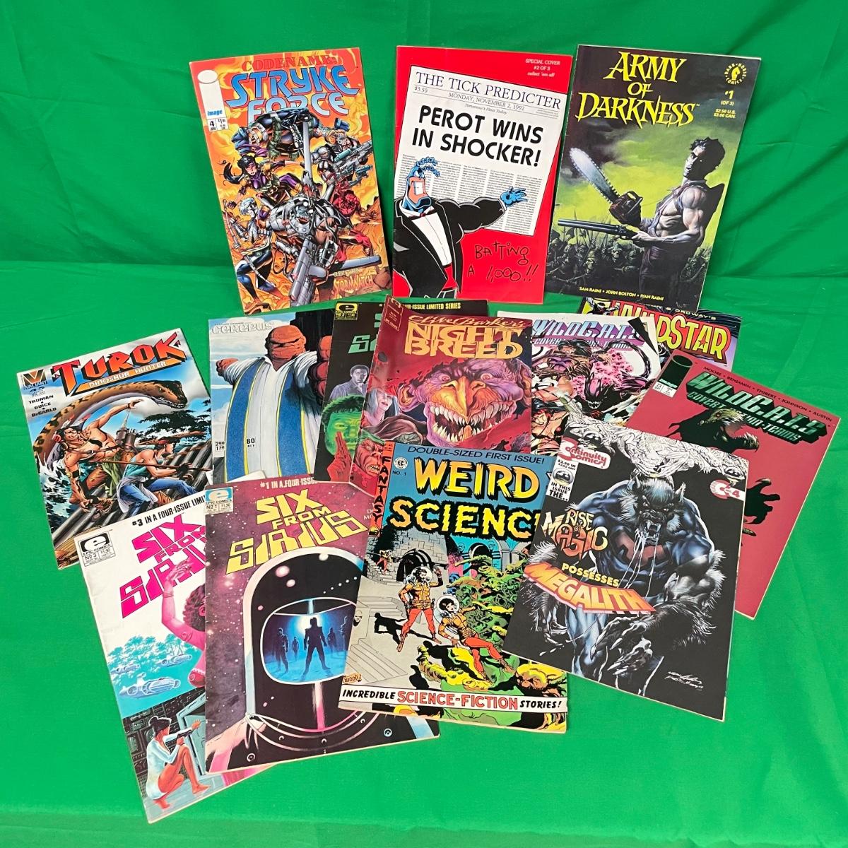 A variety of 14 comics from multiple publishers. Lot includes #1-3 of four in a limited series from Six from Sirius. The Tick Predicter #2 of three, Weird Science, Army of Darkness and more. See images. Items are sold as-is. No returns or refunds. Please bid accordingly.