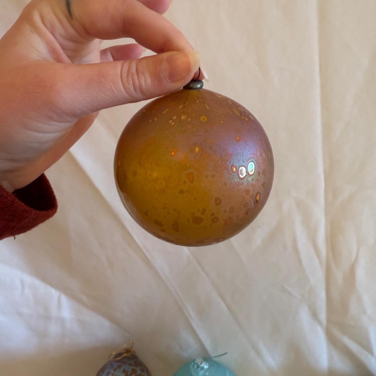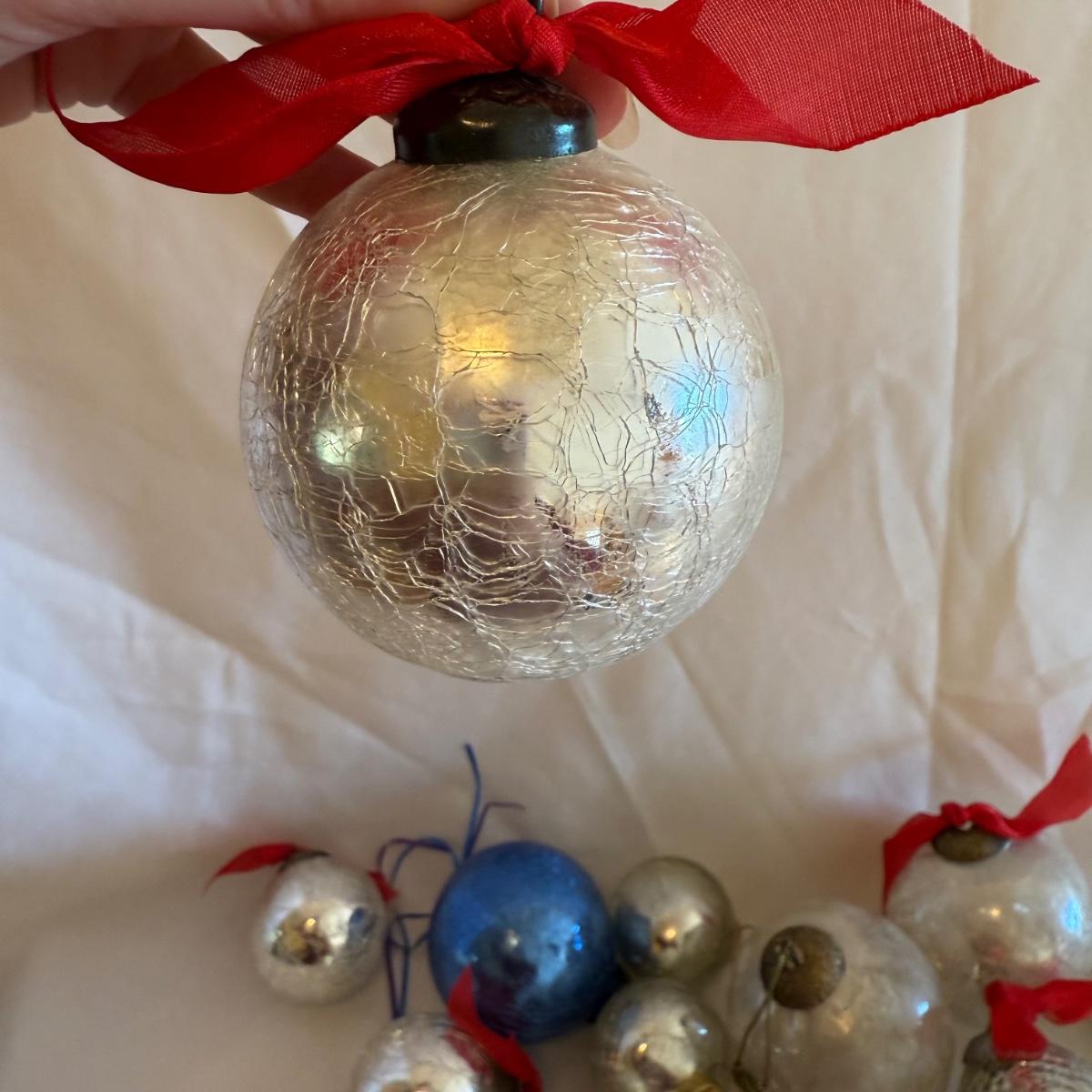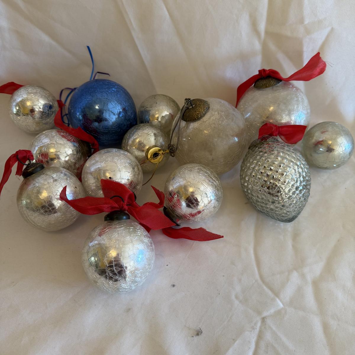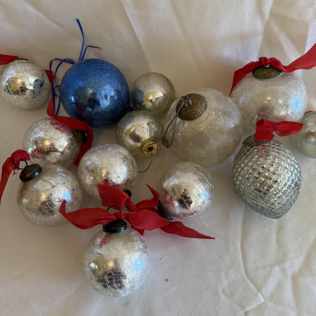 This lot contains a total of 22 glass bulb ornaments. Nine of them seem to be hand blown and in various colors and shapes. Smallest is 3” x 3”H, largest is 4.5” x 5”. The other 13 are different sizes and a couple different shapes but do match a bit. See pictures for details. Shipping available.