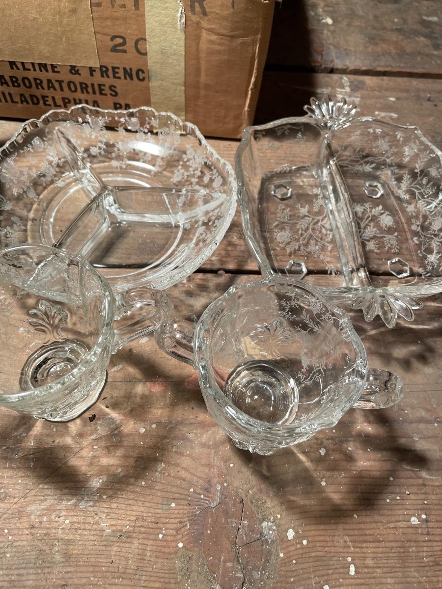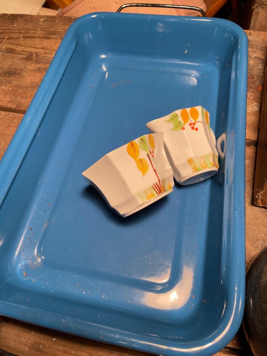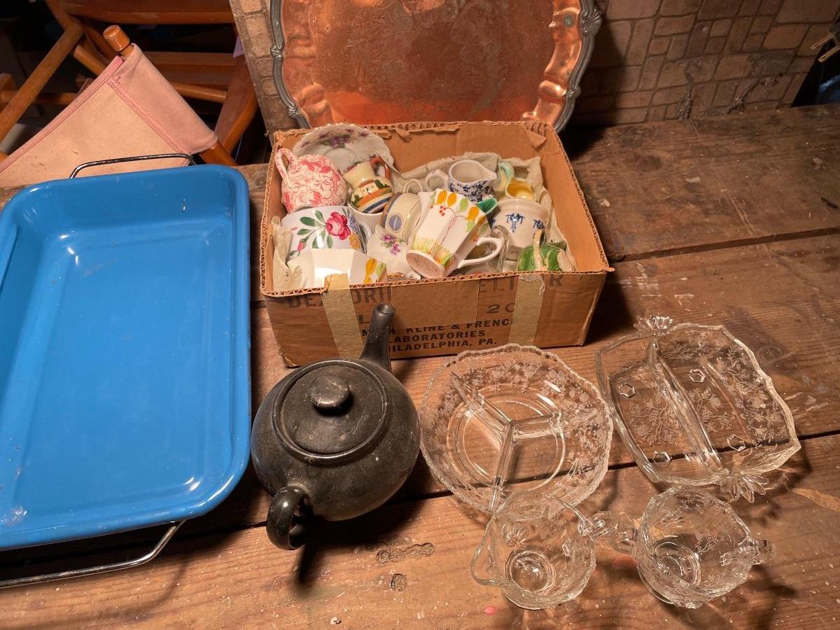 Variety of glass & China with enamel pan