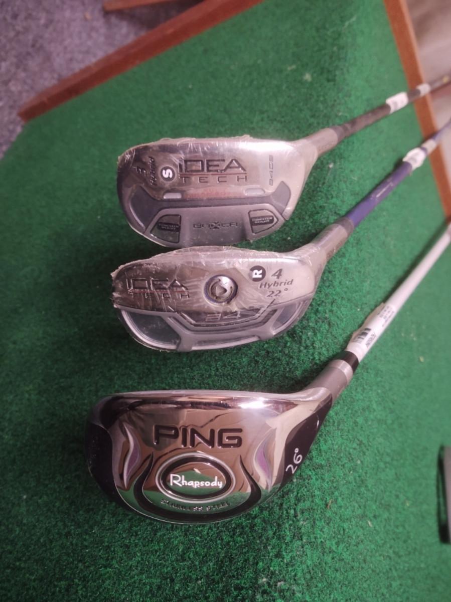 3 hybrid, 4 hybrid, 26º club, and a putter.
