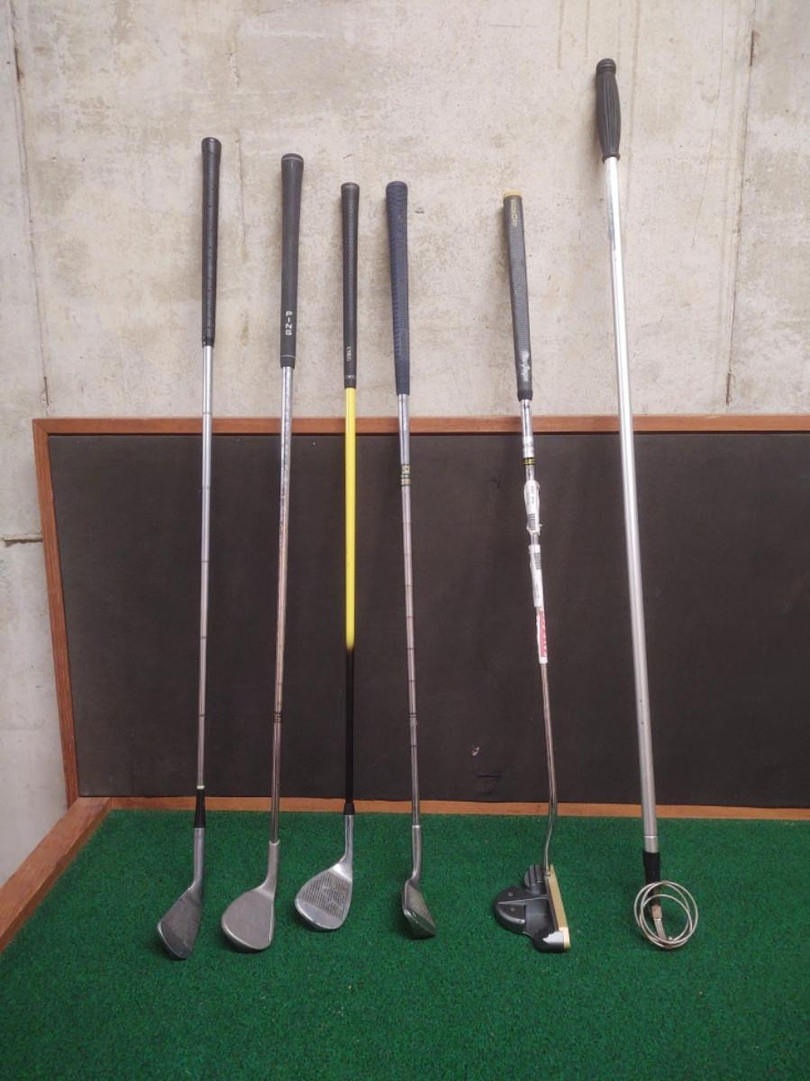 5 and 9 irons, two wedges, a putter and a ball retriever.