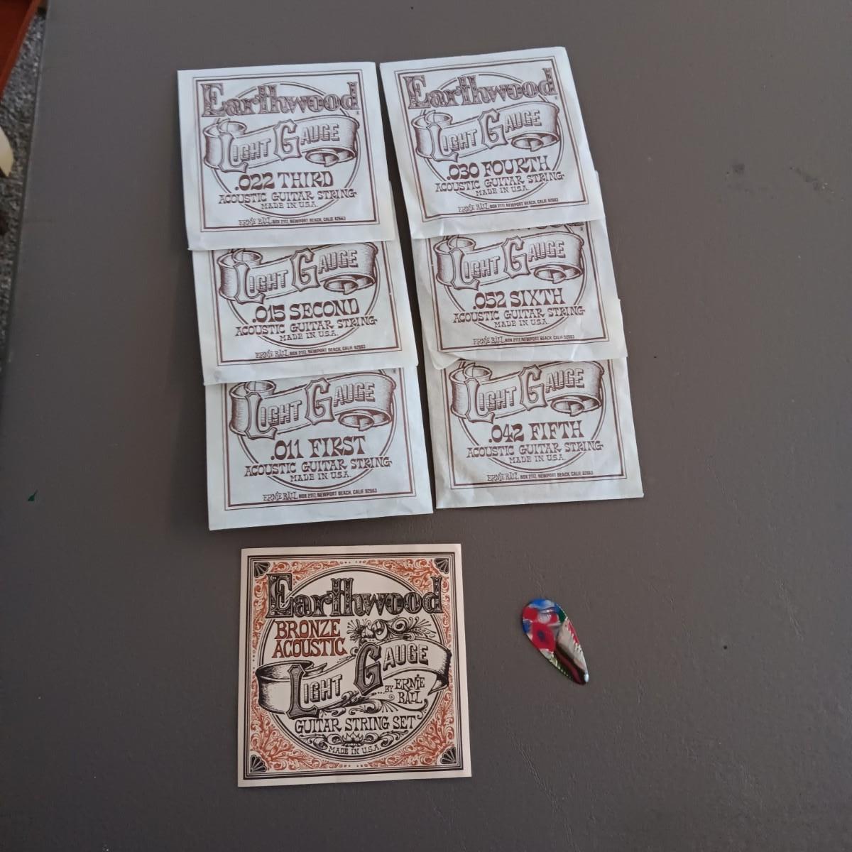 VARIETY OF GUITAR STRINGS AND A PICK