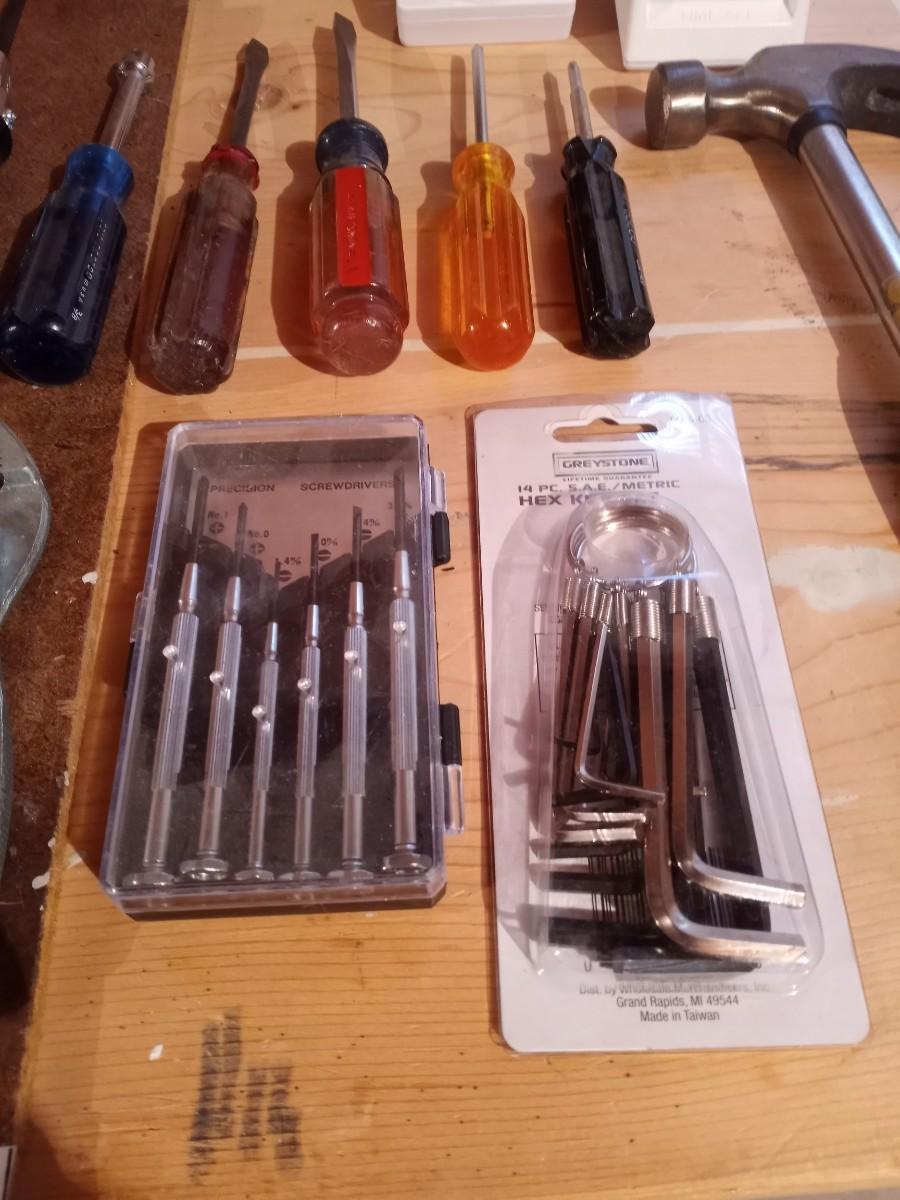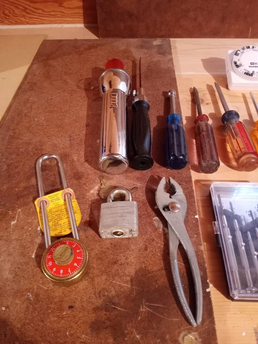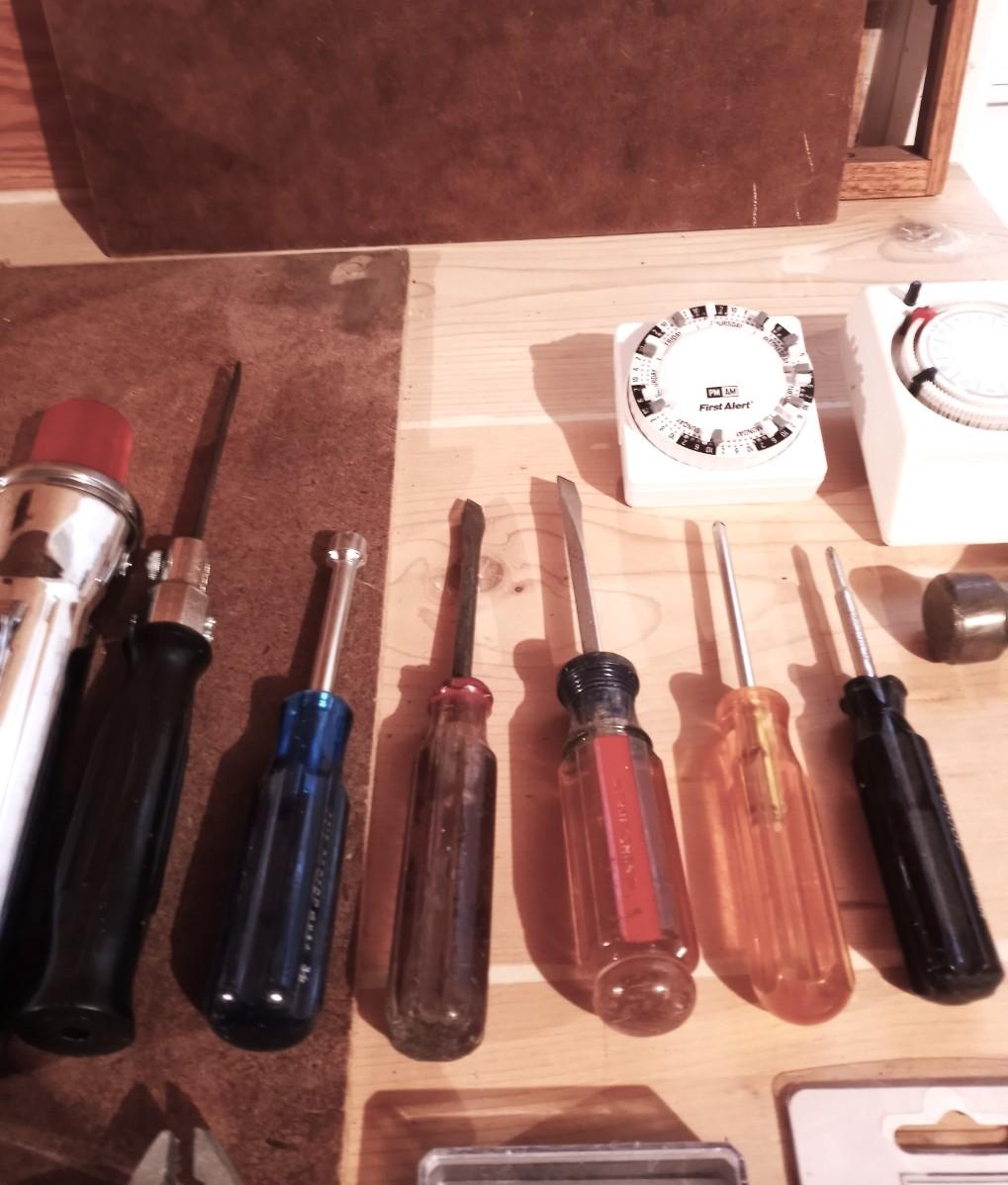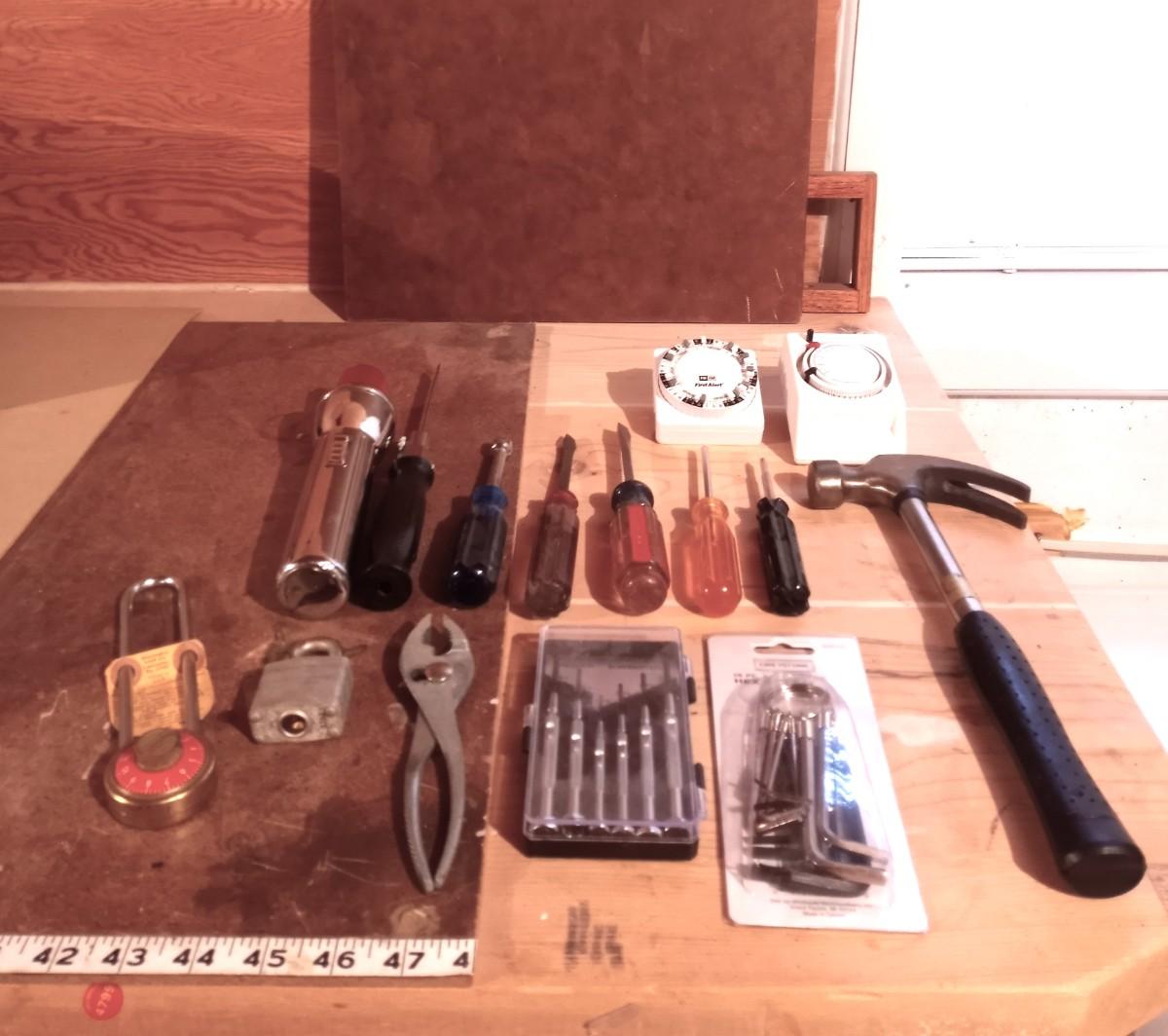 VARIETY OF HAND TOOLS-PRECISION SCREWDRIVER SET-HEX KEY SET-LOCKS-TIMERS AND MORE
