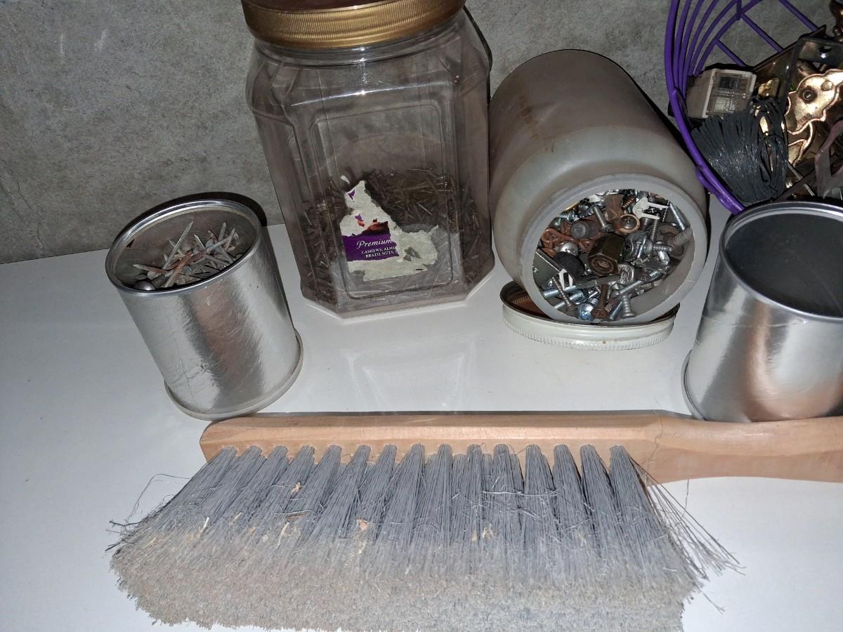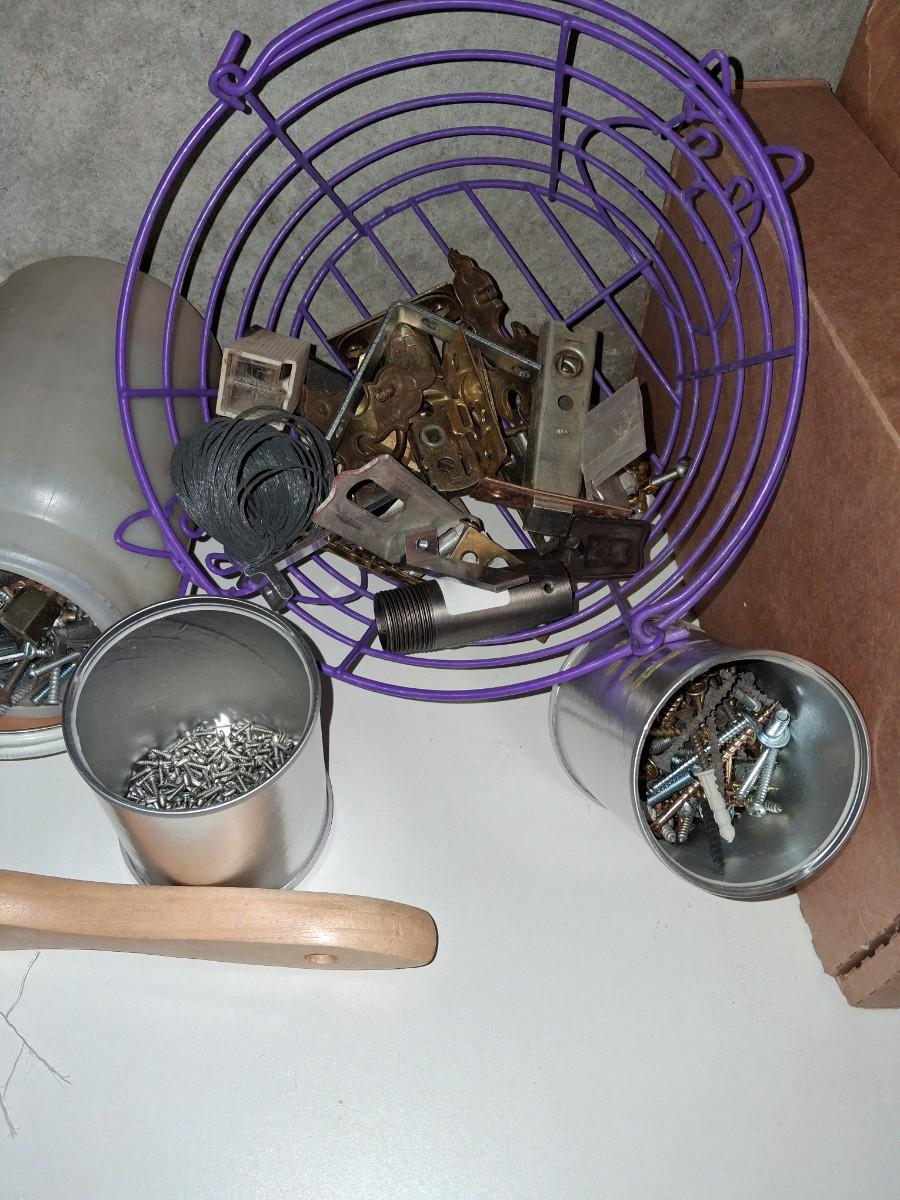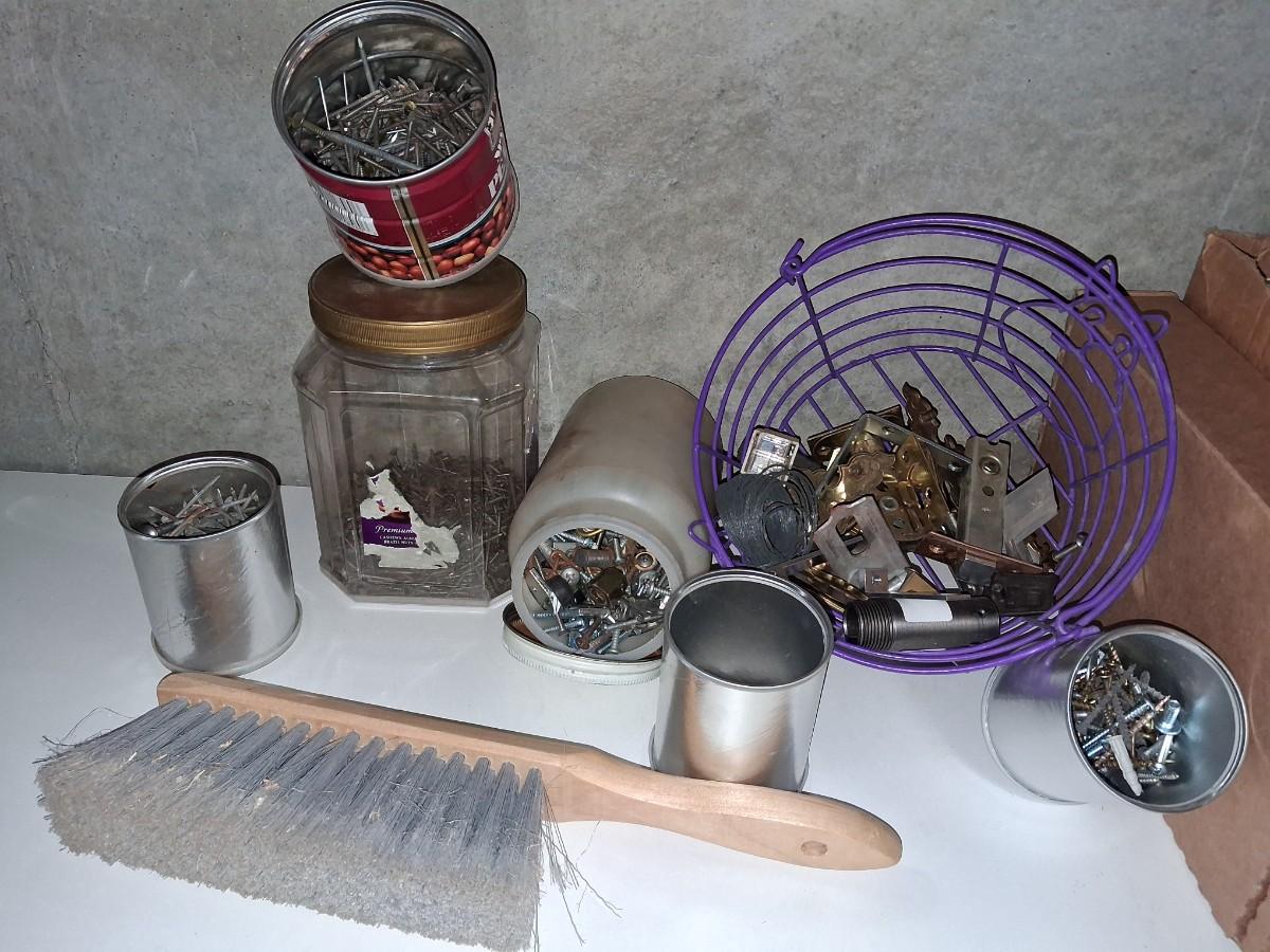 VARIETY OF HARDWARE AND A HAND BROOM