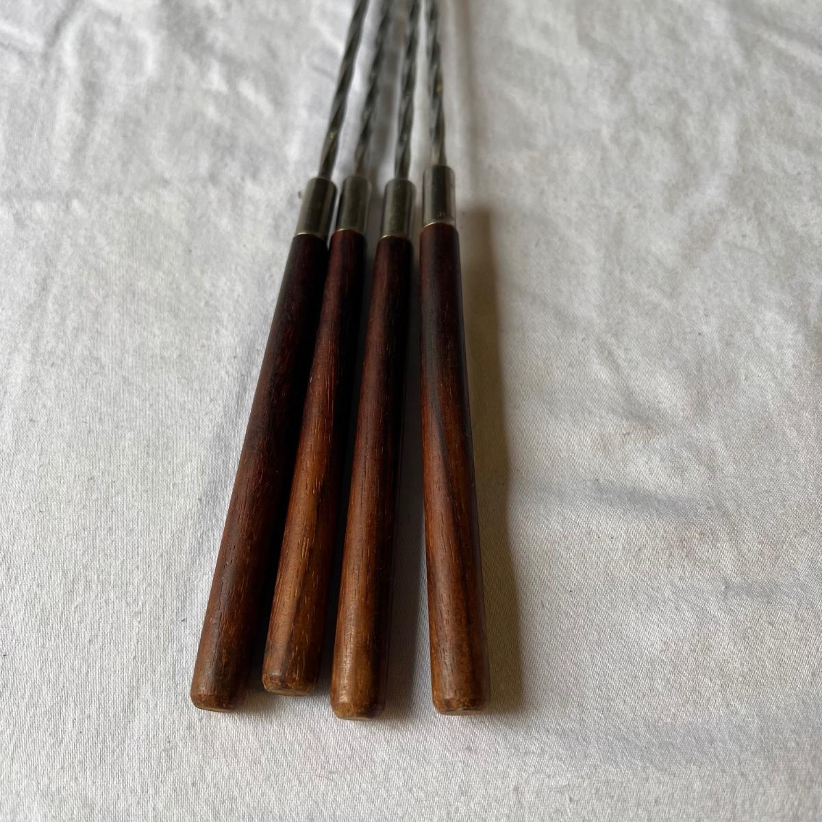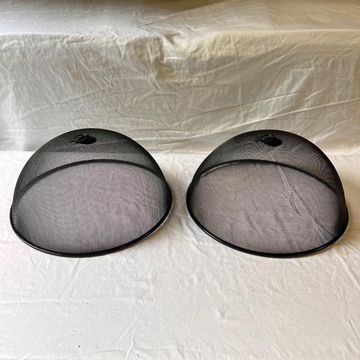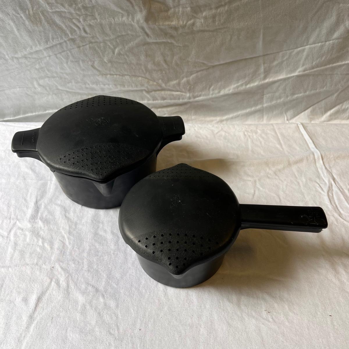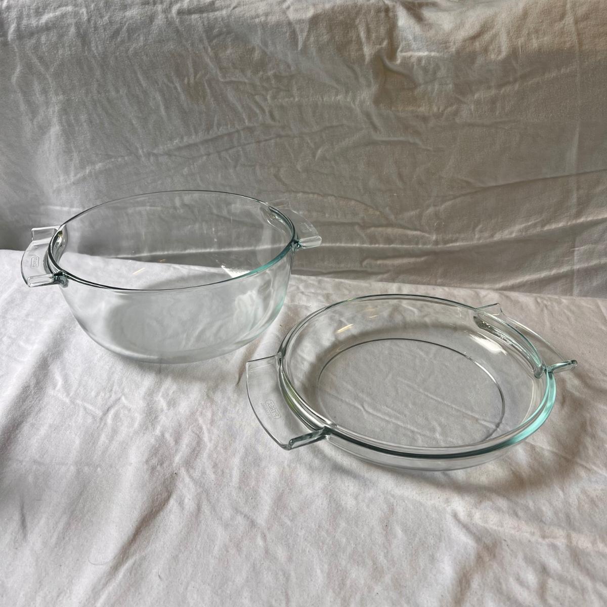 Lot includes 12 small skewers, four large skewers, two glass Pyrex dishes, salt and pepper shakers, a citrus juicer, a glass honey dispenser, an onion kitchen timer, a ceramic honey dish, a garlic grater, a pocket bottle opener/knife, a potato press, a cookie dough scooper, two plastic micro cookers by Pampered Chef, a Nordic Ware Aluminum Crepe Pan, two mesh food covers, four corn on the cob glass dishes, one good grip colander, and one pizza pan. The strainer is the largest item that measures 23” x 9”H. Shipping available.