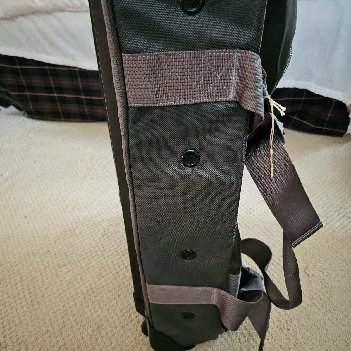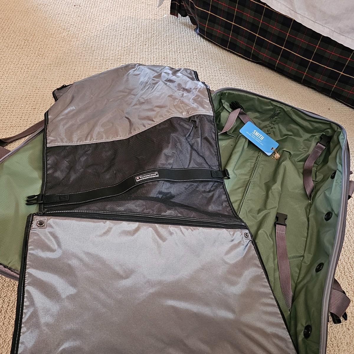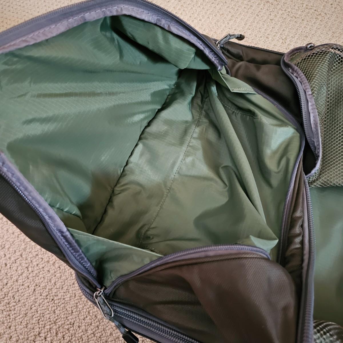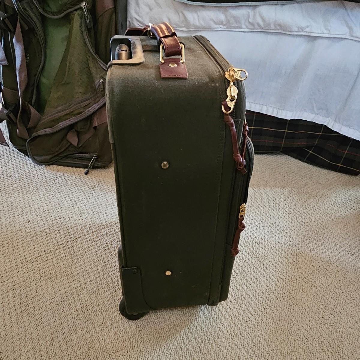 Four duffle/traditional style pieces and some other items, hanging bags, pouches, etc. Two pieces of Orvis travel gear, largest is 18" x 9" x 32"H, smaller is 14" x 8" x 22" H. Two container bags with large D rings, 17" x 31". Red Jump duffle is 14" x 10" x 21". Also includes one portable weighing scale. See photos for details. Local pickup only.
