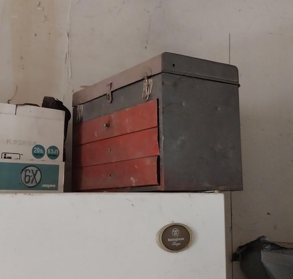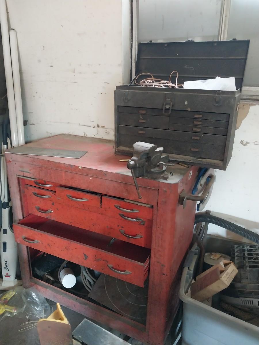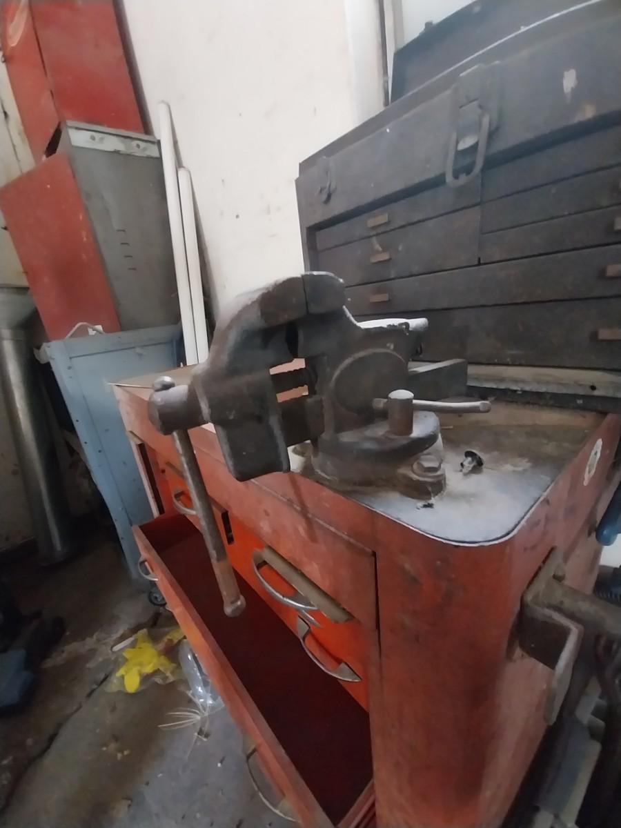 VARIETY OF METAL TOOLBOXES AND VISE