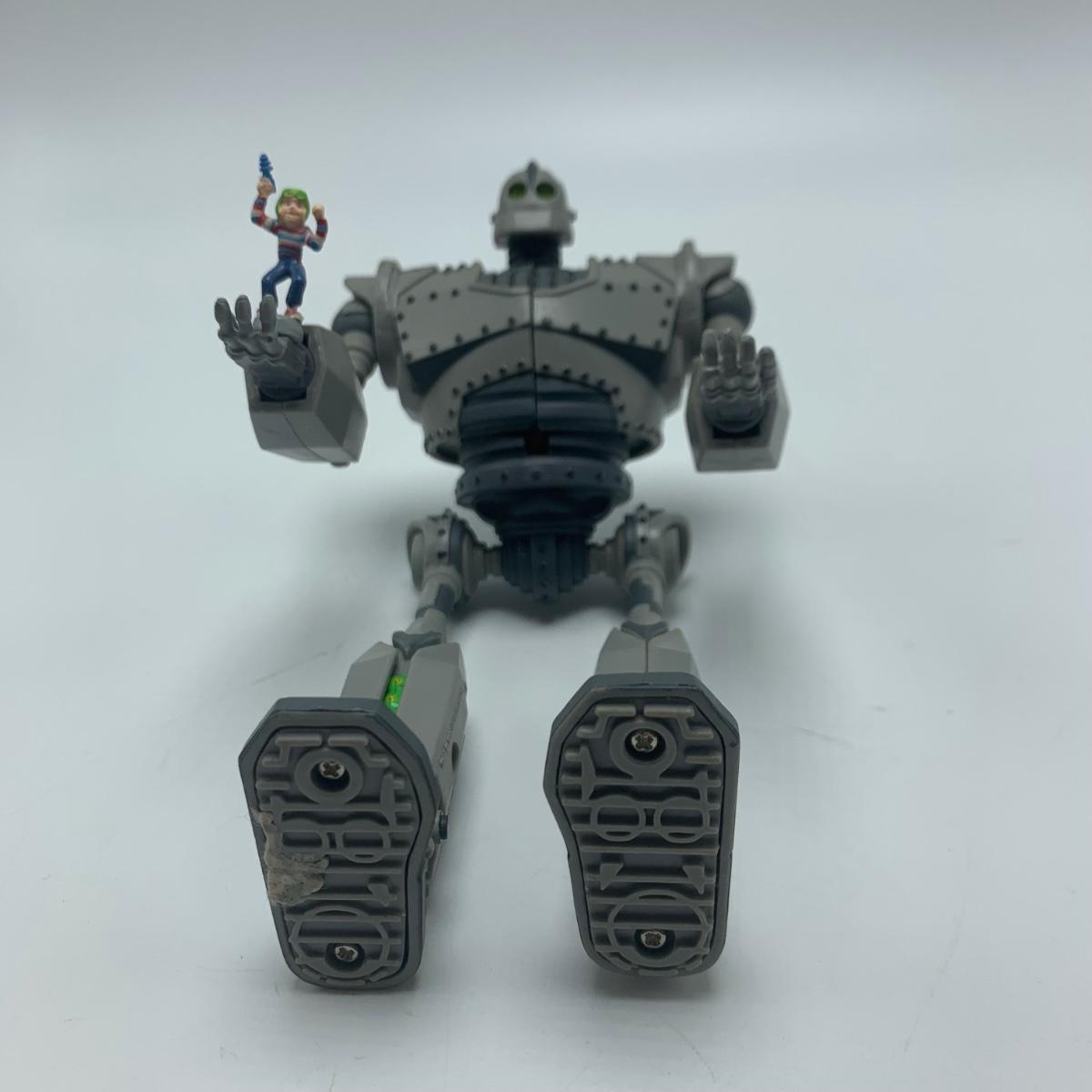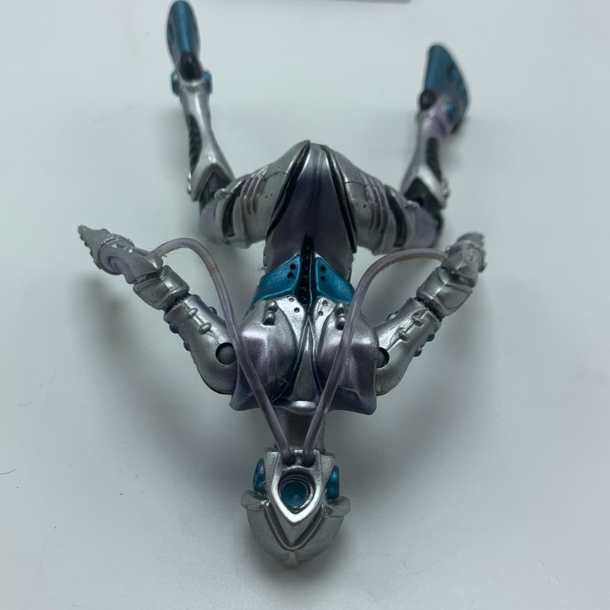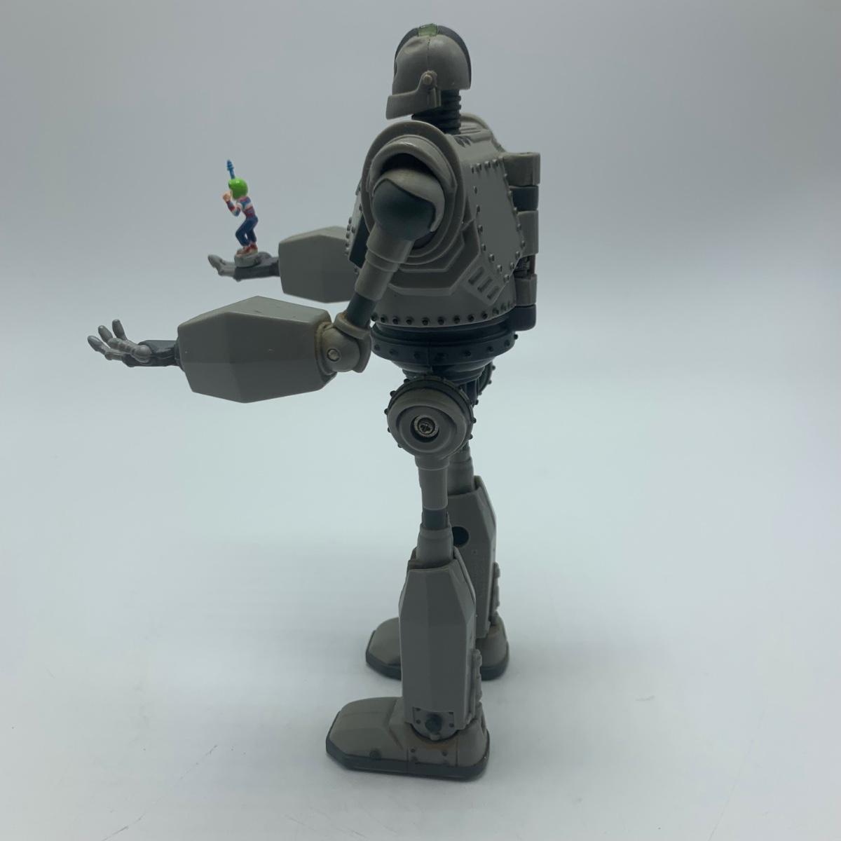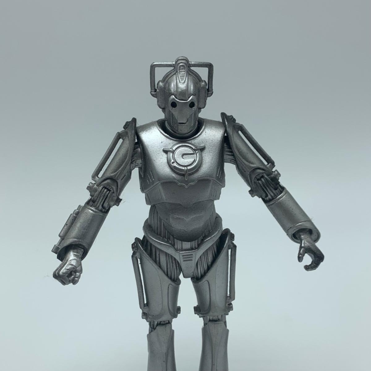 A variety of seven robot action figures. Featuring Maria from Metropolis, Phaeton from Exo Squad, Cyberman from Dr. Who, the Iron Giant, Cylon Centurion from Battlestar Galactica, and a robot from Lost in Space. The Lost in Space is the largest at 8” x 8” x 9”H. All items are plastic. The electronic items did not power on and likely need new batteries.