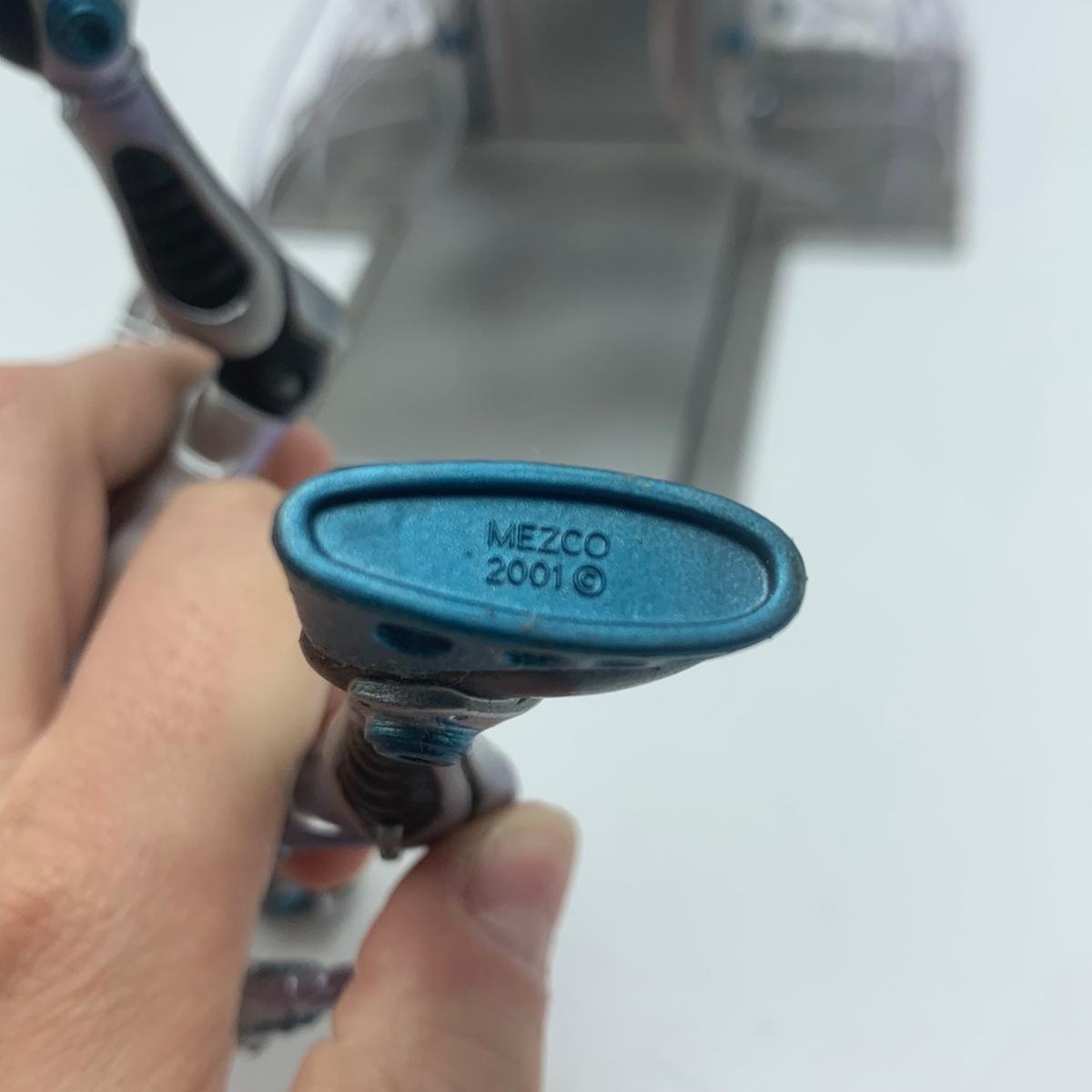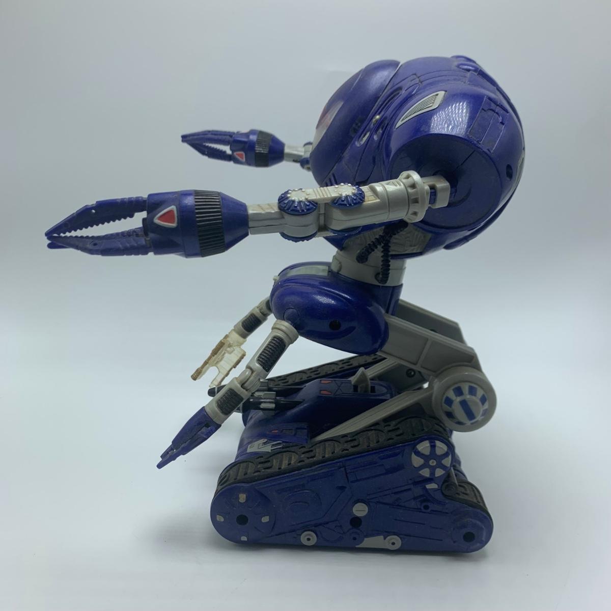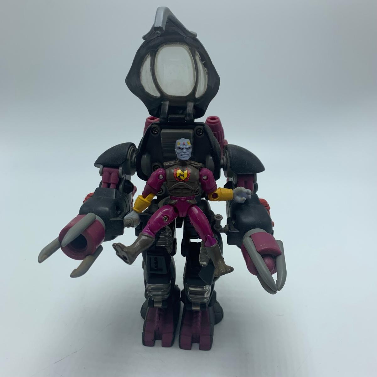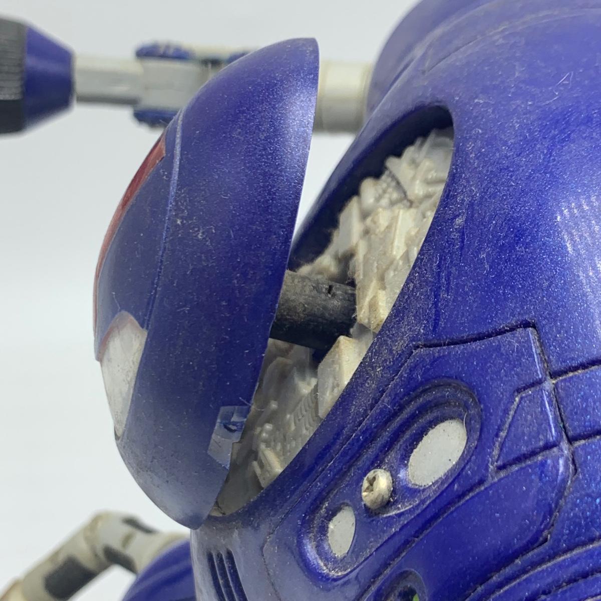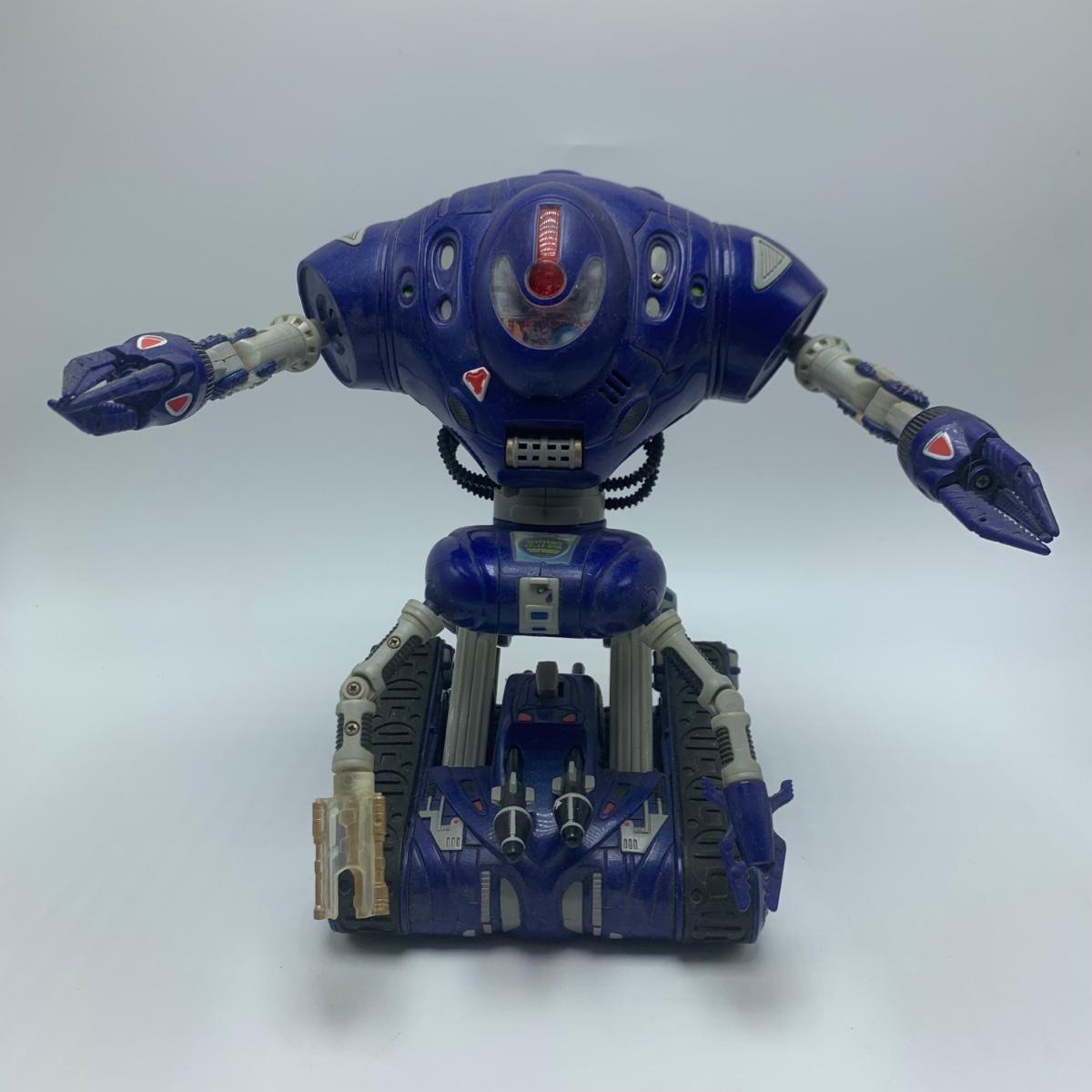 A variety of seven robot action figures. Featuring Maria from Metropolis, Phaeton from Exo Squad, Cyberman from Dr. Who, the Iron Giant, Cylon Centurion from Battlestar Galactica, and a robot from Lost in Space. The Lost in Space is the largest at 8” x 8” x 9”H. All items are plastic. The electronic items did not power on and likely need new batteries.