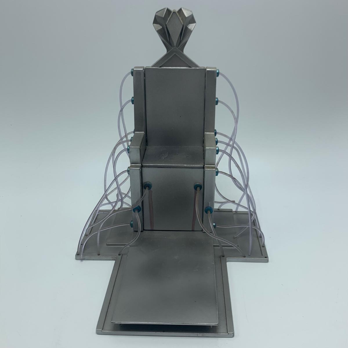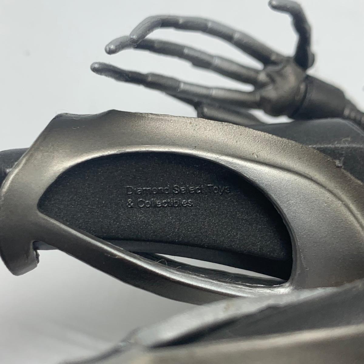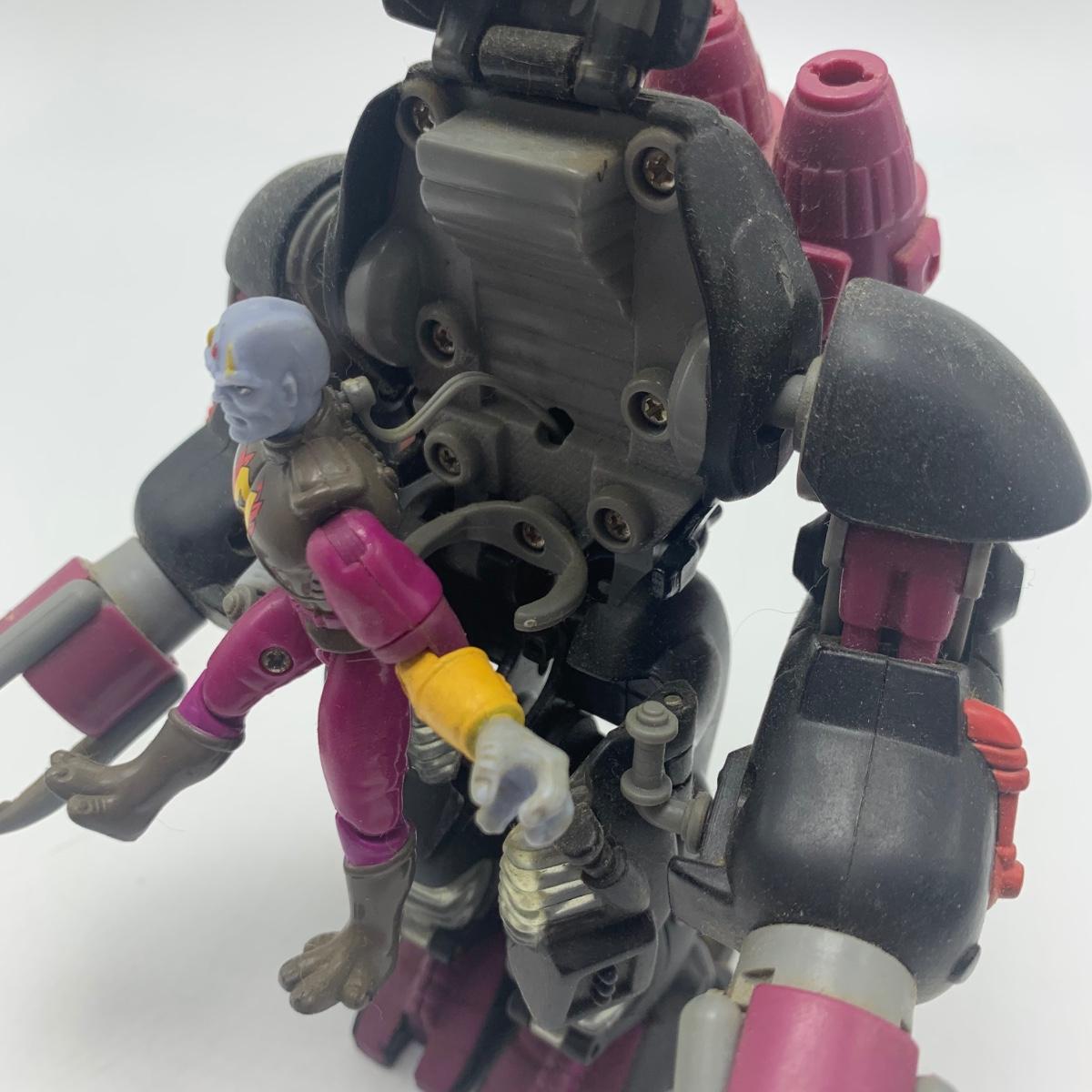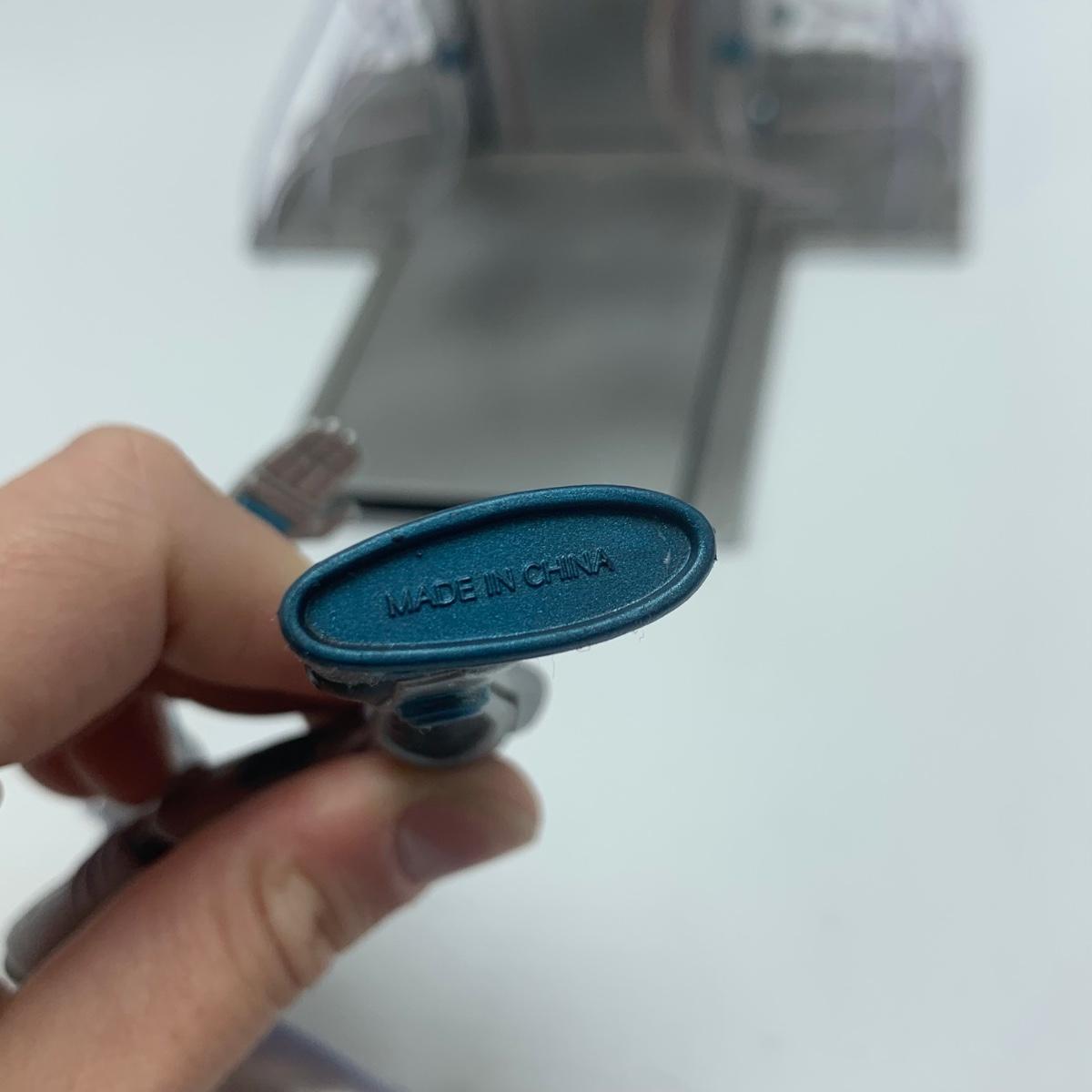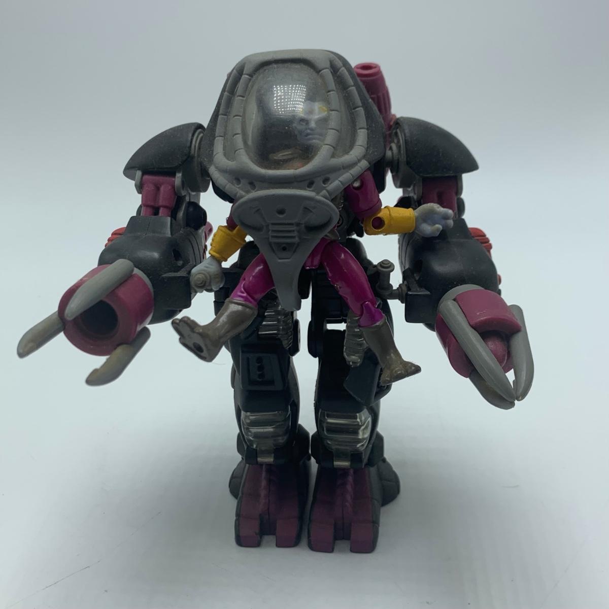 A variety of seven robot action figures. Featuring Maria from Metropolis, Phaeton from Exo Squad, Cyberman from Dr. Who, the Iron Giant, Cylon Centurion from Battlestar Galactica, and a robot from Lost in Space. The Lost in Space is the largest at 8” x 8” x 9”H. All items are plastic. The electronic items did not power on and likely need new batteries.