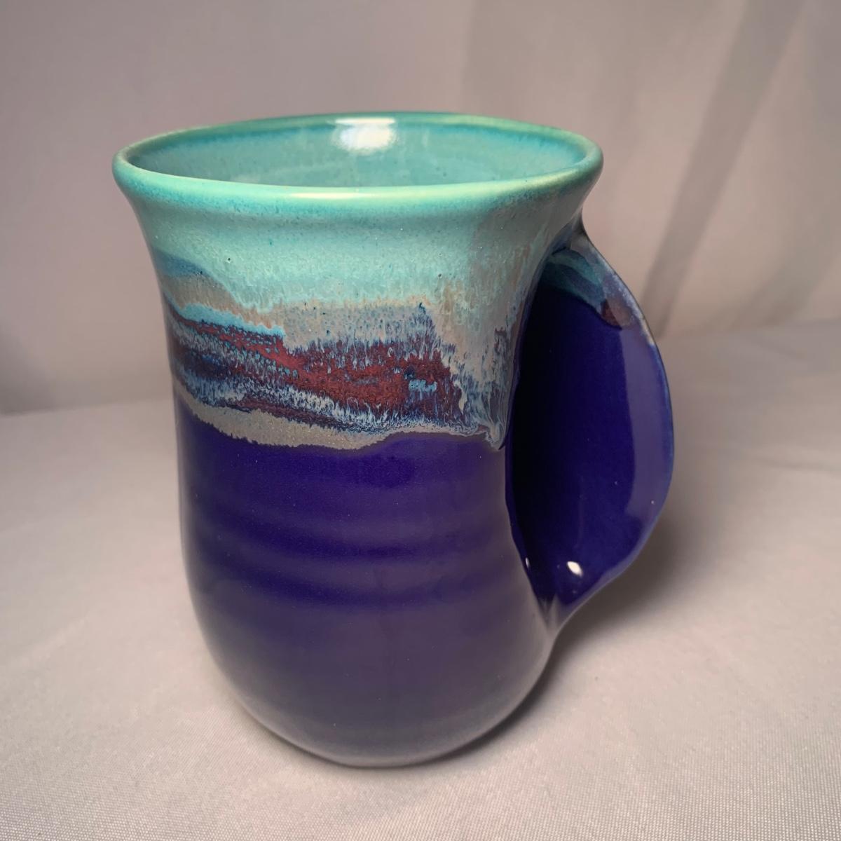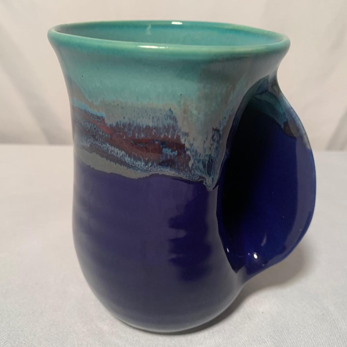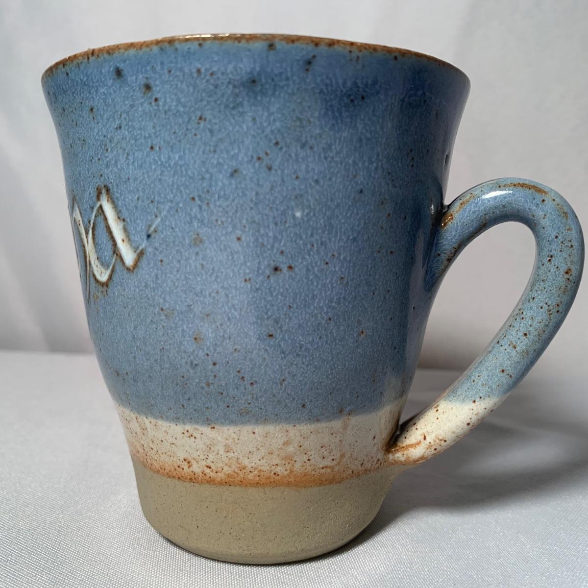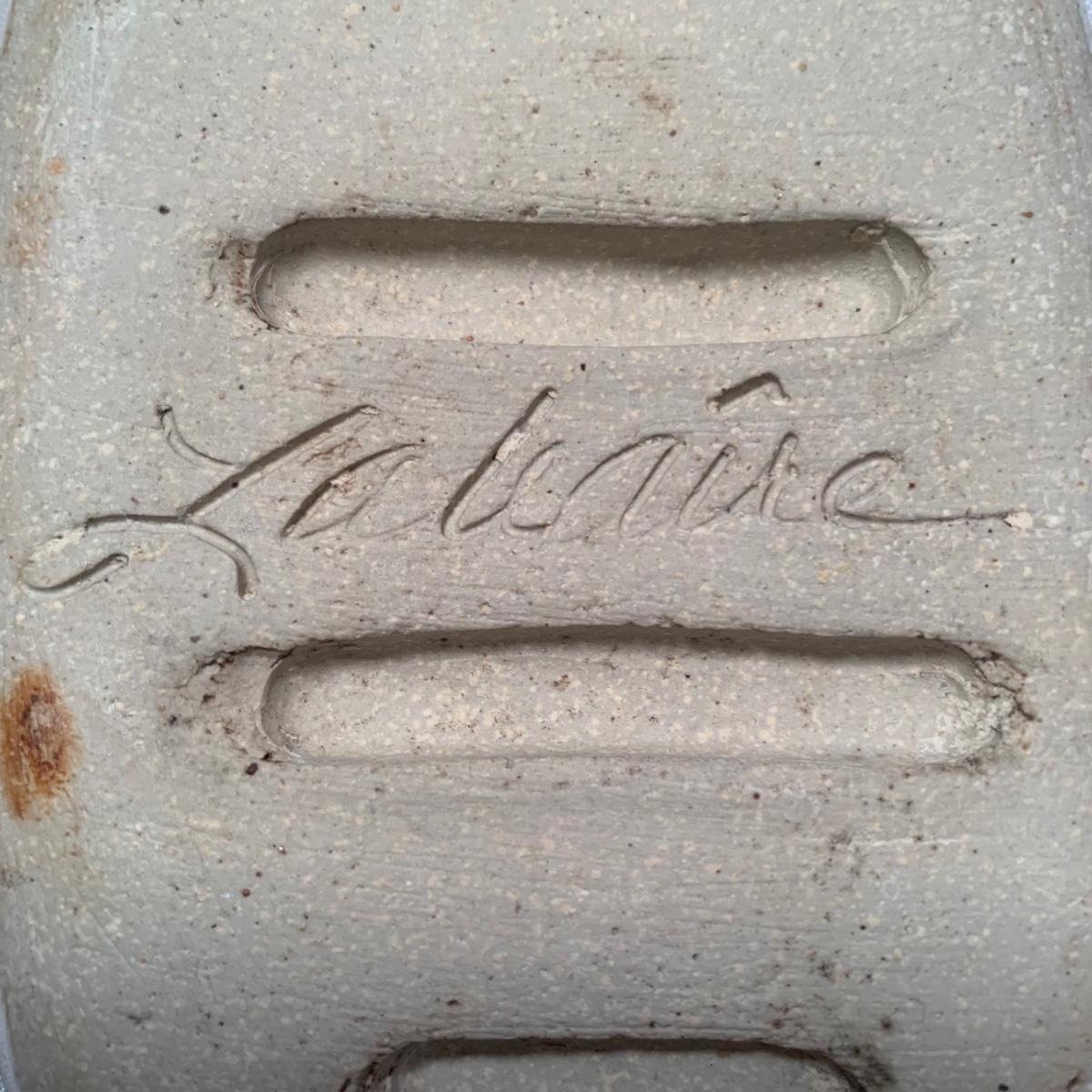 Breathe blue into your kitchen with this selection of blue themed ceramics. Lot includes a painted cattail soap dish, hand painted “Gray Jay” dish, “Martha” mug, glazed teal and blue mug, and koi fish butter bell. All items are signed by their respective artists and in good condition. See photos for details. “Gray Jay” dish measures 8”L x 5”W x 1”H. Wire stand not included.