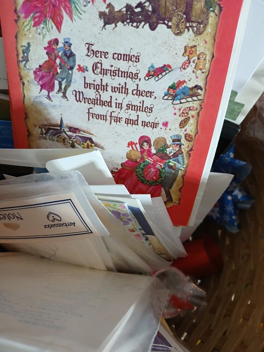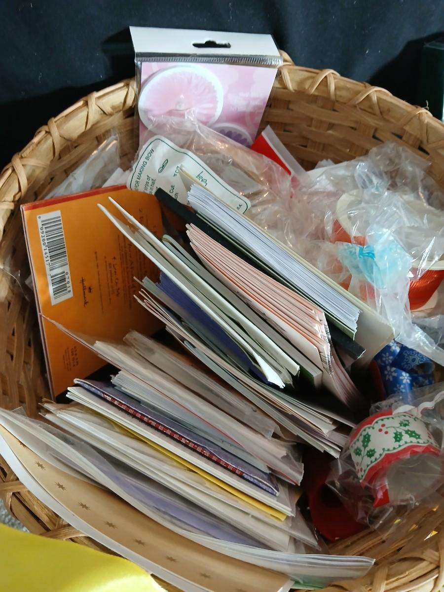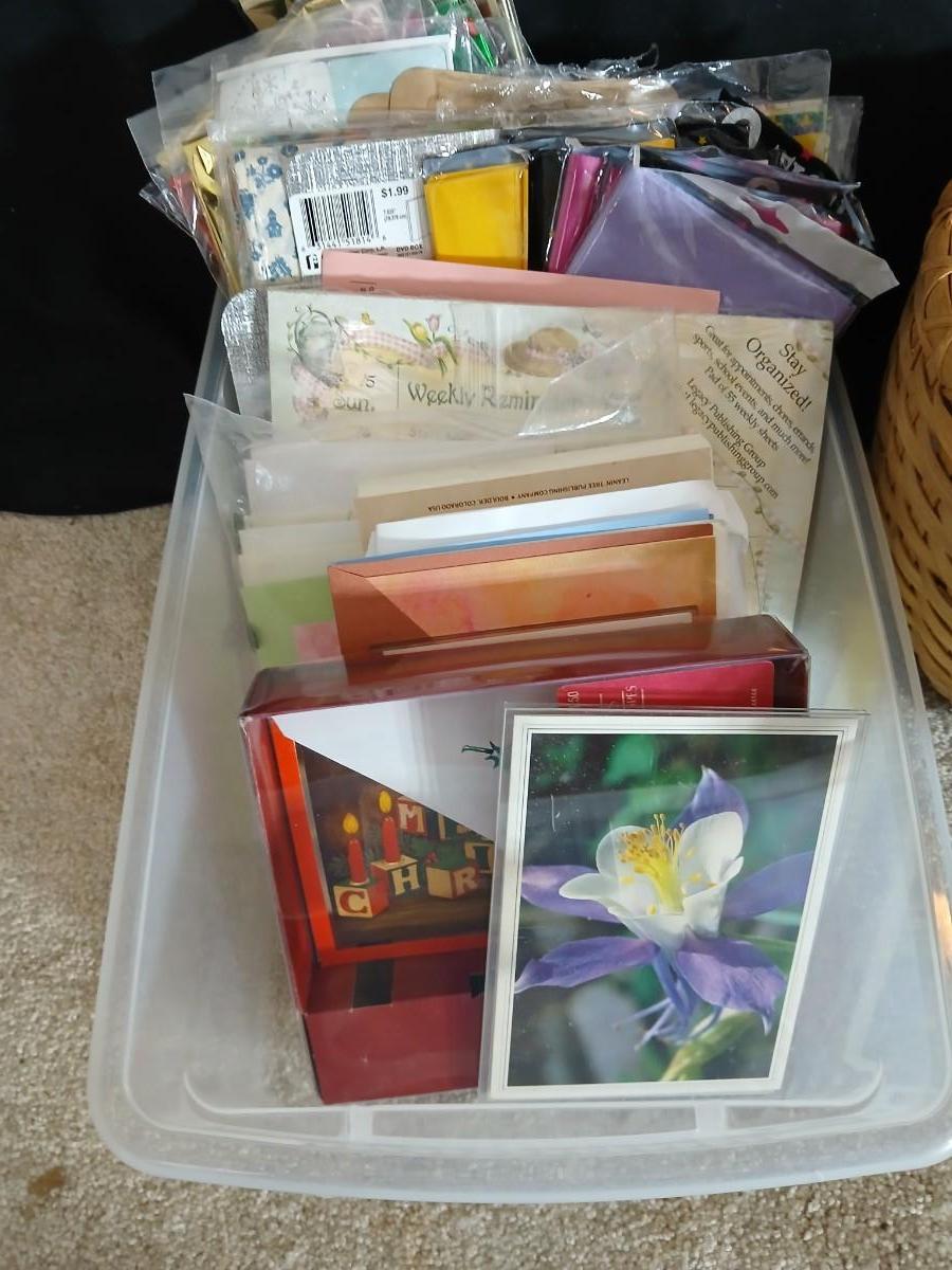 Variety of stationary and greeting cards - many still brand new in a tote and a basket
