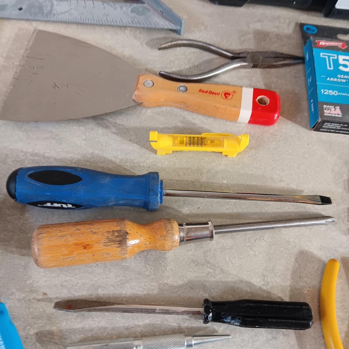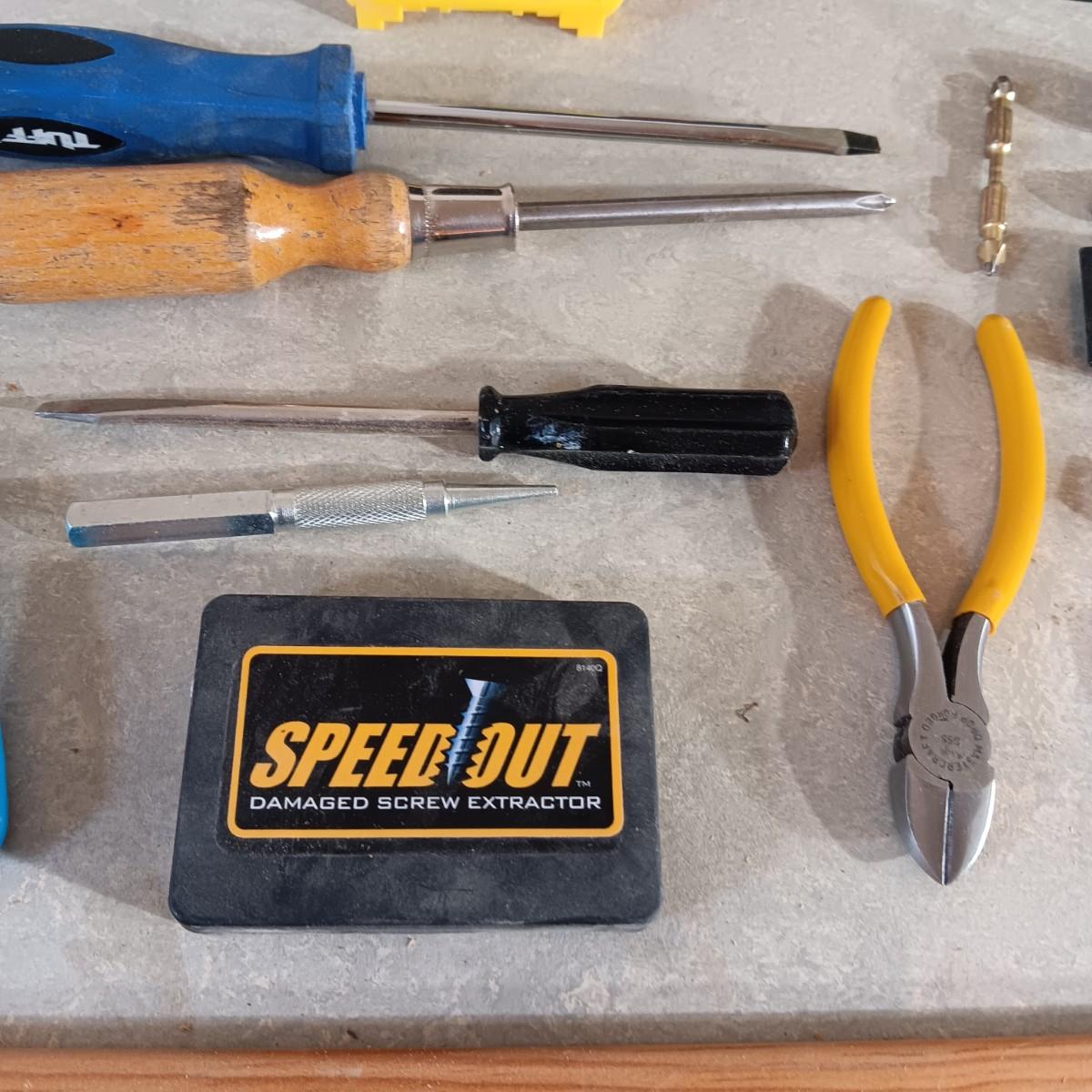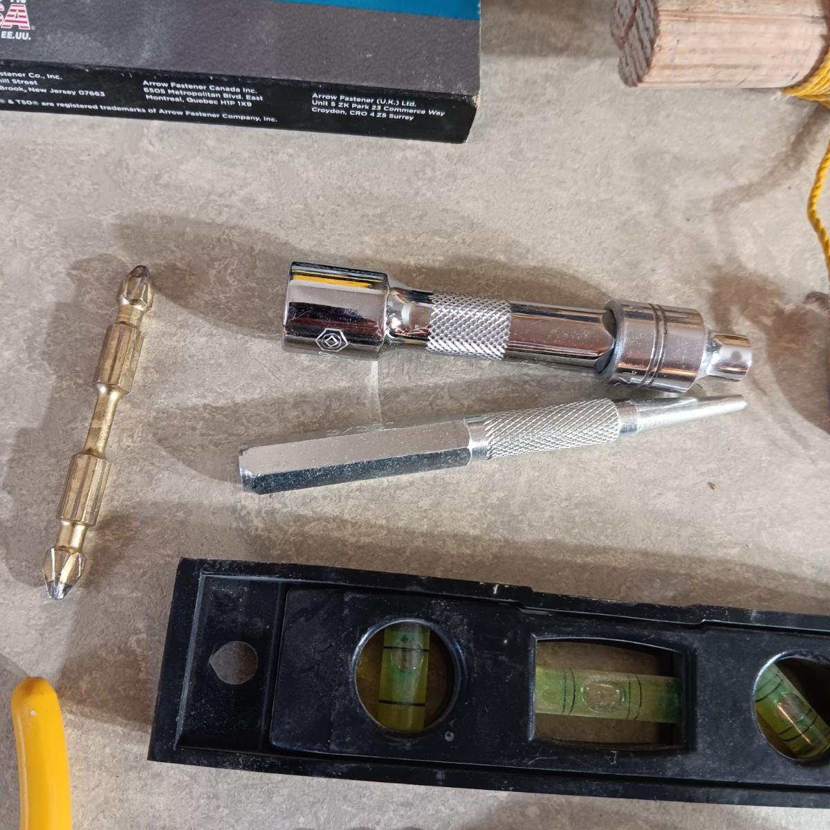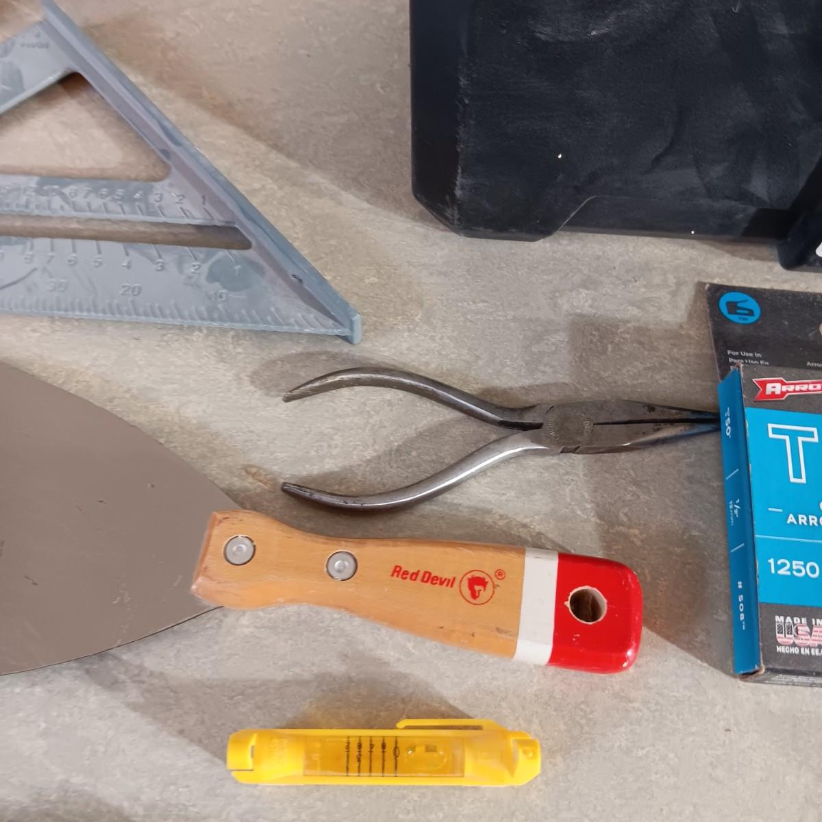 VARIETY OF TOOLS AND A TOOL BOX W/SHELF