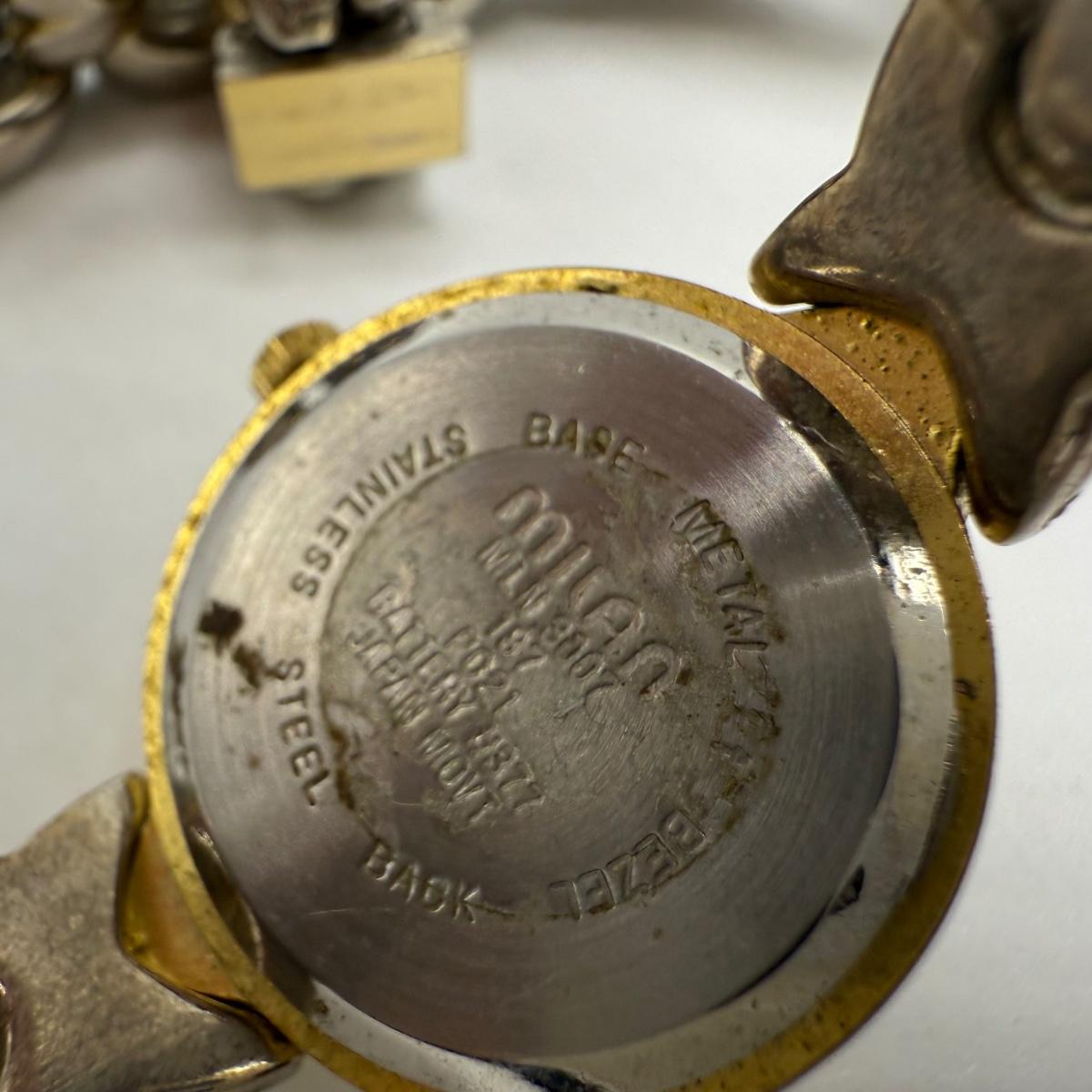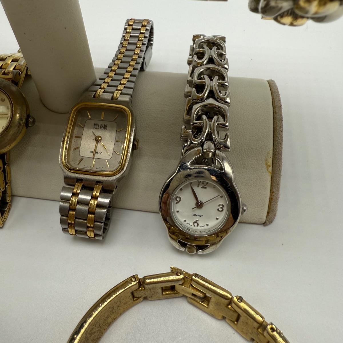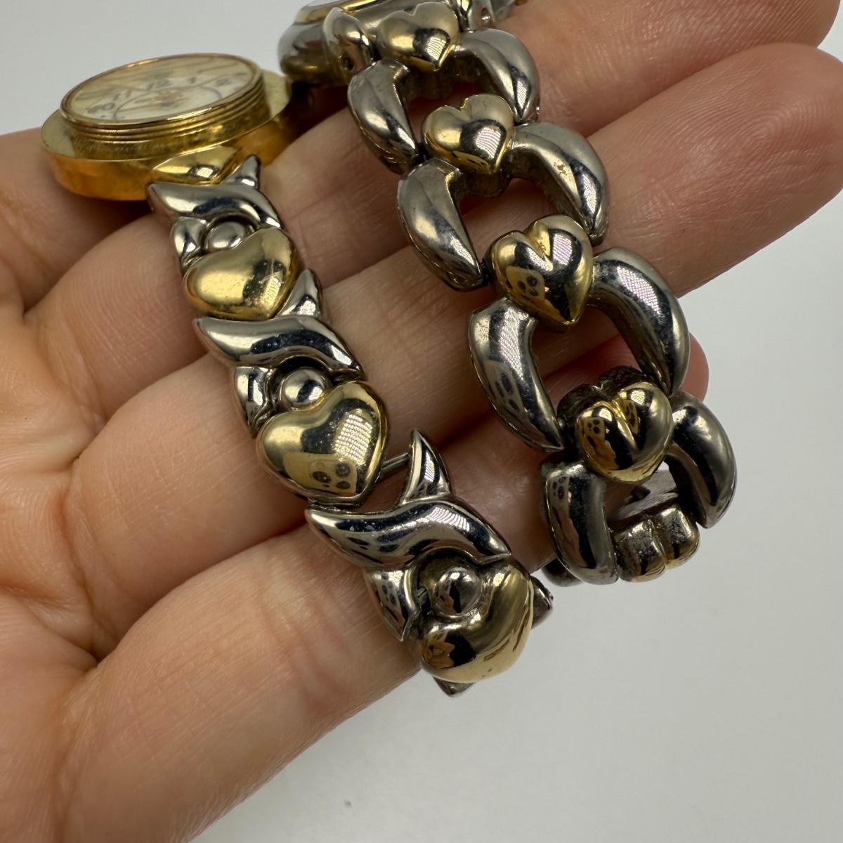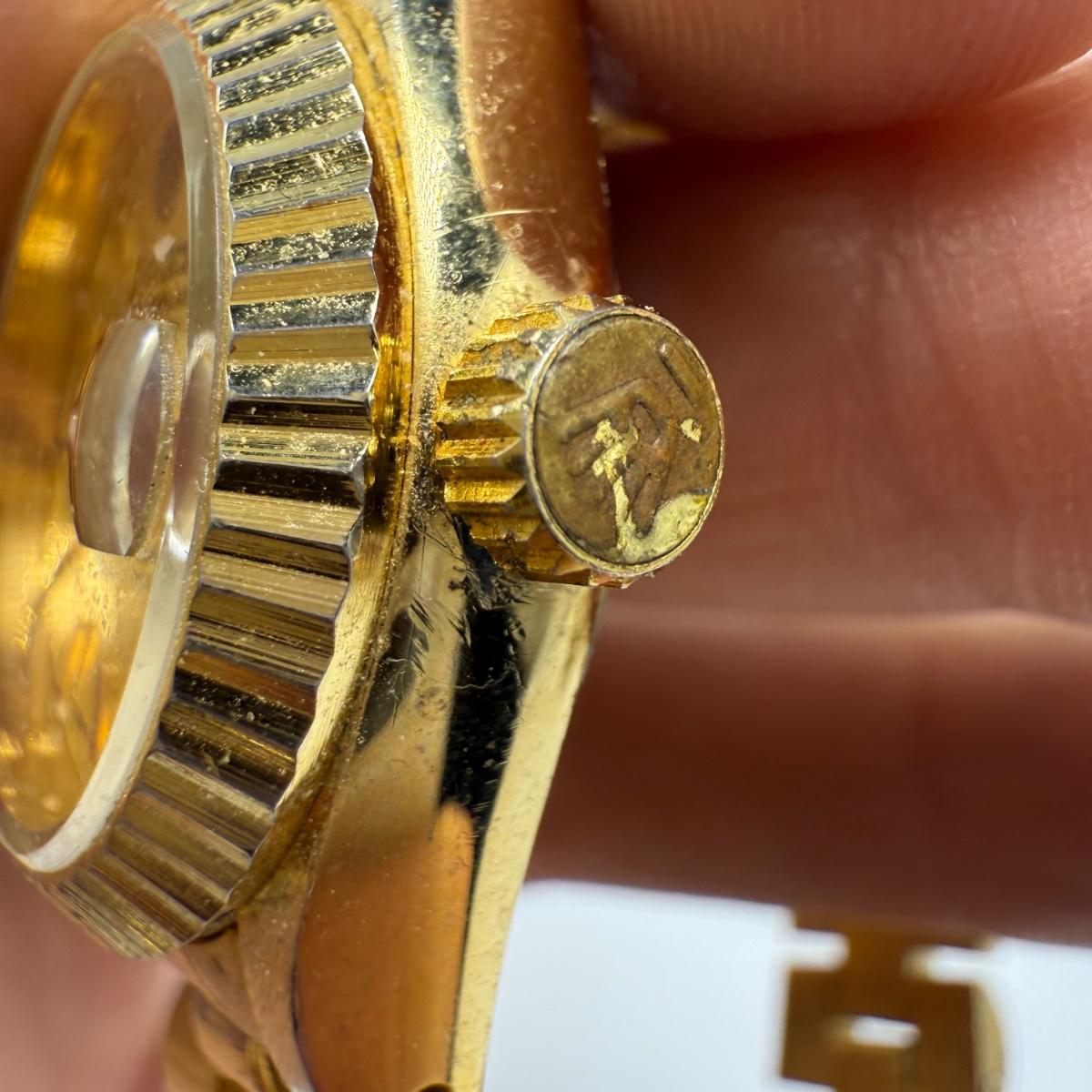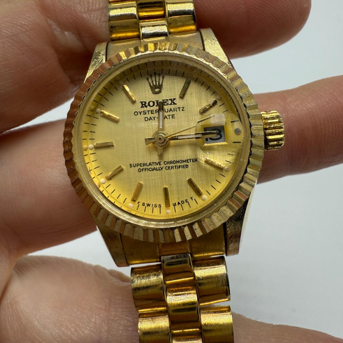 14 women’s watches, all with metal bands (some with clasps, some elastic). A fun and elegant variety from many different brands. Most appear to be in good condition, but some are worn. None are currently functioning. We do not believe the Rolex is authentic. Please see photos for inventory and details.