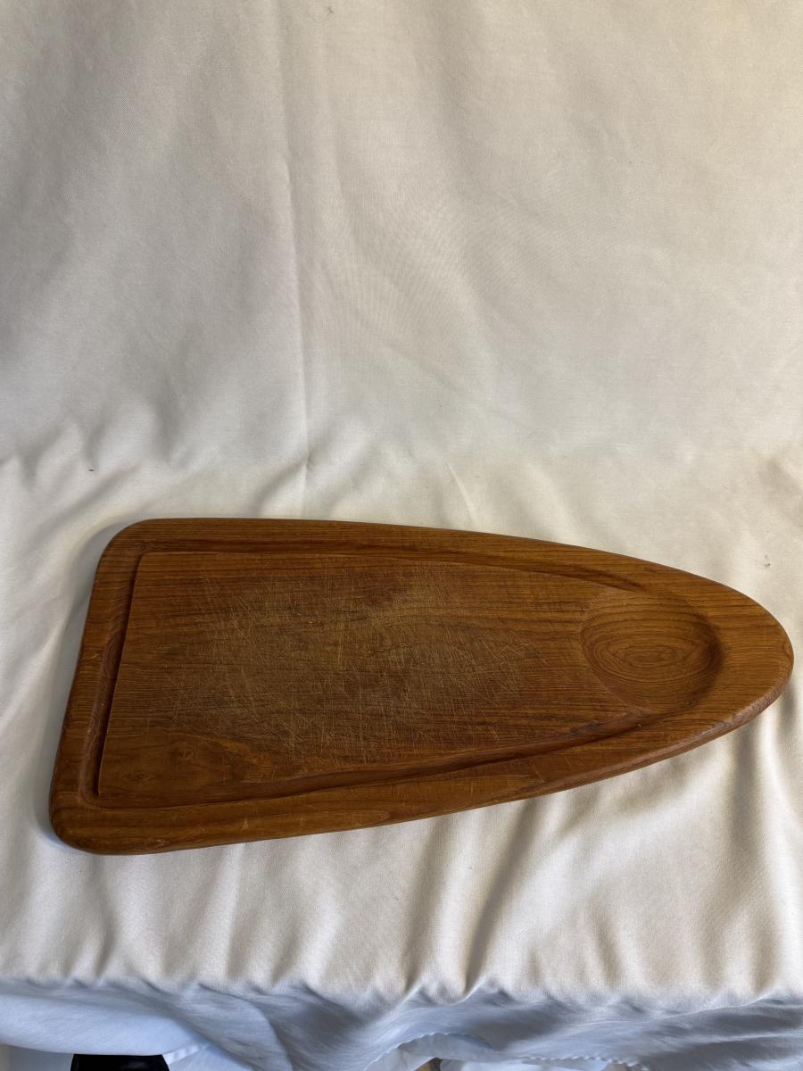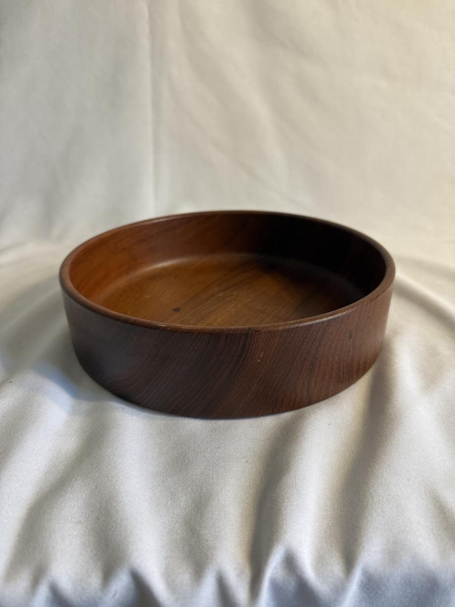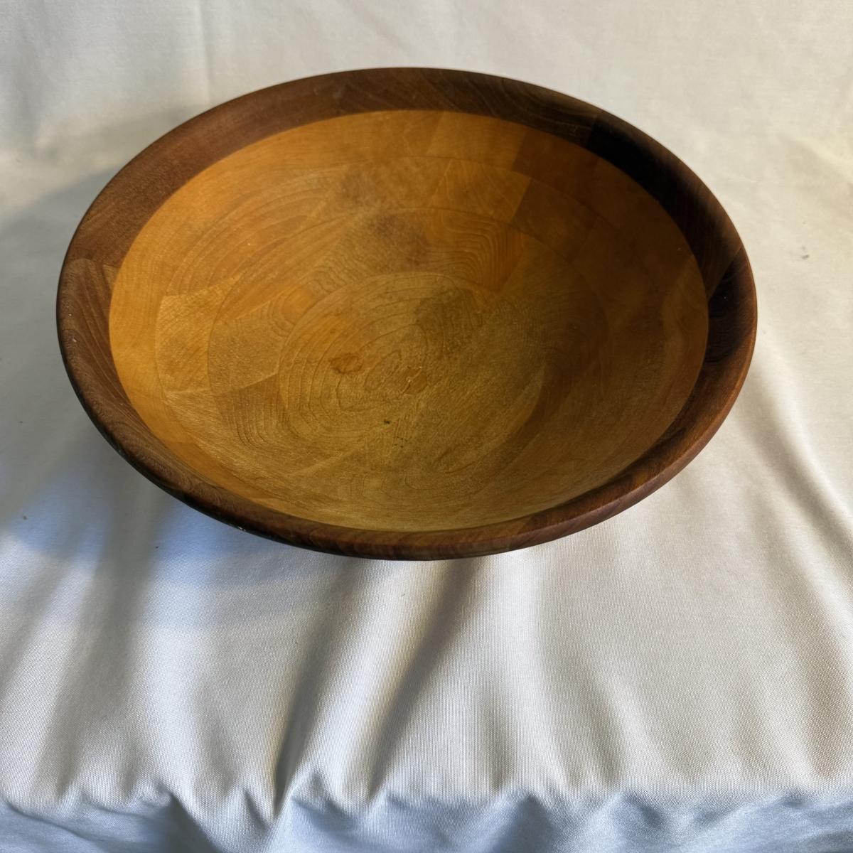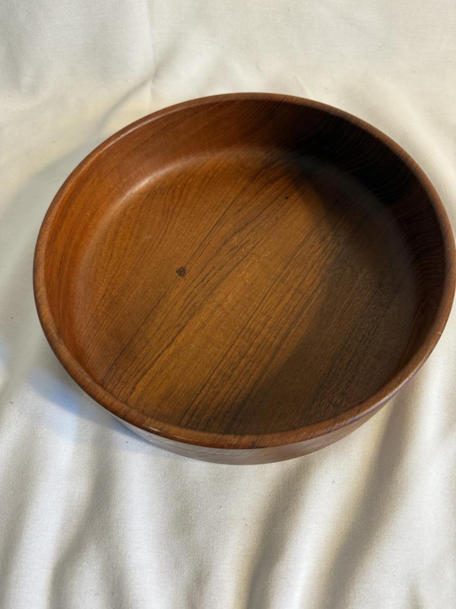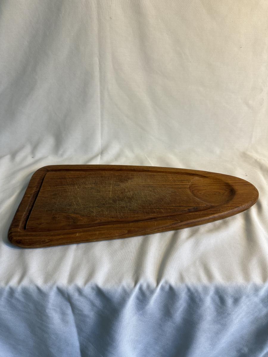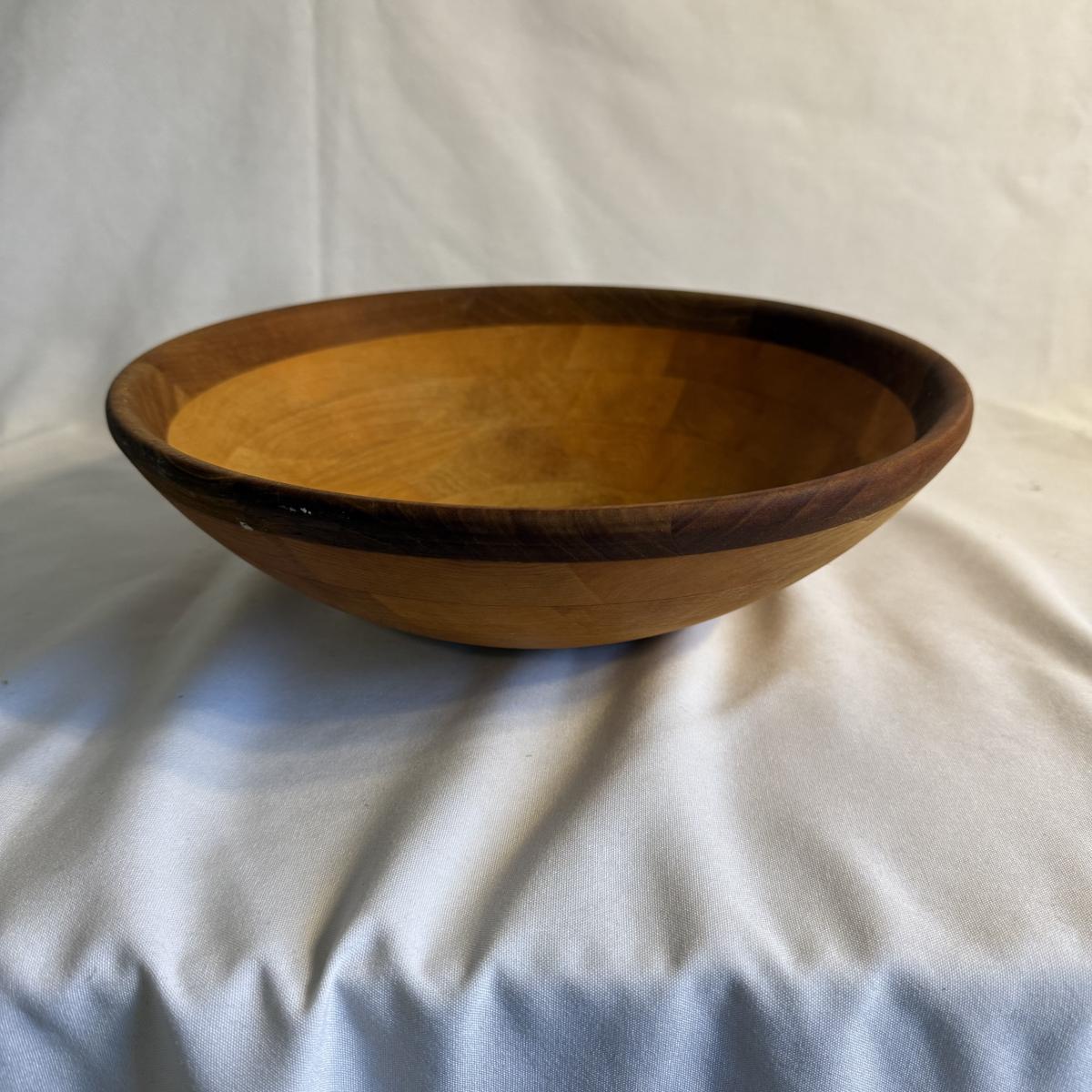 This lot contains a total of five items which are a collection of wooden bowls, cutting boards, and a lazy Susan. In this collection we have two wooden bowls, the first is a taller, multicolored bowl. This one has an 11”D and stands 3.5”H. It is made of light wood with a dark wooden rim. The next bowl is a dark brown with sharp square edges. It measures 9”D x 2.5”H. Moving on, we have two cutting boards. The first is a triangular shape and appears to be a serving board. It has a groove to put a bowl or spread, and does appear to be well loved. This measures 20” x 10” at its widest. The next cutting board is a unique shape as well and appears to be a serving tray of some sort. It has two divots on either side for hands. It also has six dark wooden rim circles and another divot on the surface, assuming to hold something. The one measures 18” x 12” 1.25”H. The last item in this lot is a wooden lazy Susan. The top sits on a wooden base and the top piece has a ridge to keep things from slipping off. This item measures 12”D x 2”H. None of these items have any discerning marks or stamps. Shipping available. Shipping can be costly. We suggest contacting our preferred local shipping provider, Postage Express, with dimensions and getting an estimate before bidding: (828) 255-9250 or shipping@postageexpressnc.com.