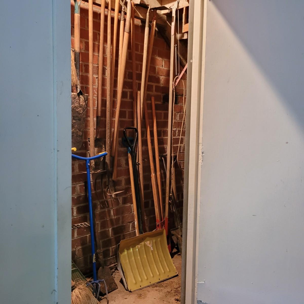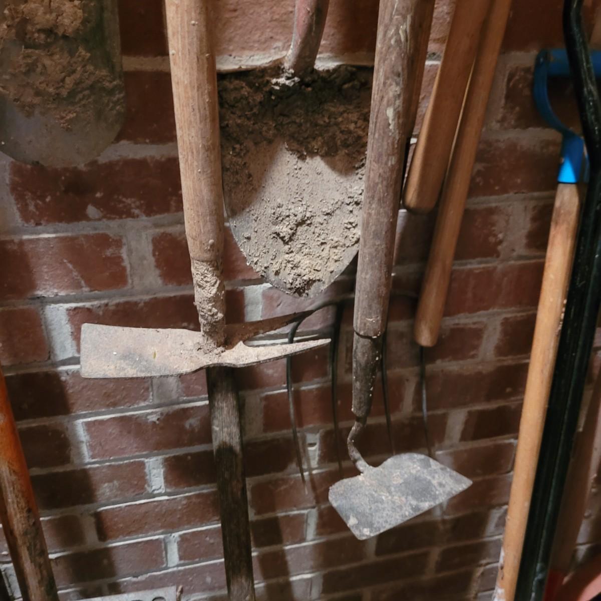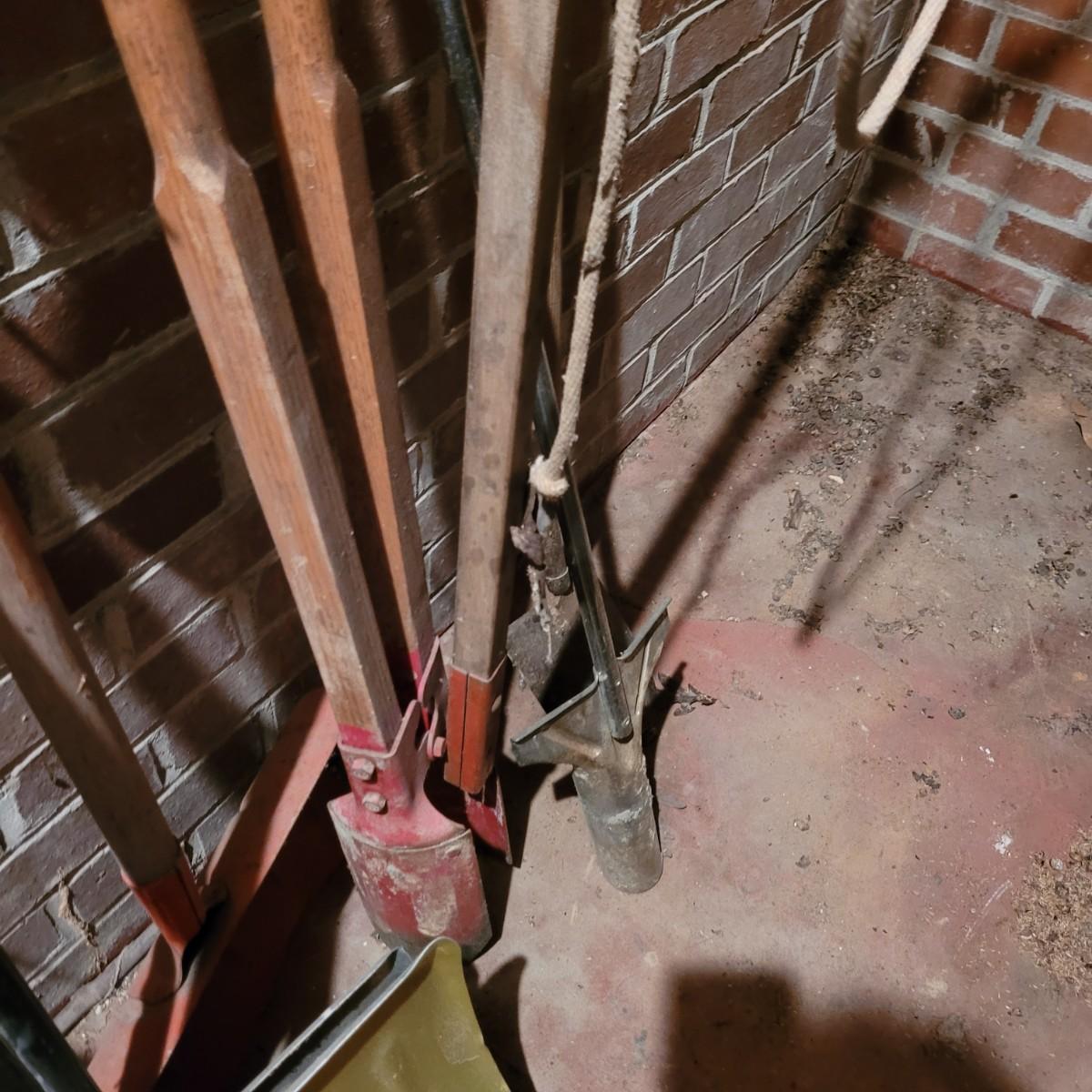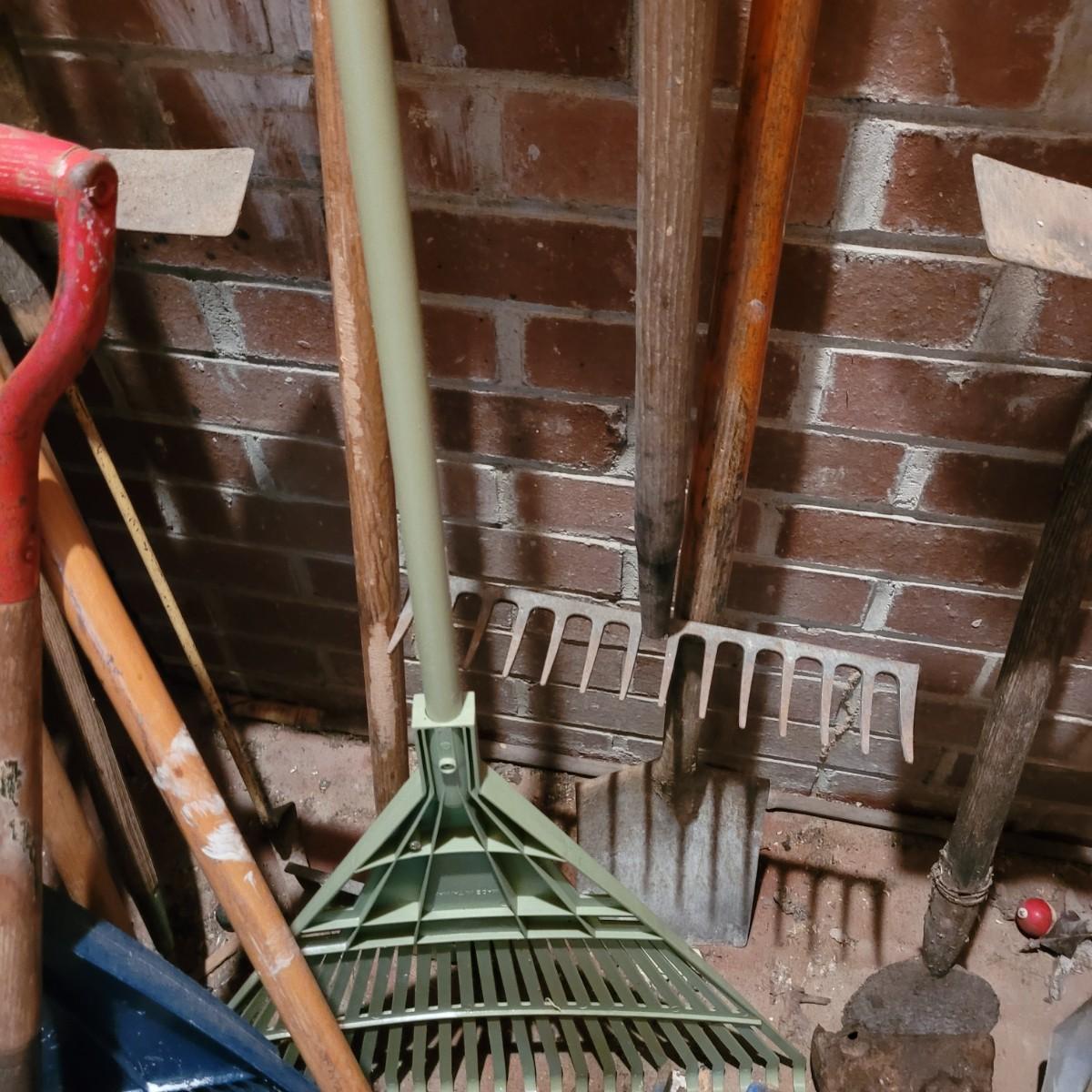 Set includes shovels (wide, narrow, spaded, flat, trench), plastic and metal rakes, broom, hoe, forks, picks, tree trimmer, post hole digger, & more. Local pick up only.