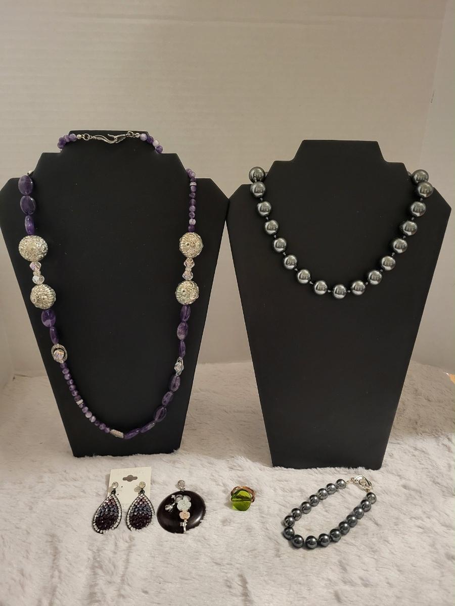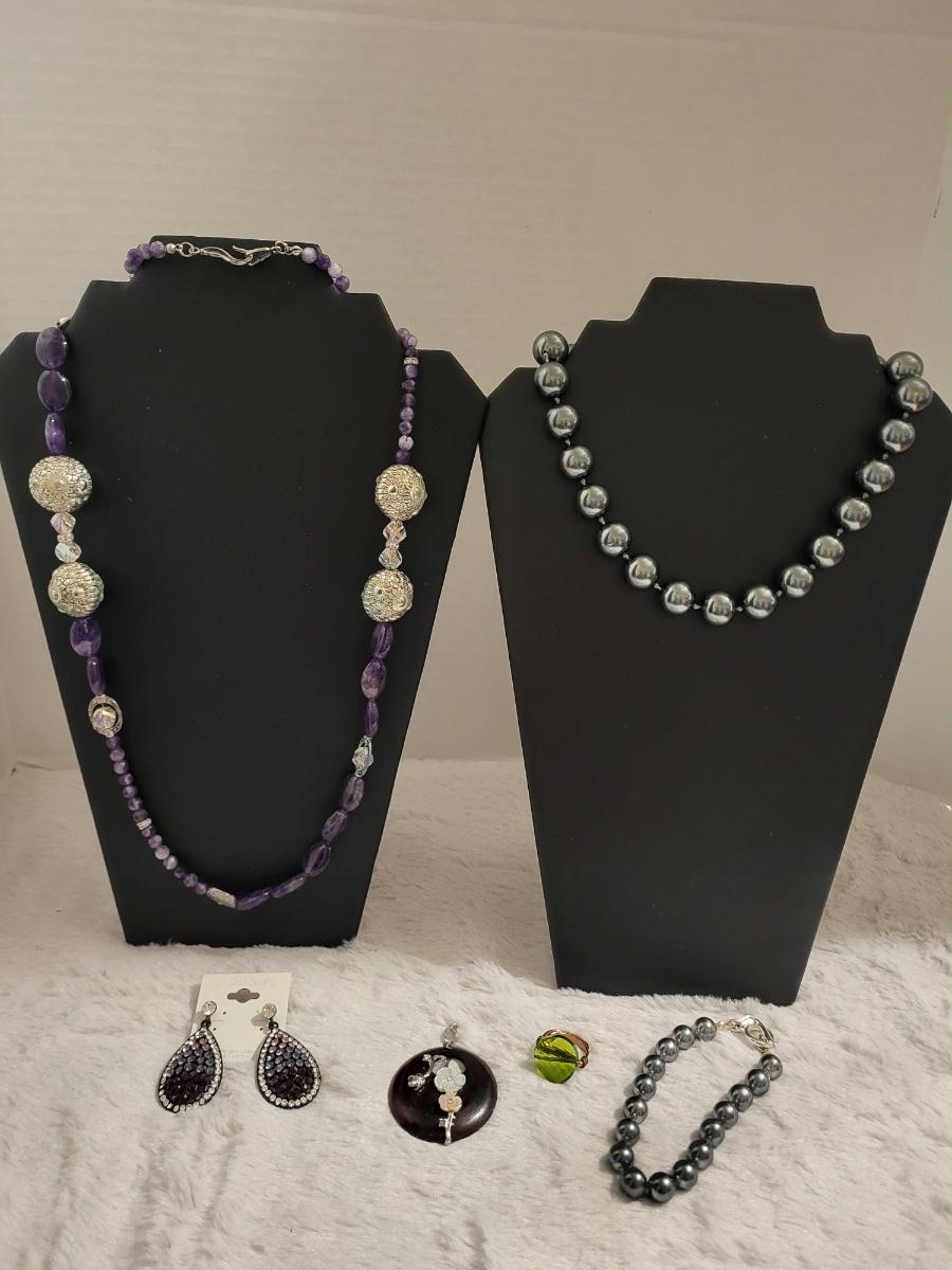 Purple stone necklace With 925 clasp, Carol Lee black necklace, JNY bracelet, misc.