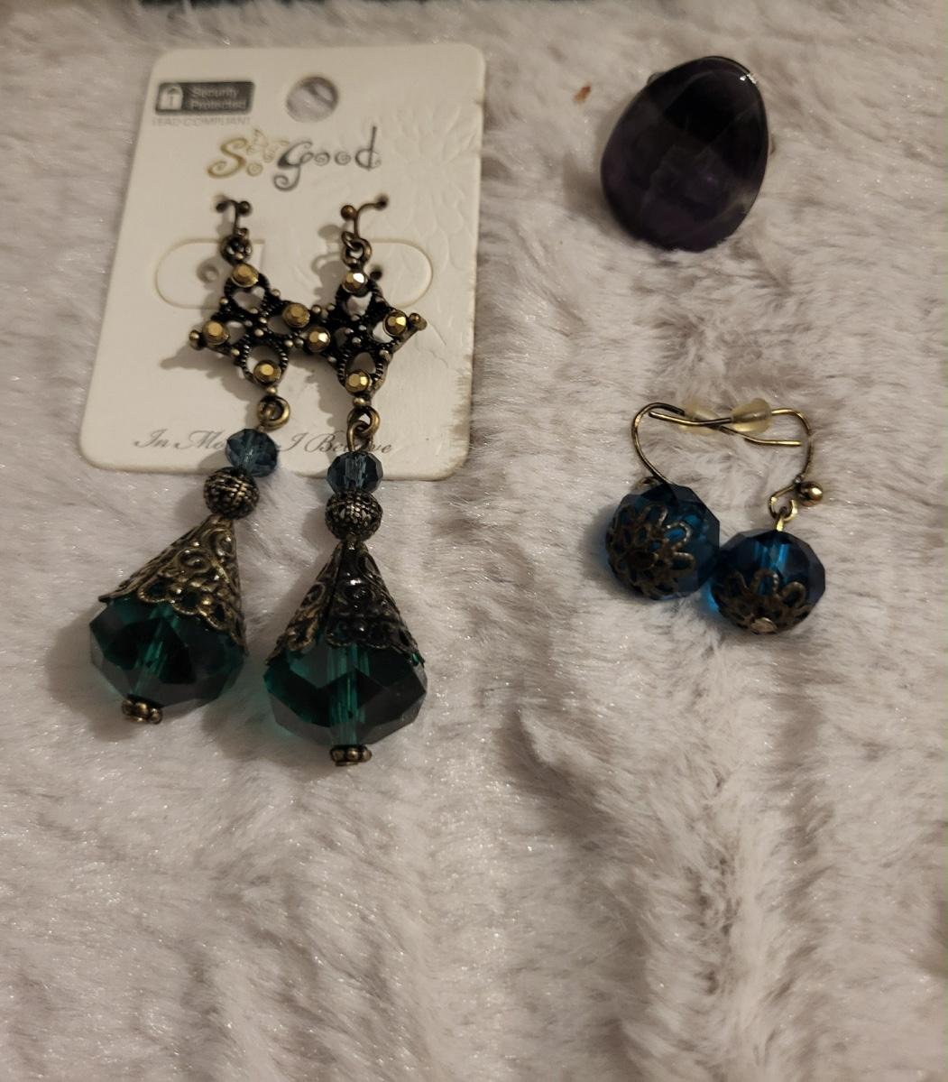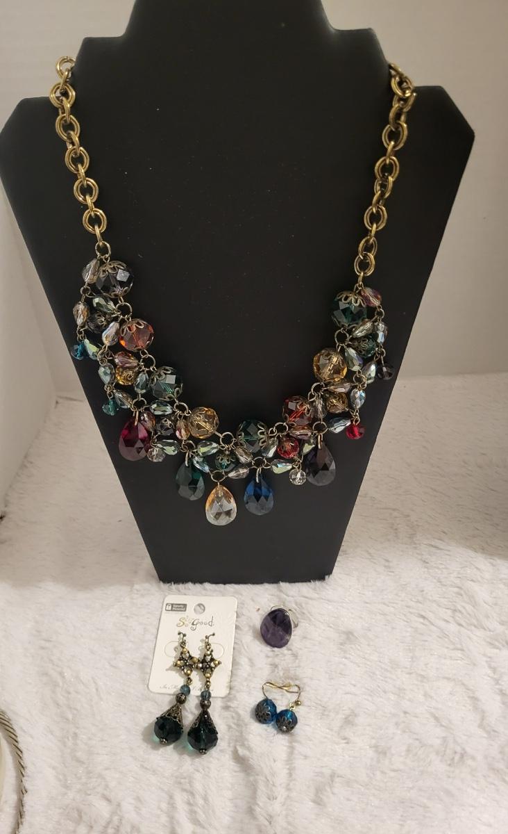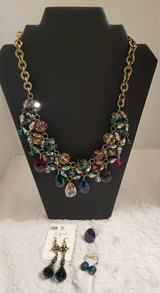 Beautiful glass bead, necklace, So Good earrings, Adjustable ring.