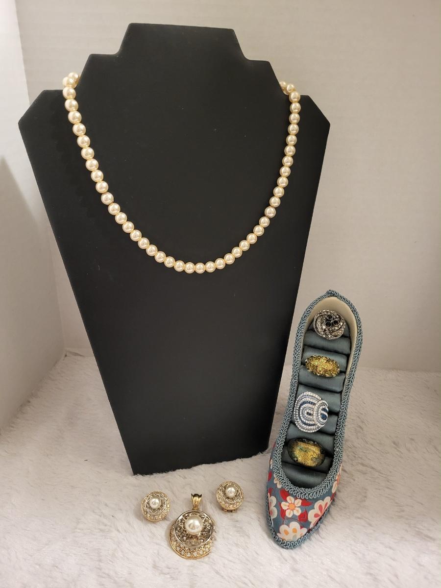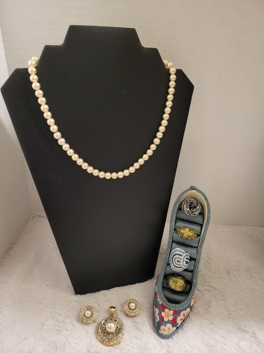 Rings size 7 to 7.5, pendant set, pearl necklace