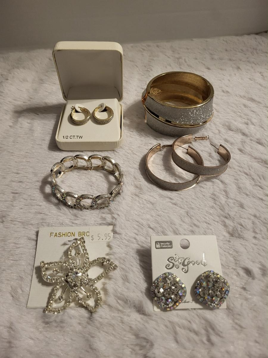 Rhinestone and silver tone jewelry