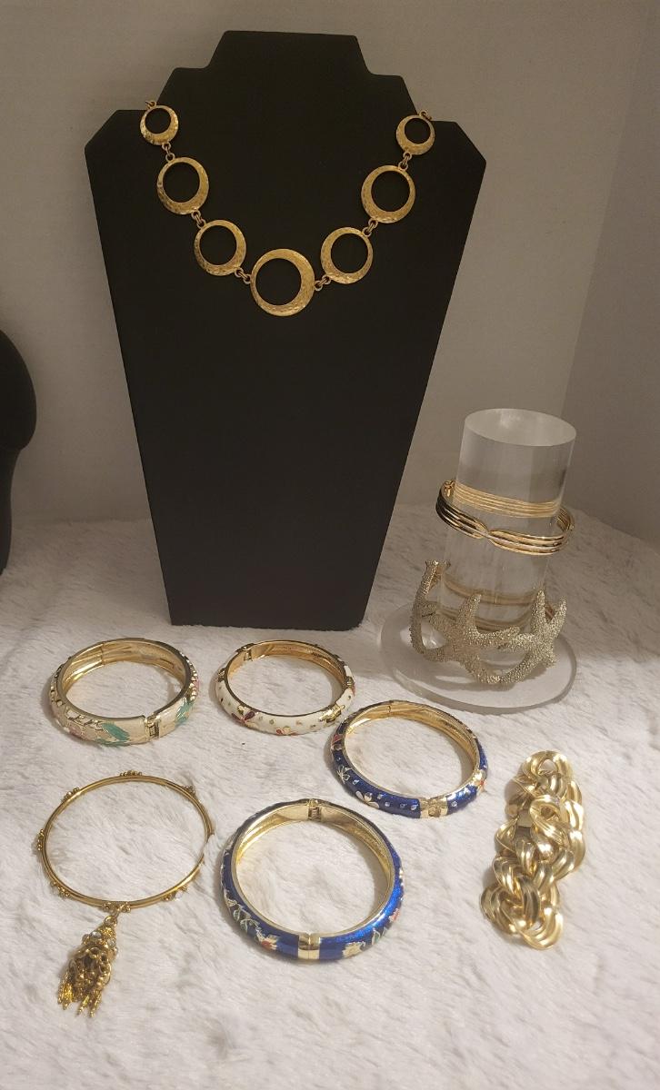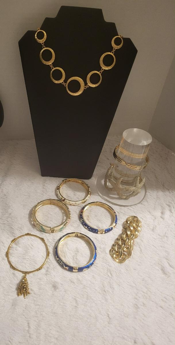 Bracelet Lot, 1 necklace, gold tone