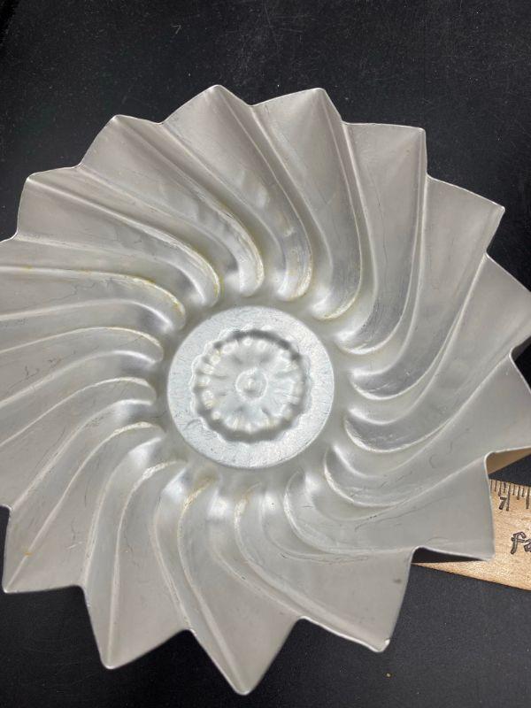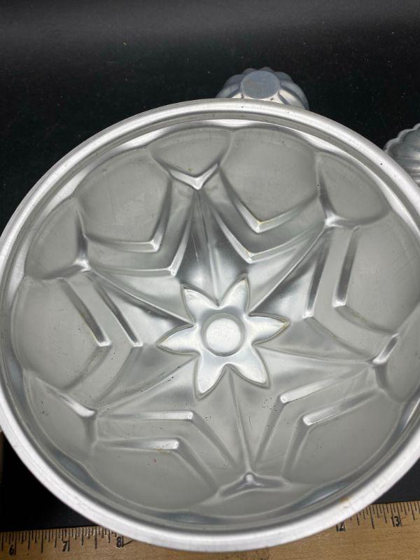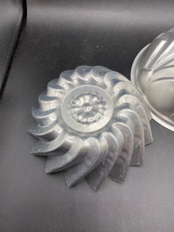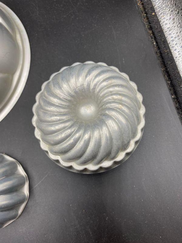Various vintage aluminum cake and jello molds. Previously owned but in good condition. The largest diameter is about 7".