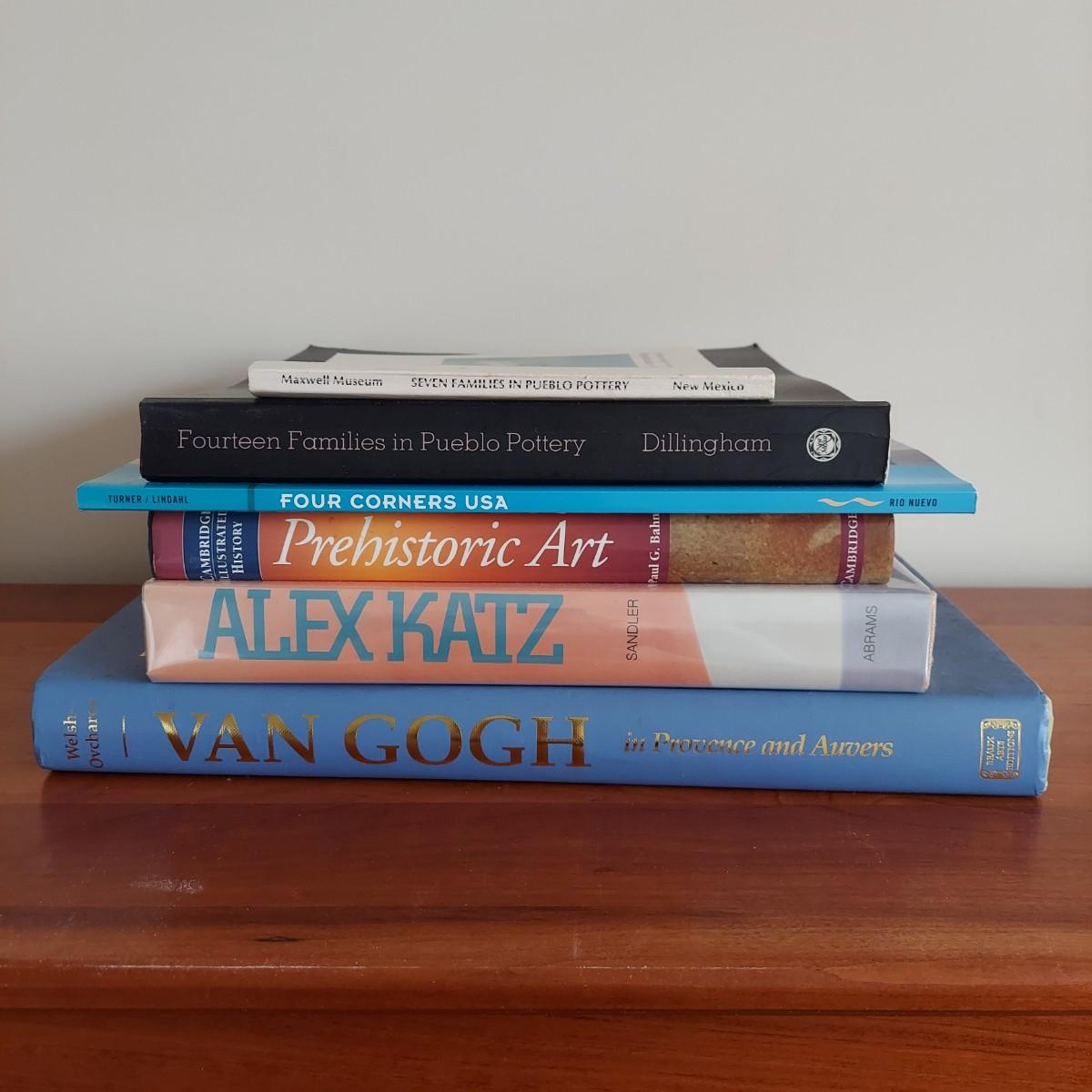 Six various art related coffee table books including Van Gogh in Provence and Auvers, Alex Katz, Four Corners USA, Fourteen Families in Pueblo Pottery, Prehistoric Art and Seven Families in Pueblo Pottery. Shipping available.