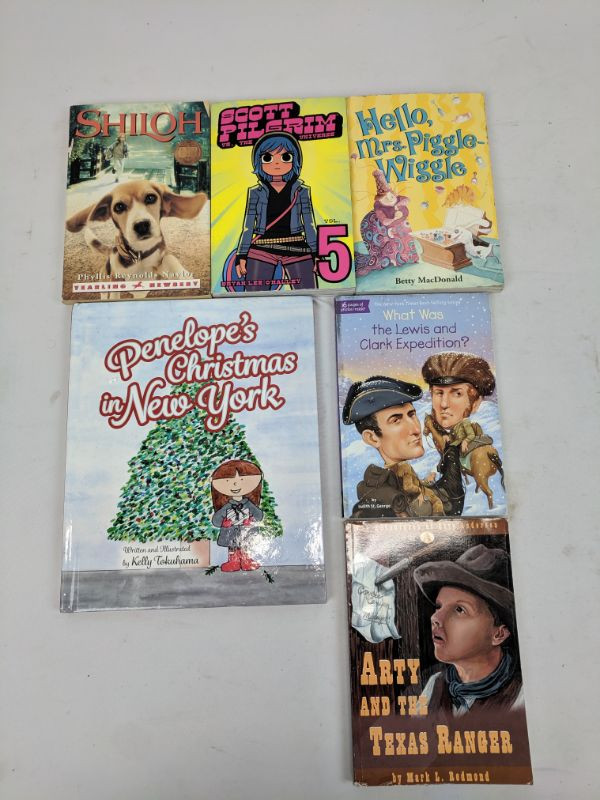 Misc Books: Penelope's Christmas in New York, Scott Pilgrim, Shiloh, Hello Mrs. Piggle-Wiggle, What Was the Lewis and Clark Expedition, Arty and the Texas Ranger