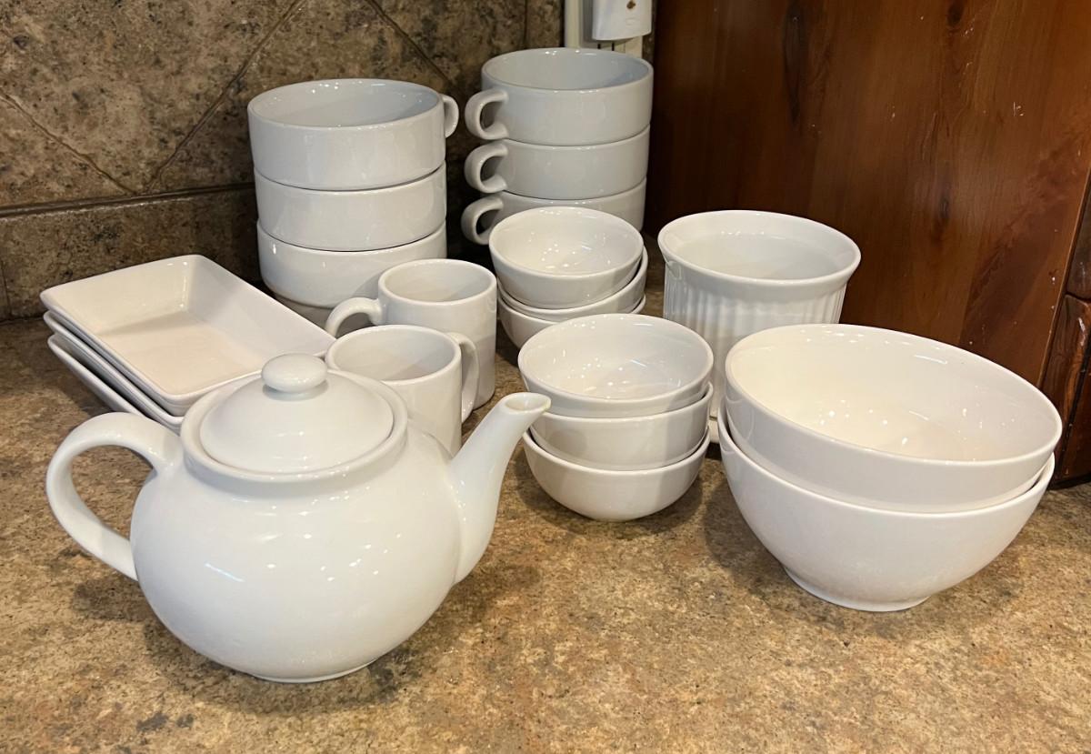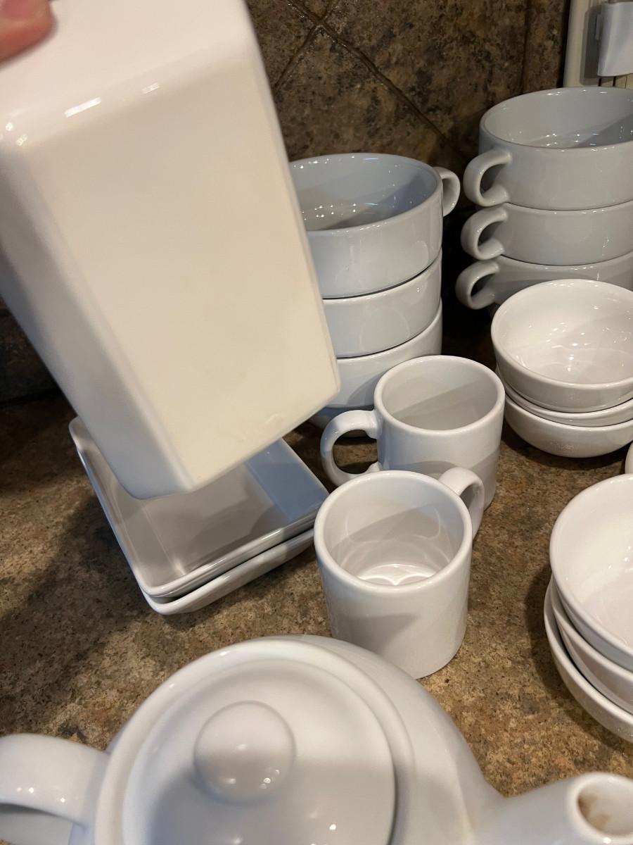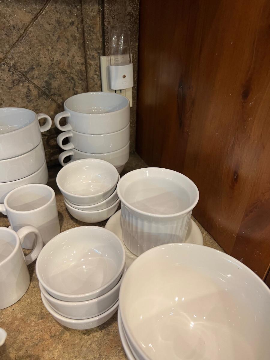 Various Brands of White Ceramic Kitchen Dishes