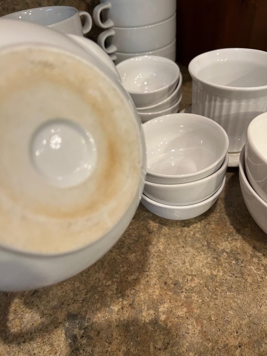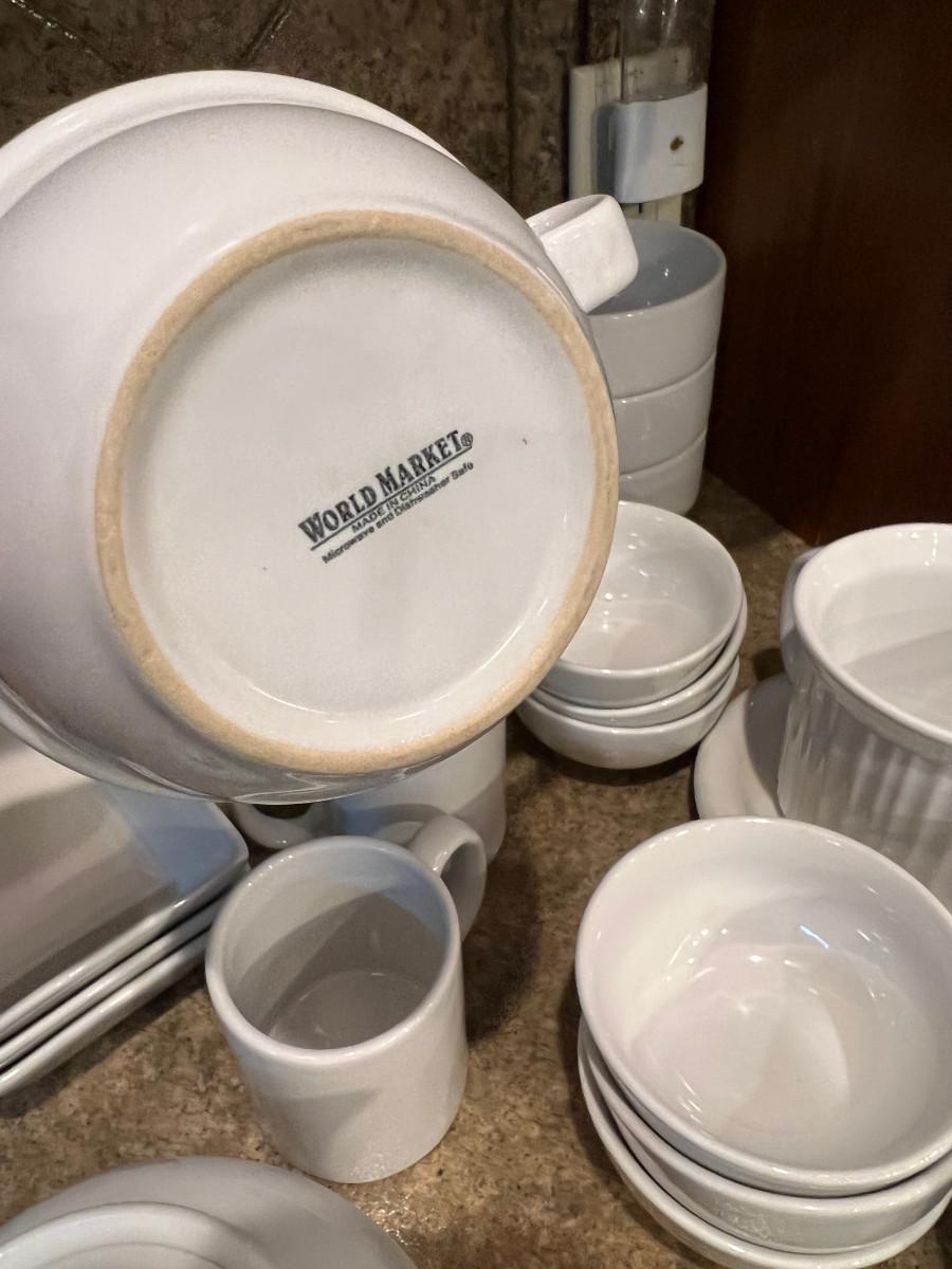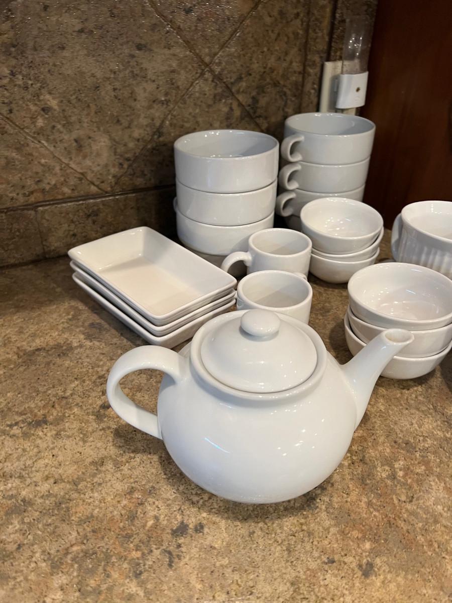 Various Brands of White Ceramic Kitchen Dishes