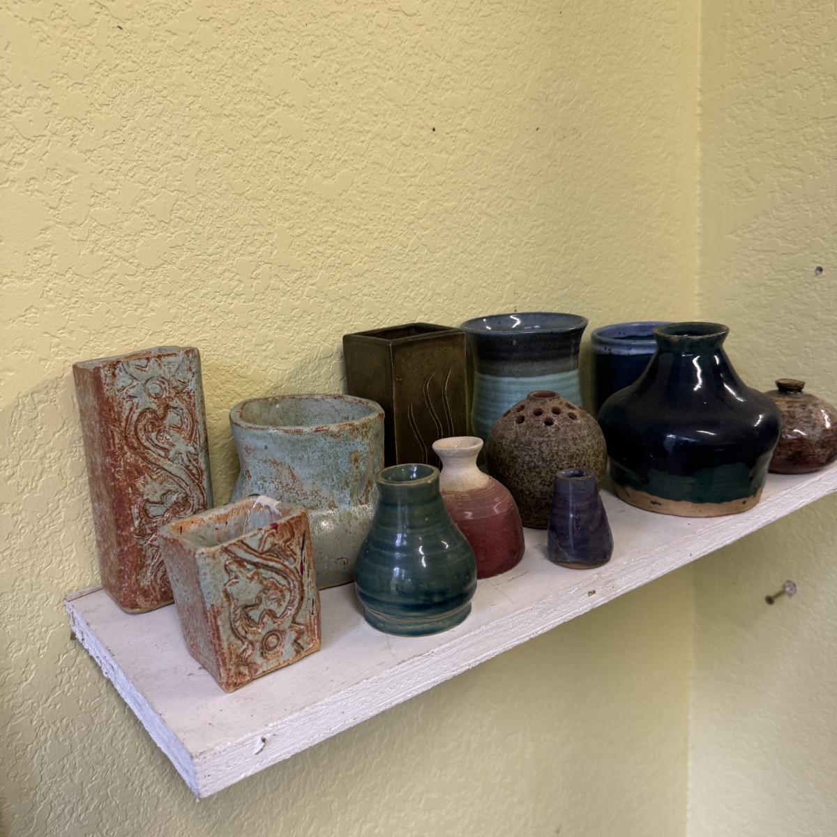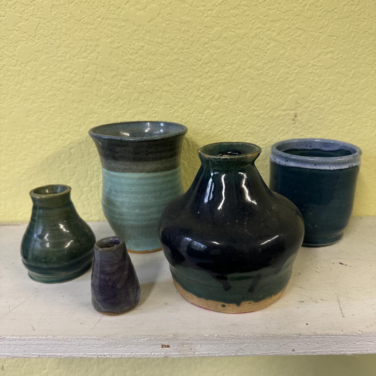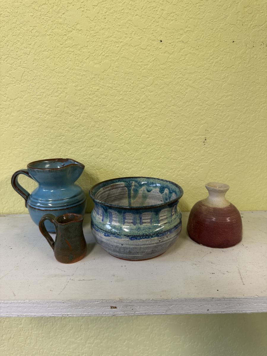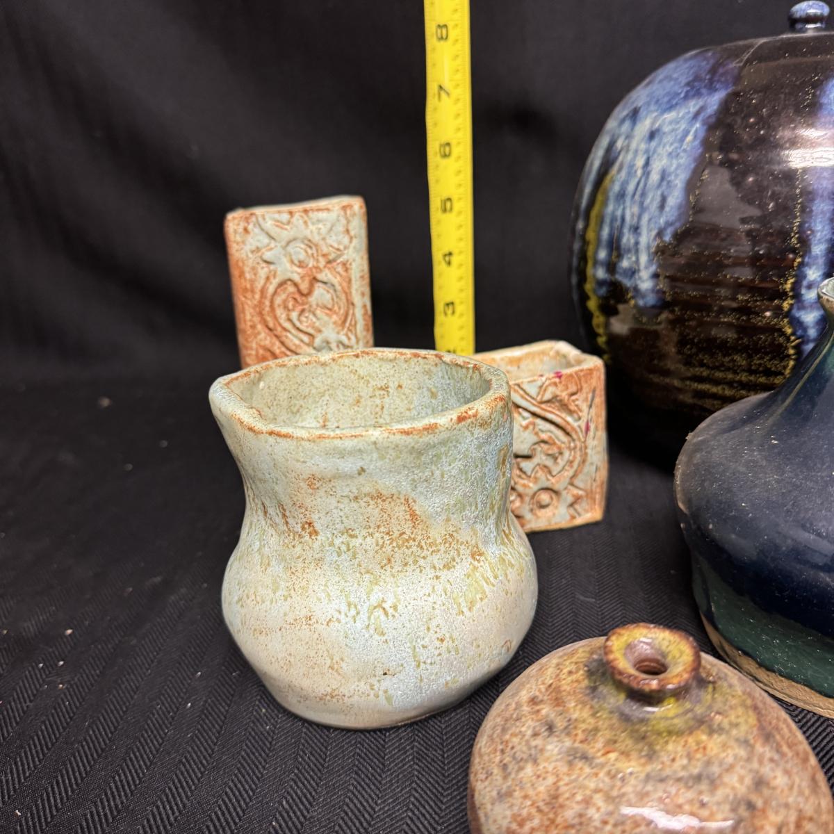 Many ceramic pieces in all shapes and sizes. Largest being a lidded pot. Some pieces are signed. See photos. Sixteen pieces in all. Shipping available.