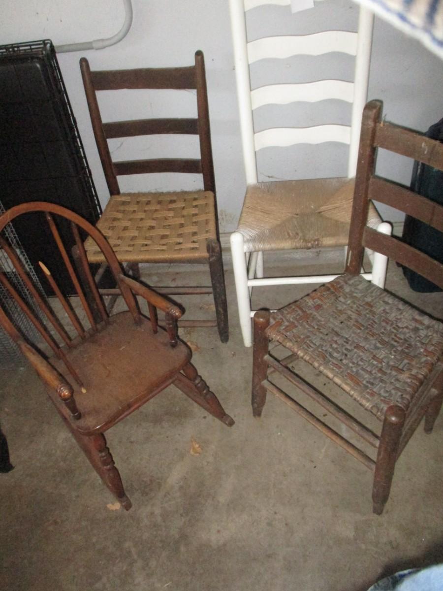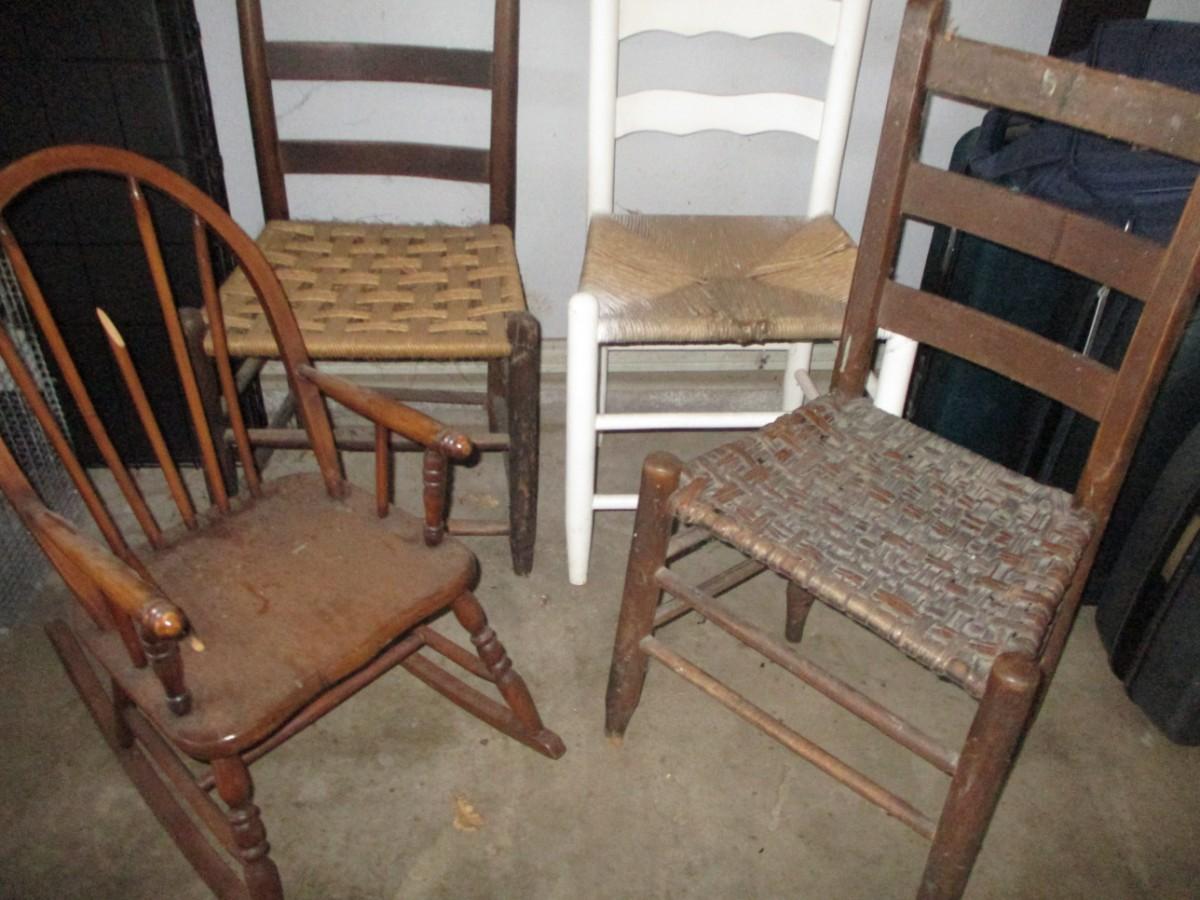 3 Vintage ladderback Chairs/Vintage Child's rocker
