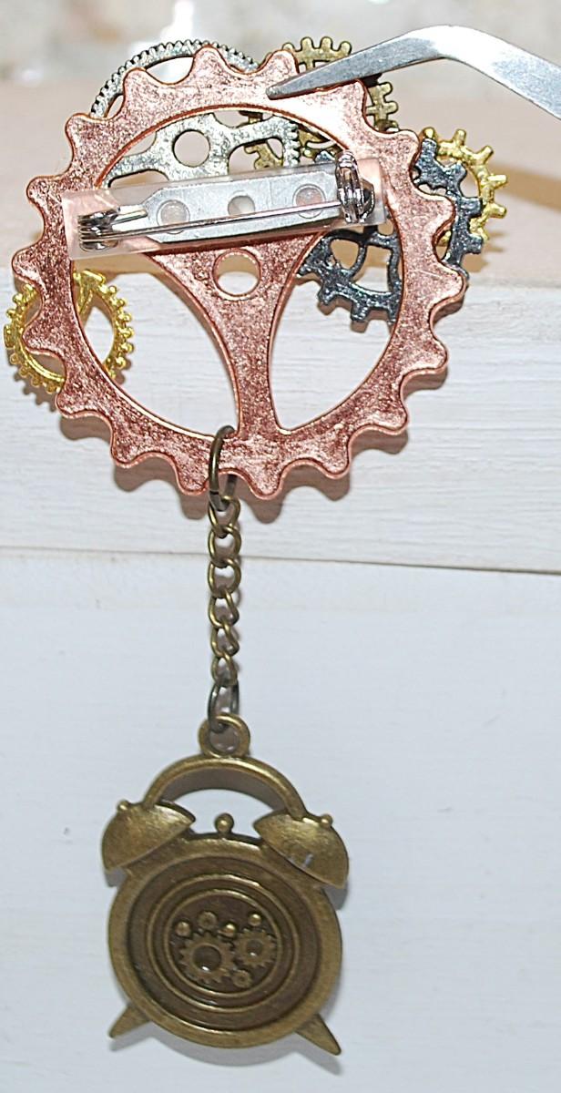 Various Colored GEARS & "CLOCK' BROOCH (4" x 1½") with Rose & Gold Tone Settings