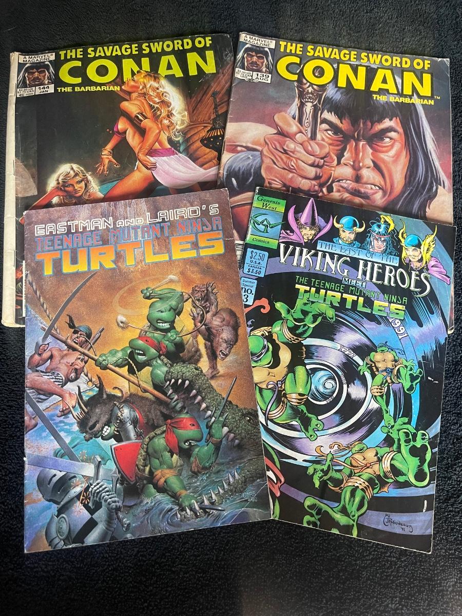 4 various vintage comics teenage mutant ninja turtles (2) and Conan (2) super cool!!