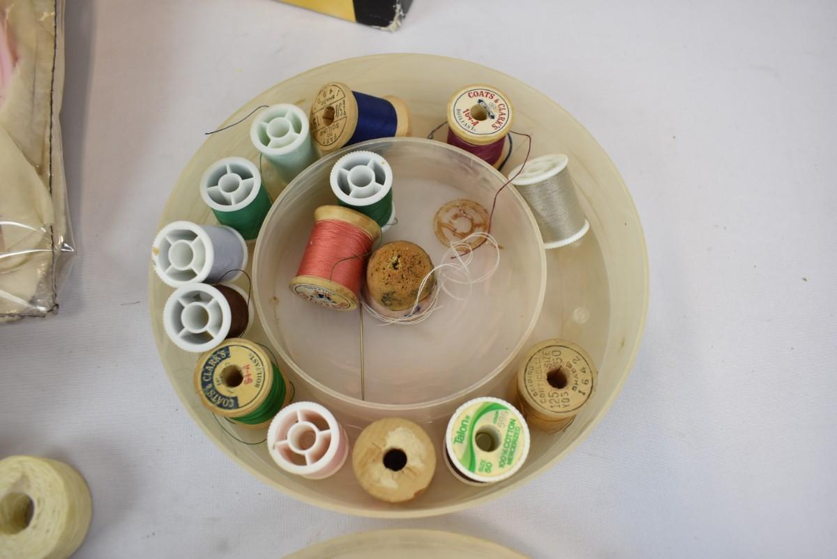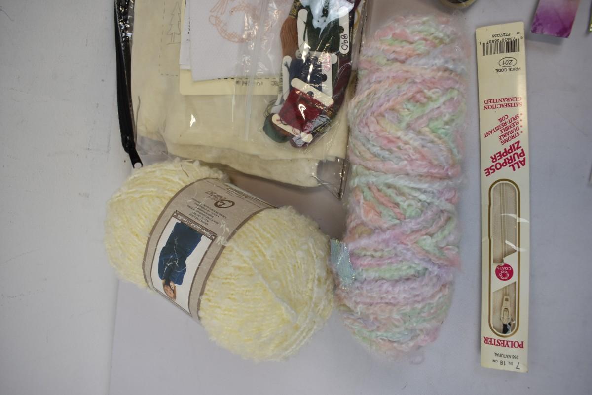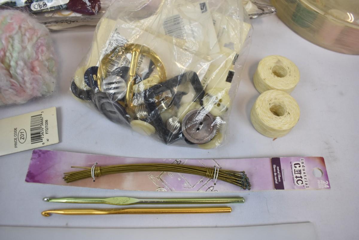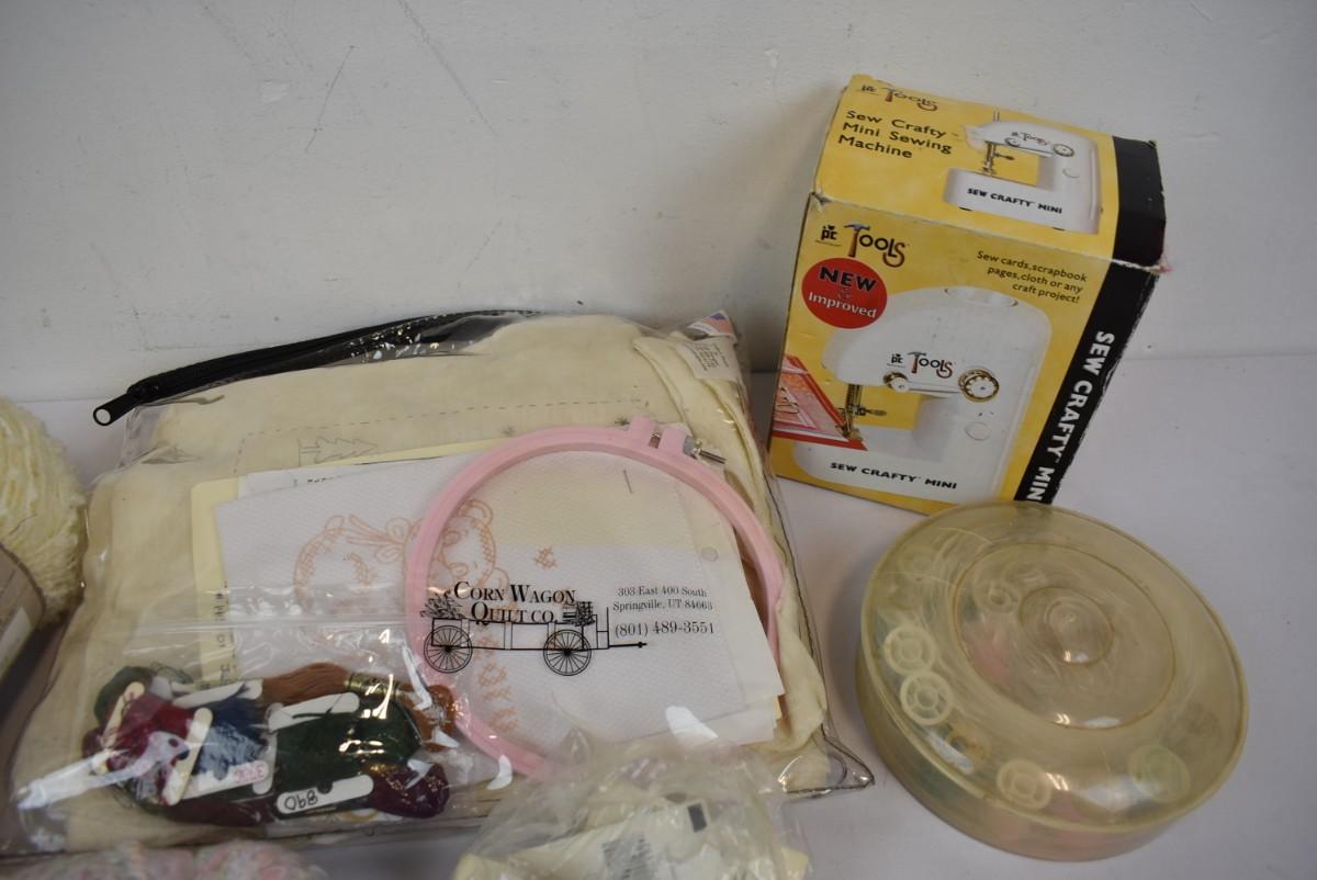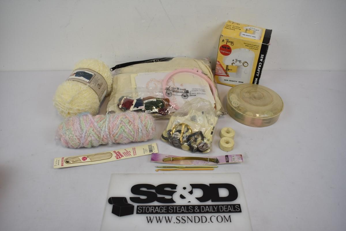 Various Crafts Lot: Mini Sewing Machine, Yarn, Stitching, Thread, Buttons, etc