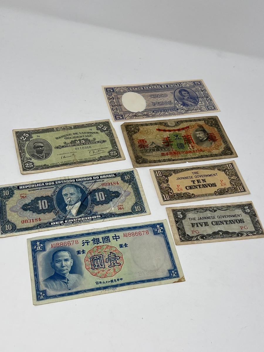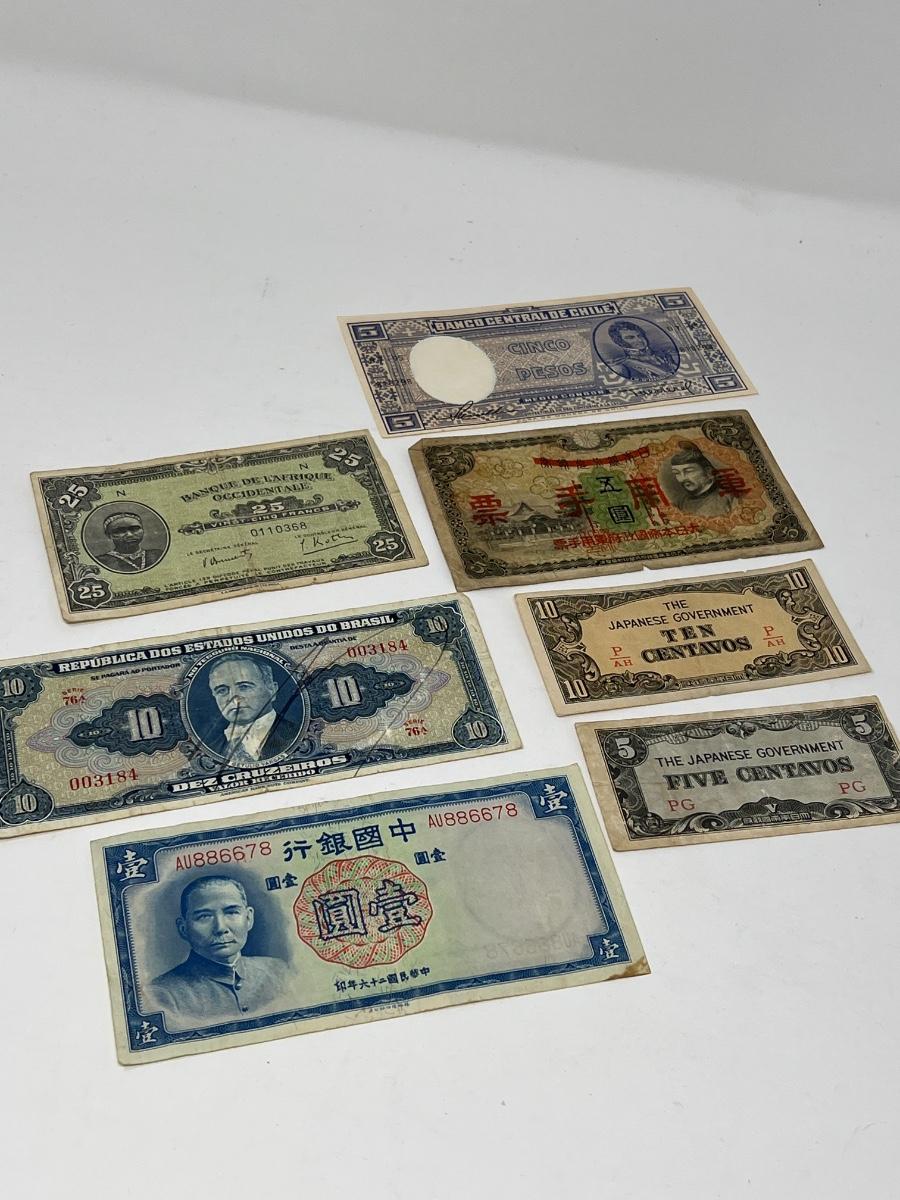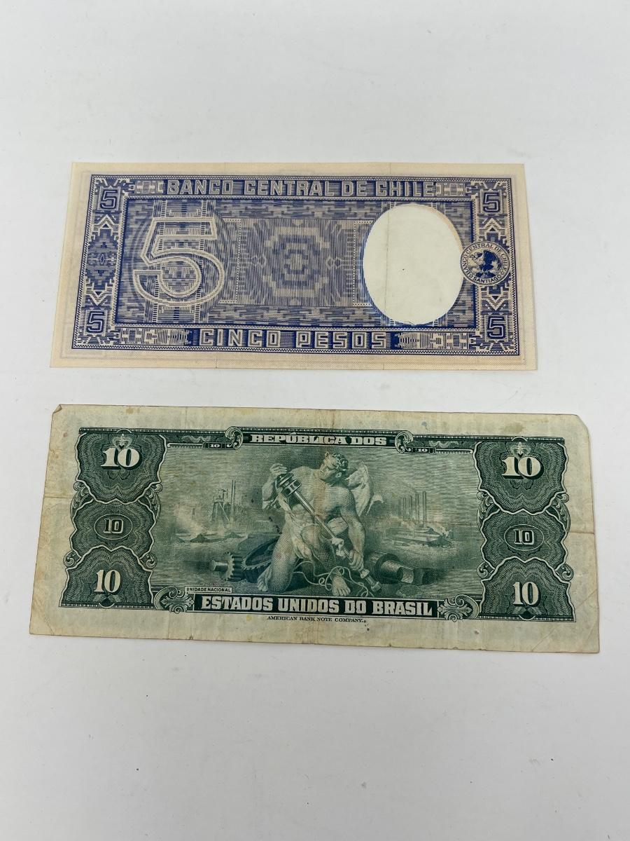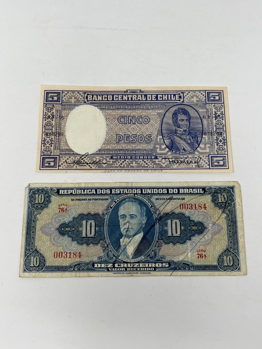 Old currencies from various countries including Chile, Brasil, China, Japan and others.
