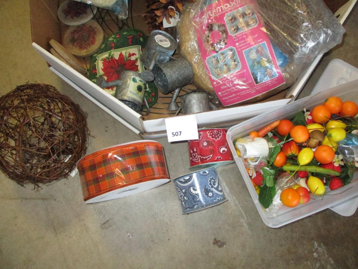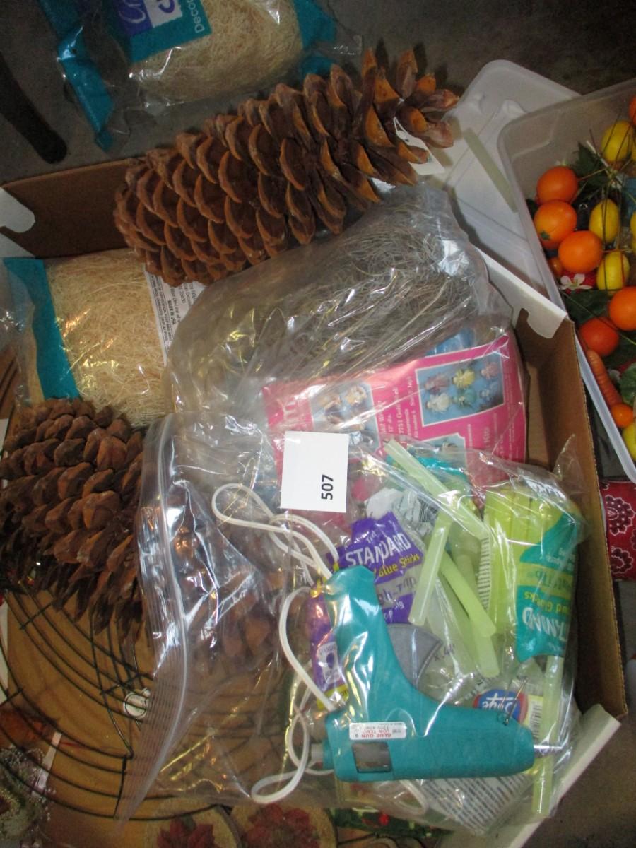 Pine cones, ribbons, Straw bundles, glue gun w/glue, metal wreath frames, mini water cans, coasters, plastic fruit stems