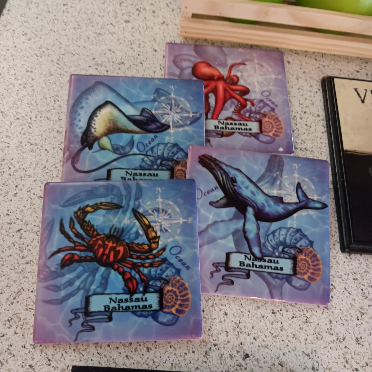 VARIOUS DECORATIVE WALL HANGINGS, APPLE CANDLES, COASTERS AND FAUX FLOWER