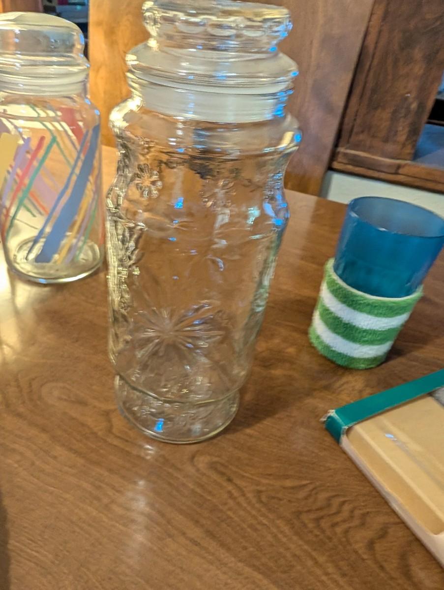 Large basket with some smaller baskets, party coasters that fit on your cup, and some misc jars.