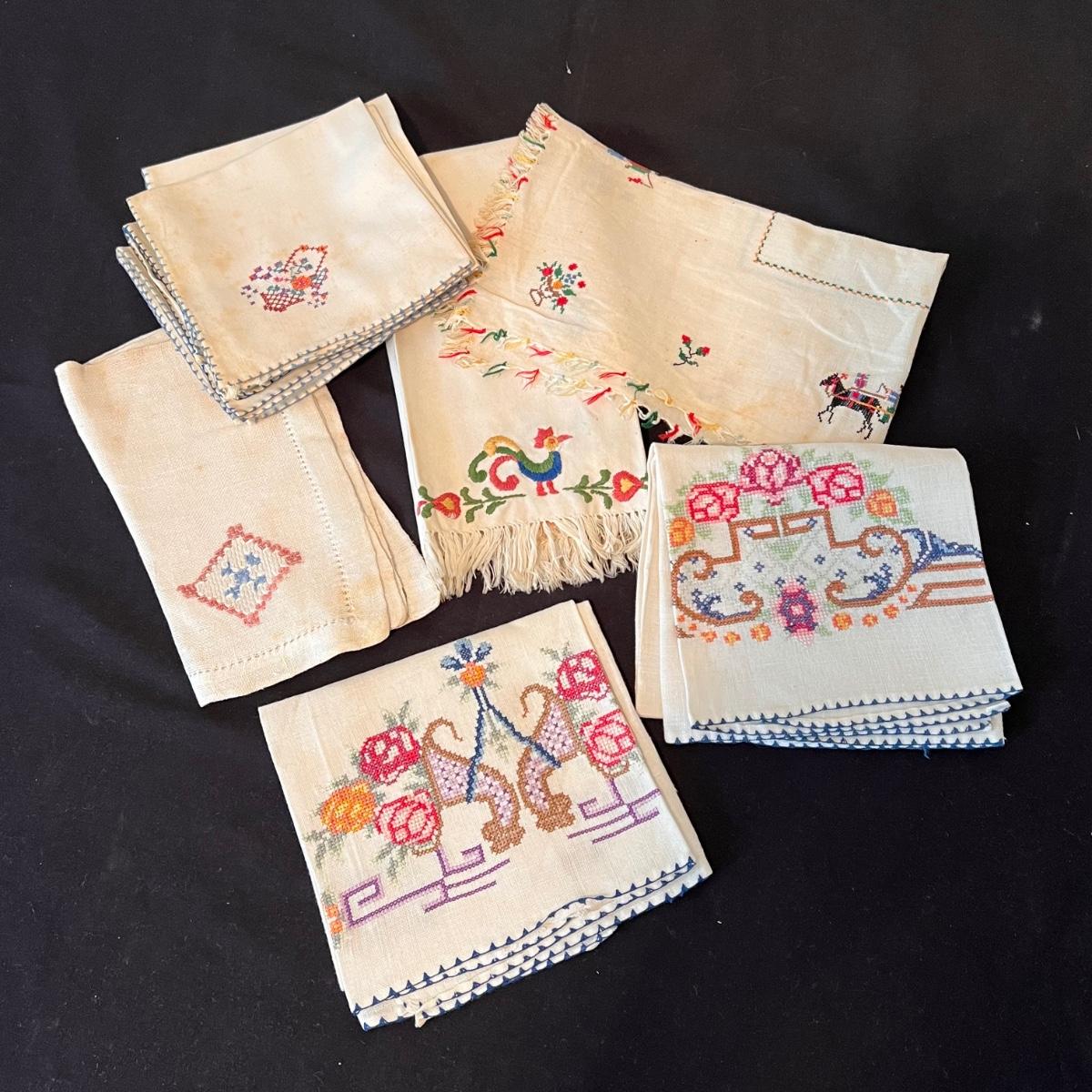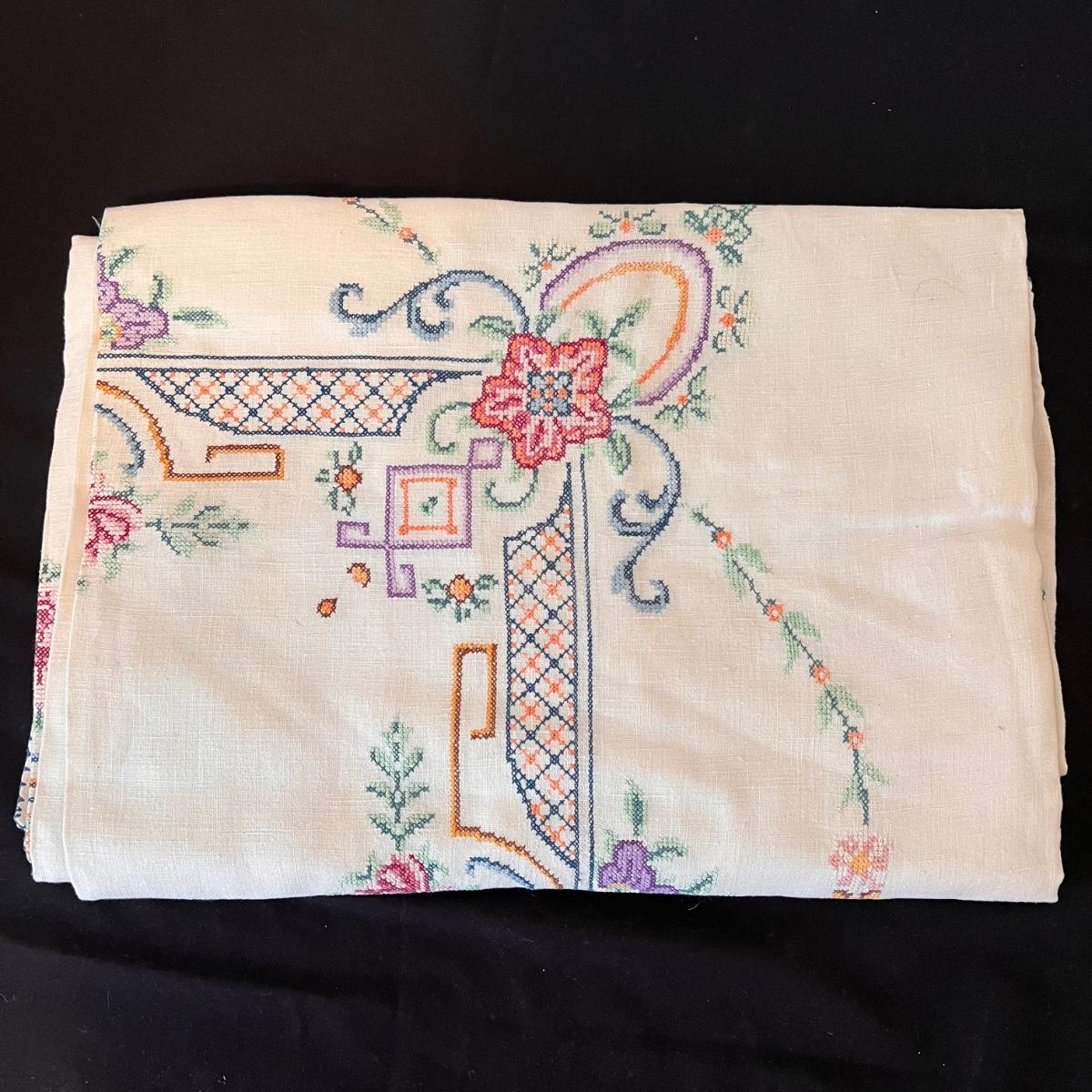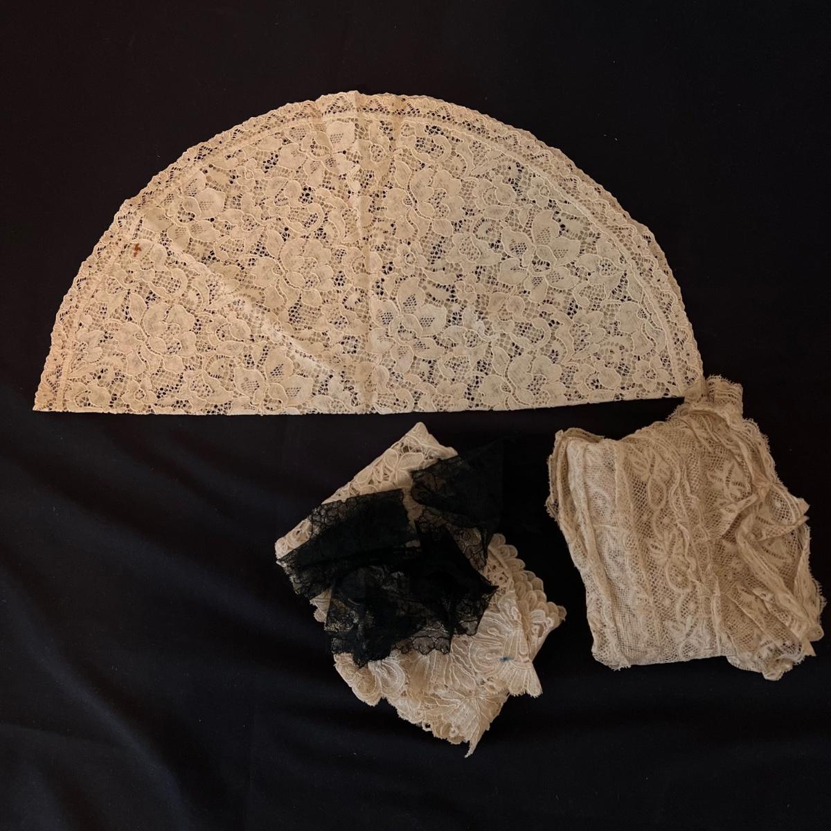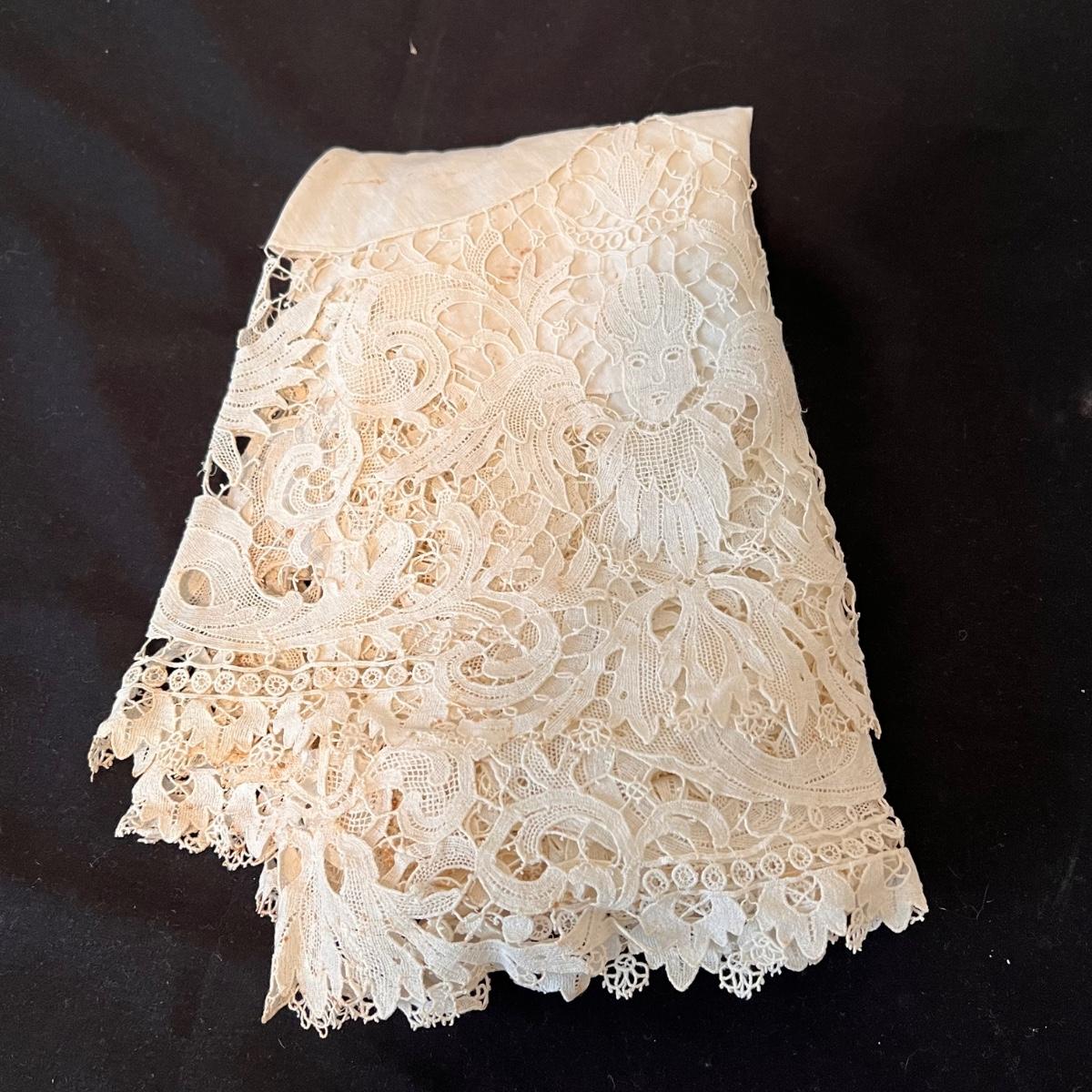 Lot includes several pieces of linens and lace. All appear to not have any markings with brand names or product details. The largest pieces measure 76” x 80”H. Shipping available.
