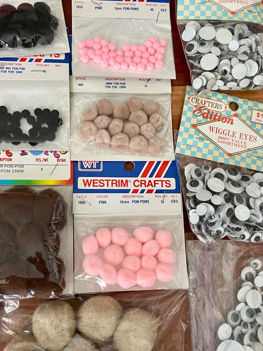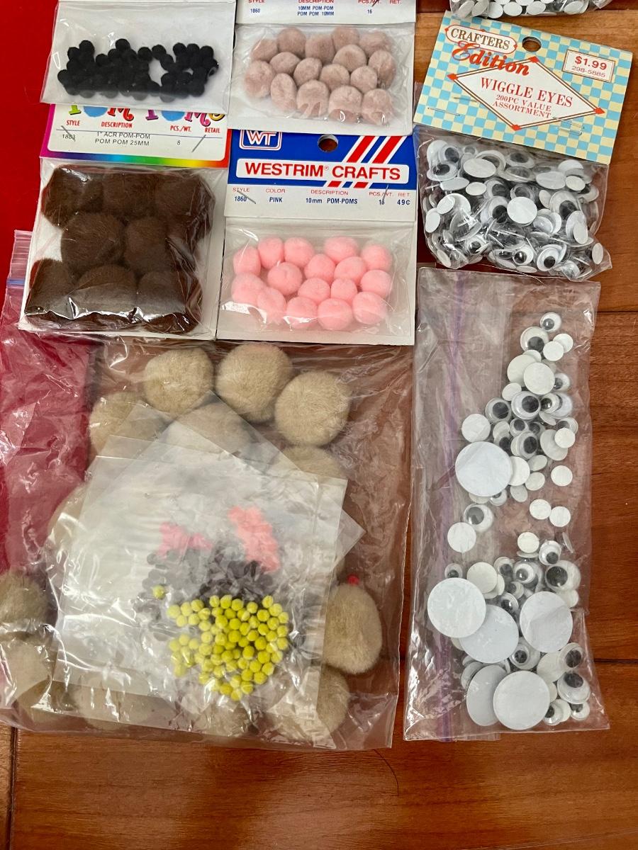 Various Mixed Lot of Crafting Supplies Pom-Poms Googly Eyes Pipe Cleaner