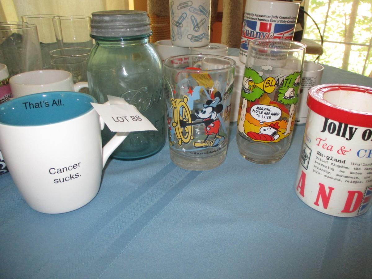 1 Ball Glass jar w/lid. Juice and Water Glasses