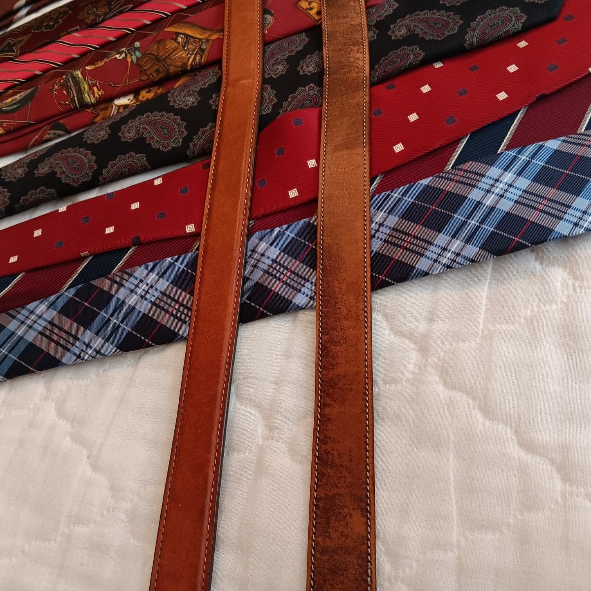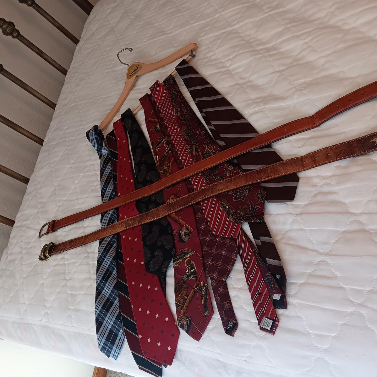VARIOUS NECKTIES AND 2 LEATHER BELTS SIZE 36