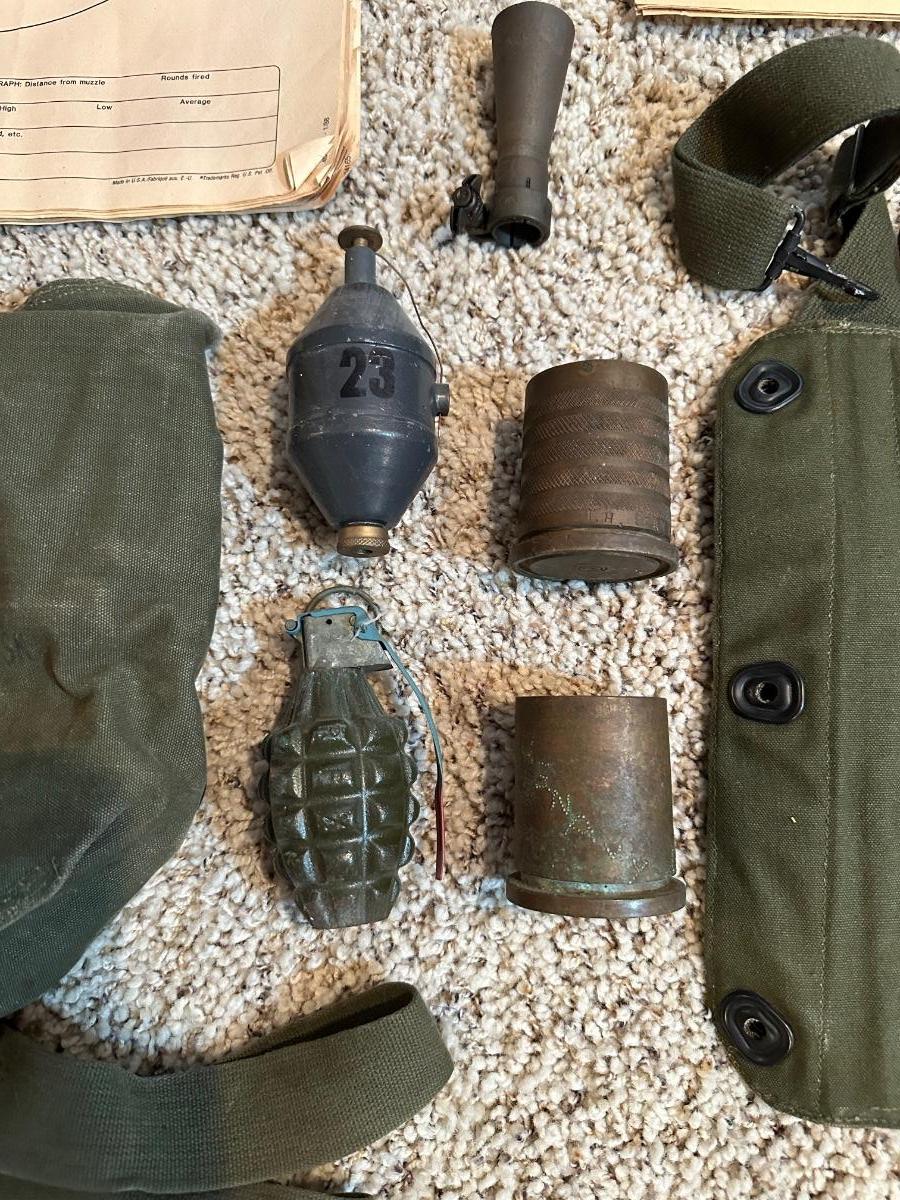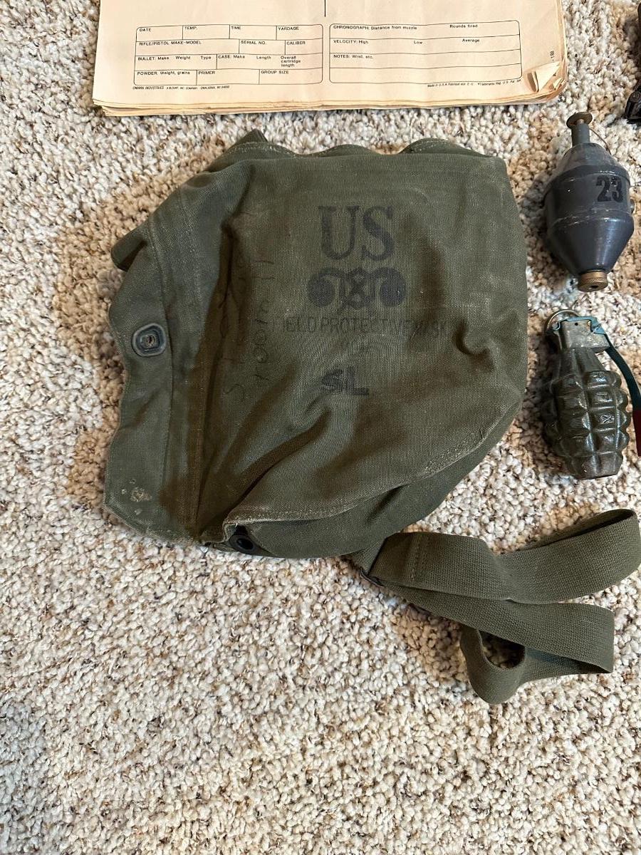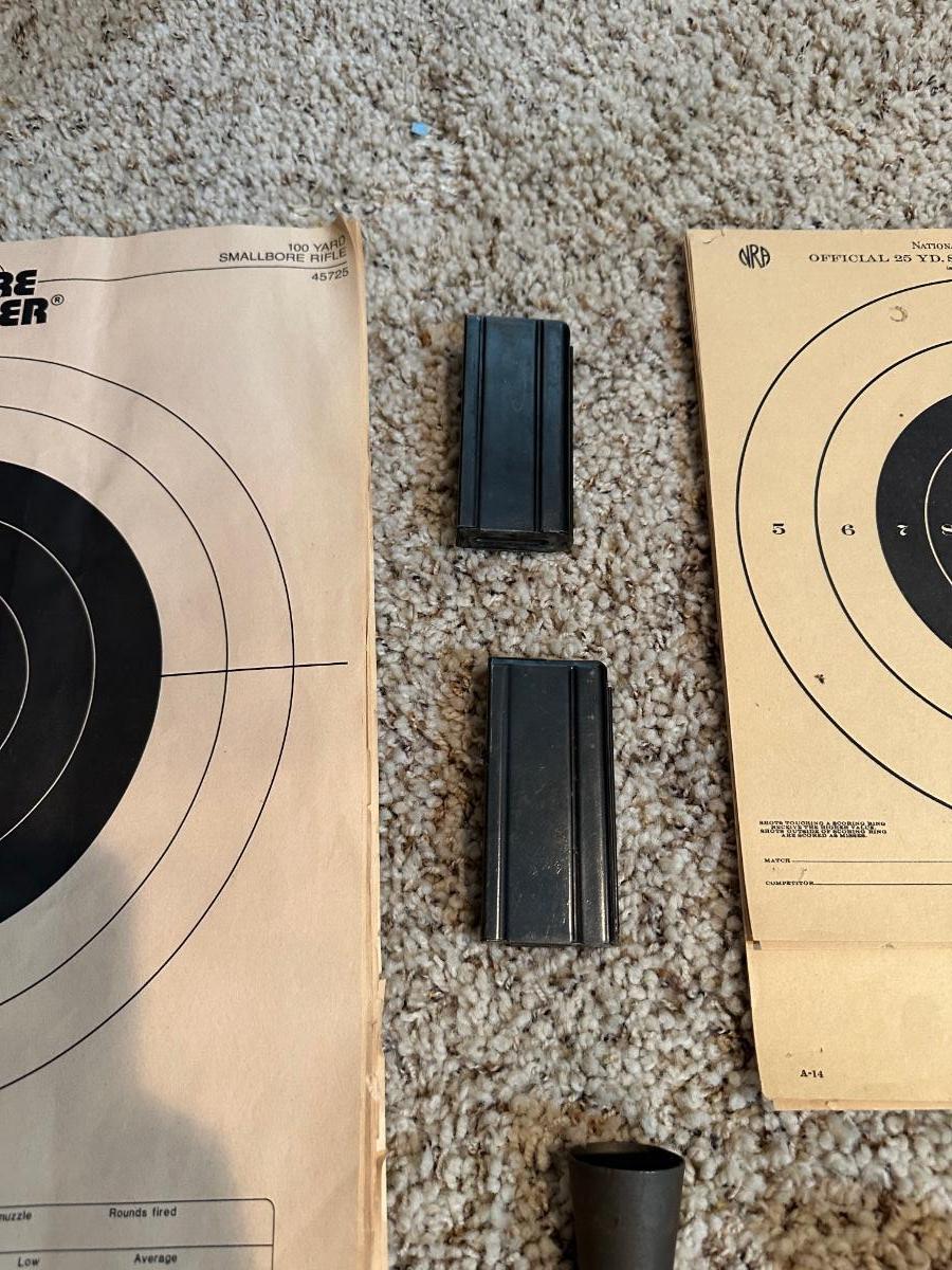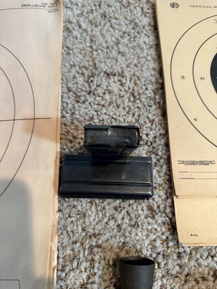 VARIOUS PAPER TARGETS, CARBINE MAGAZINES, SPENT SHELLS, MILITARY CANVAS BAGS AND MORE