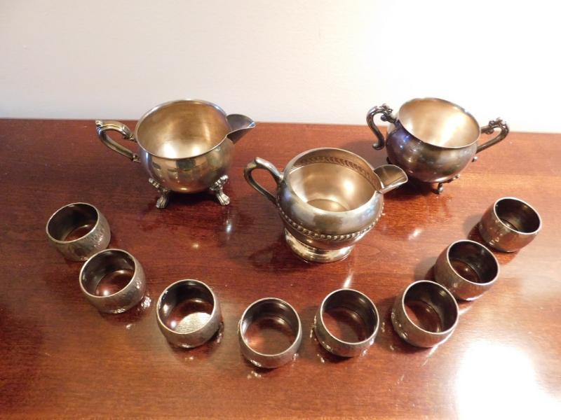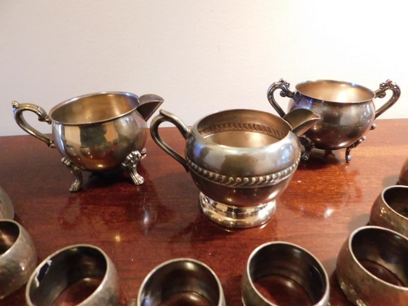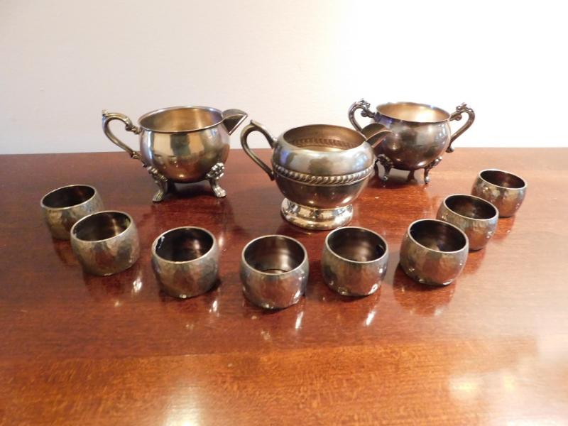 Various Pieces of Silver Over Copper or Brass including napkin rings, creamer or sugar bowls