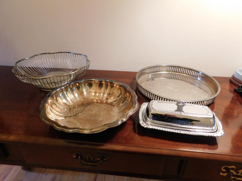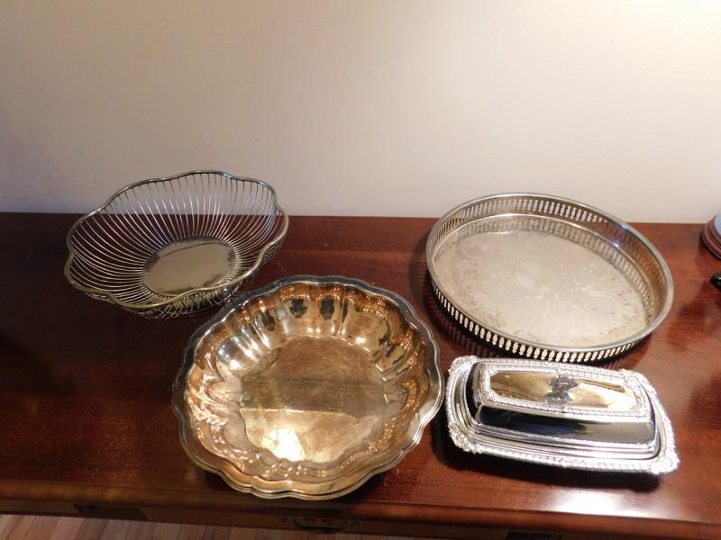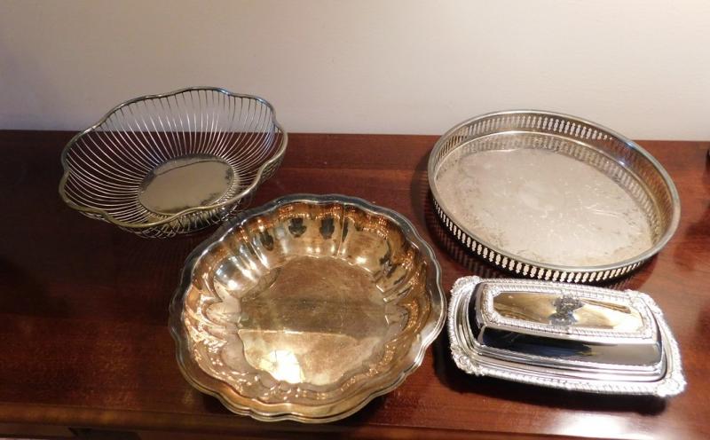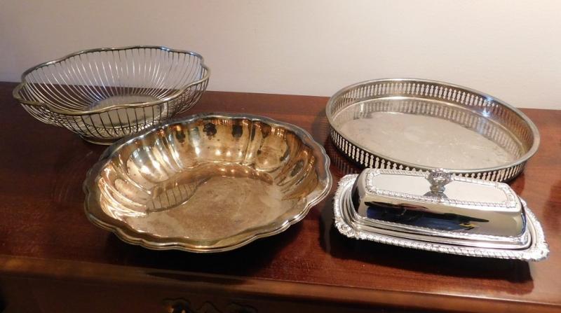 Various Pieces of Silver Plate or Aluminum Serving Trays