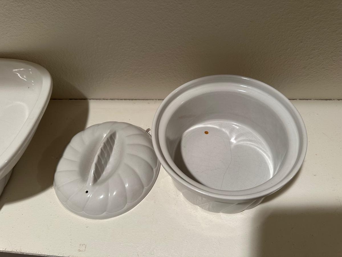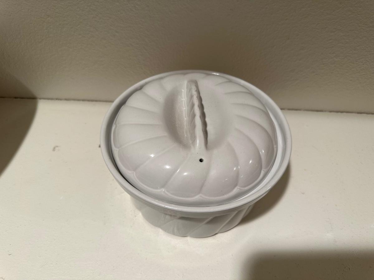 THE LIDDED DISH HAS A HAIRLINE CRACK