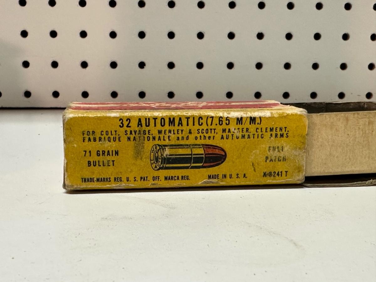 BOX OF 25 AUTO FULL METAL JACKETS, ,PARTIAL BOX OF 32 AUTO, OTHER VARIOUS PISTOL AMMUNITION