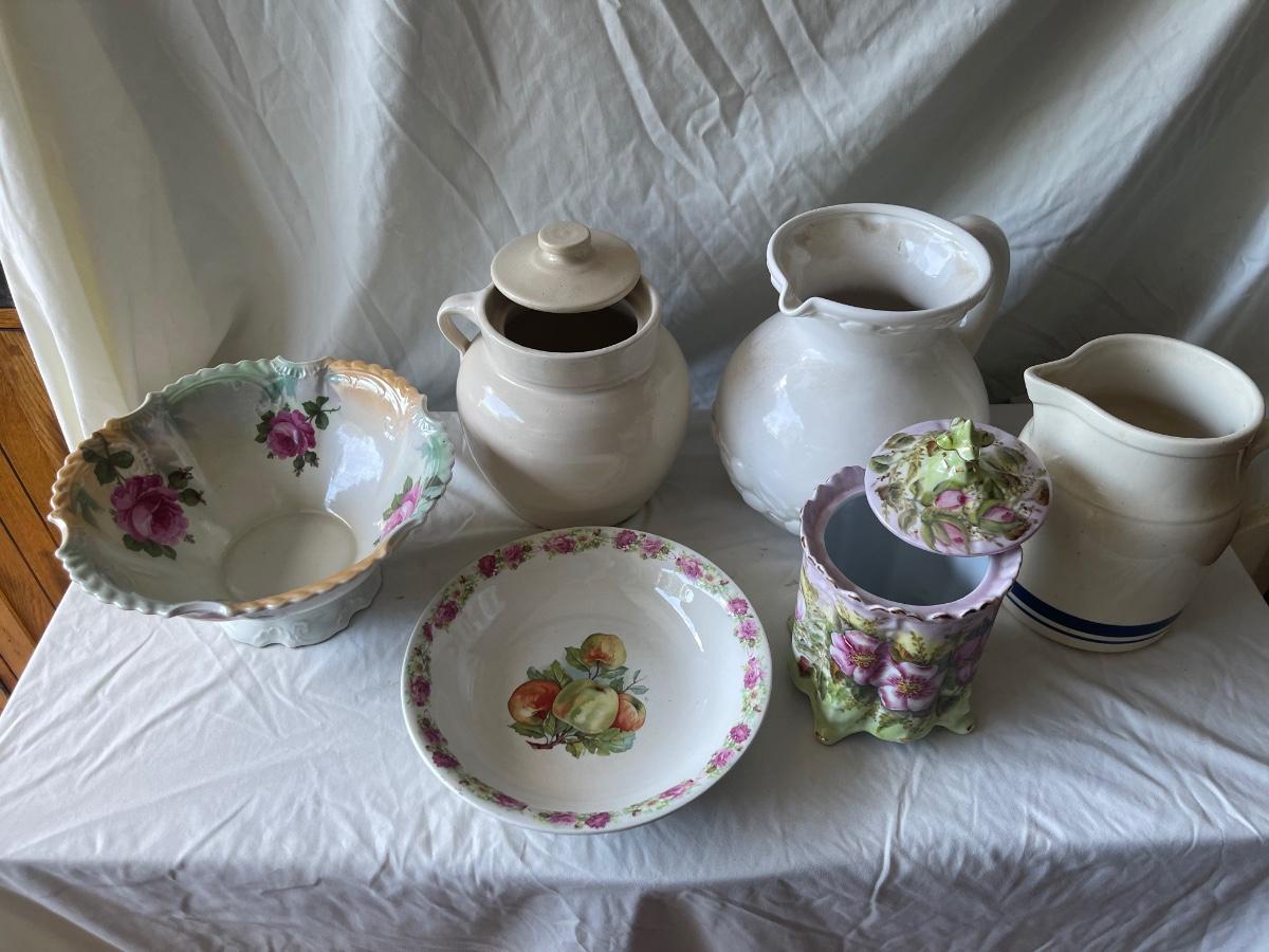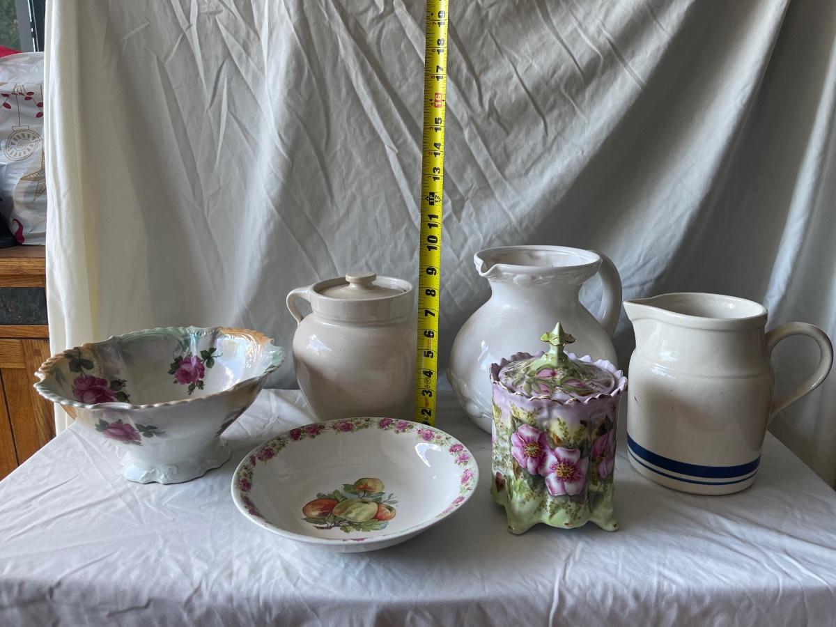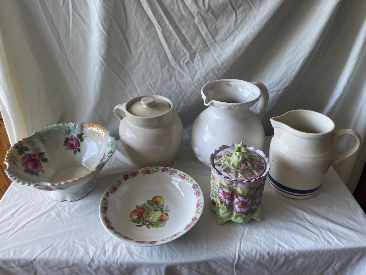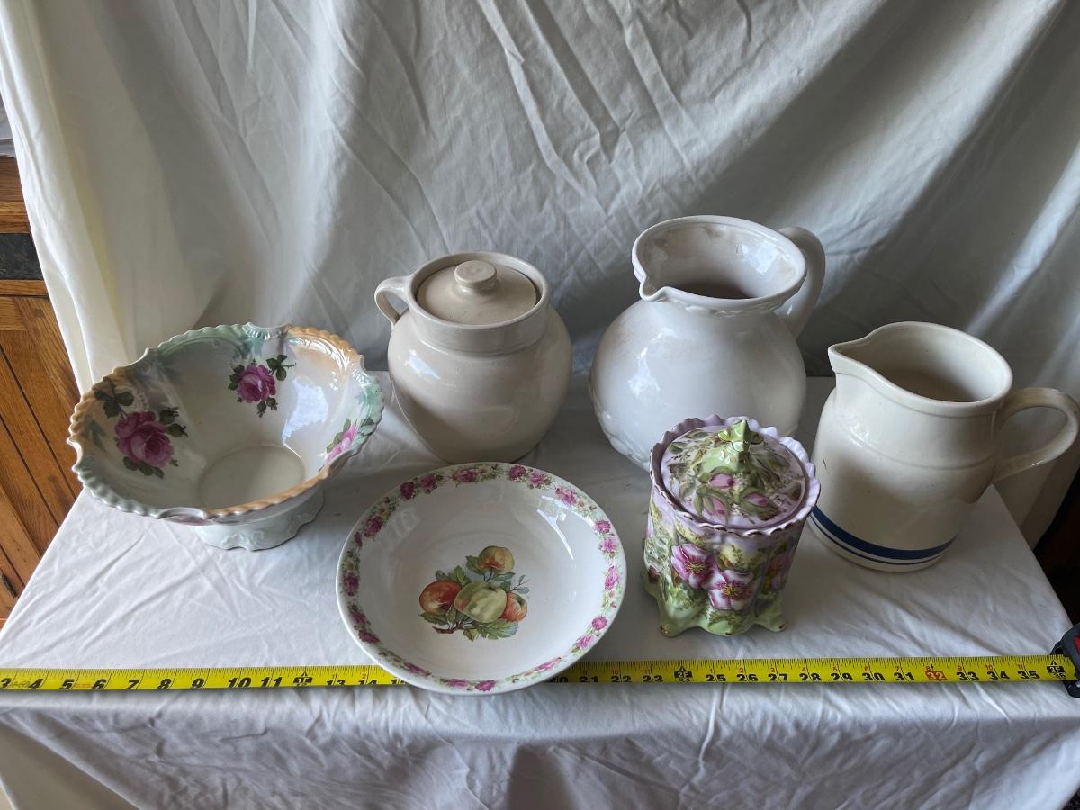 Various Pitchers, Bowls, and a Cookie Jar (Lot of 6 + 2 Lids)